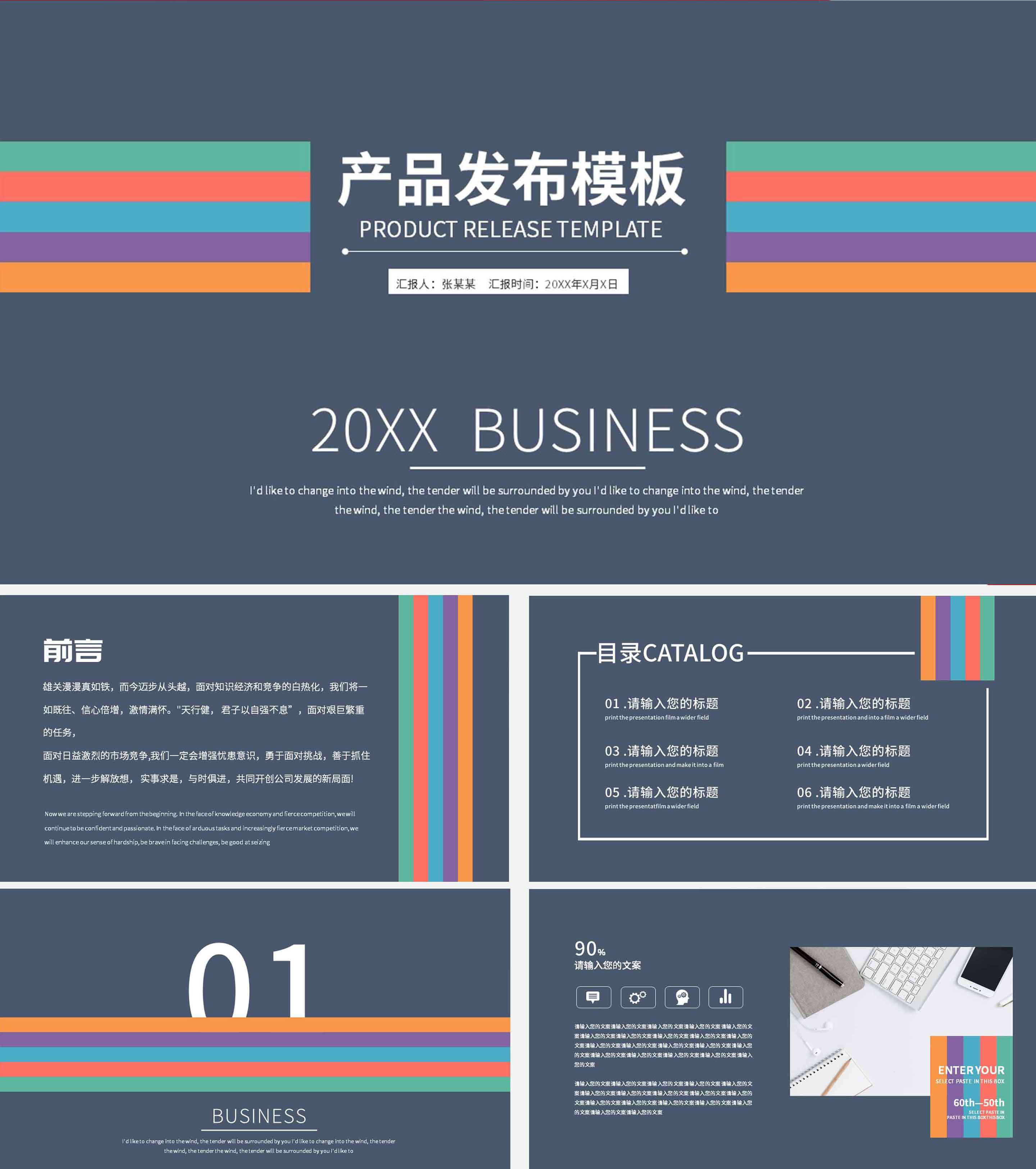 蓝色商业产品报告ppt模板