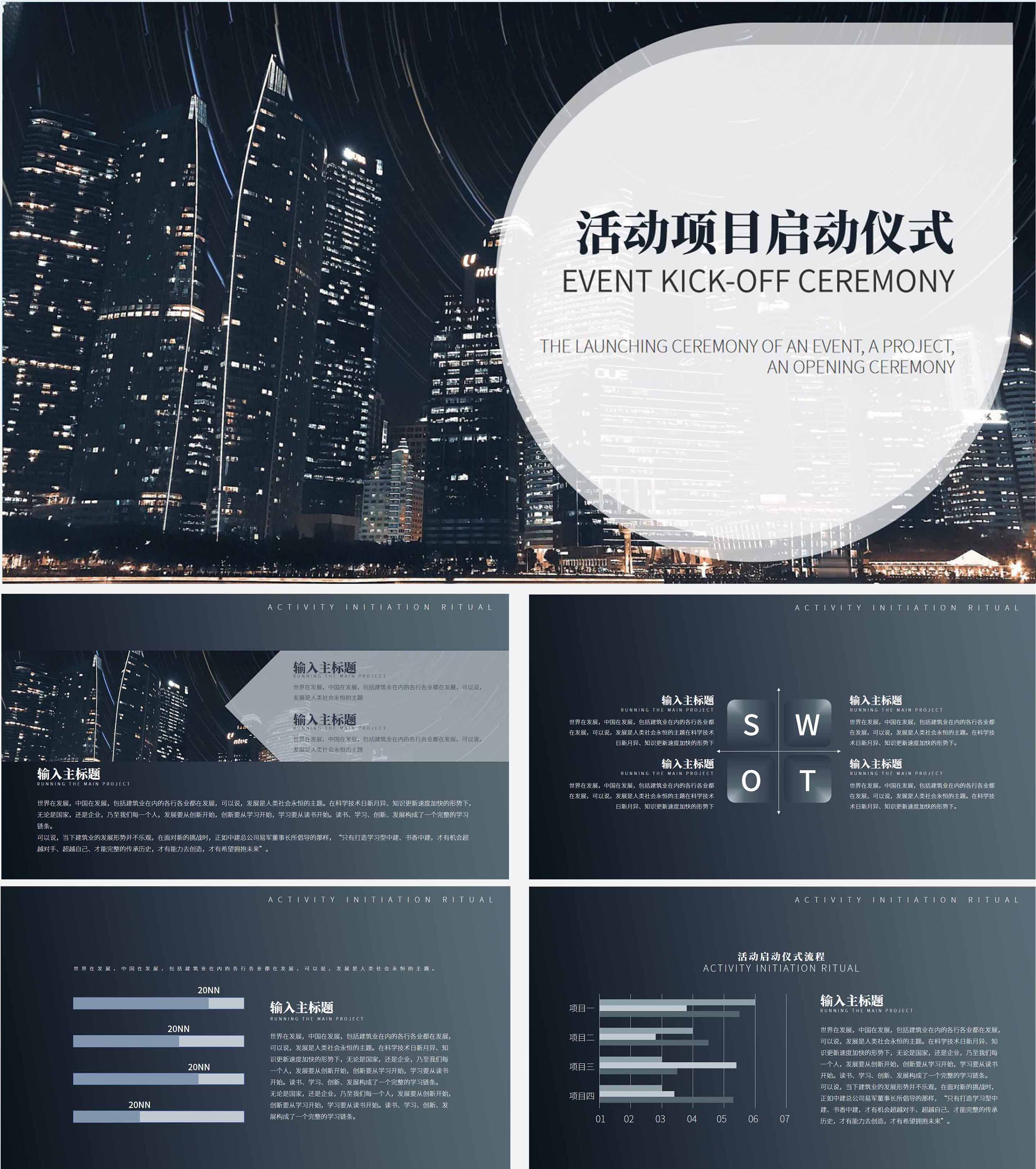 灰色简约风活动项目启动仪式PPT模板