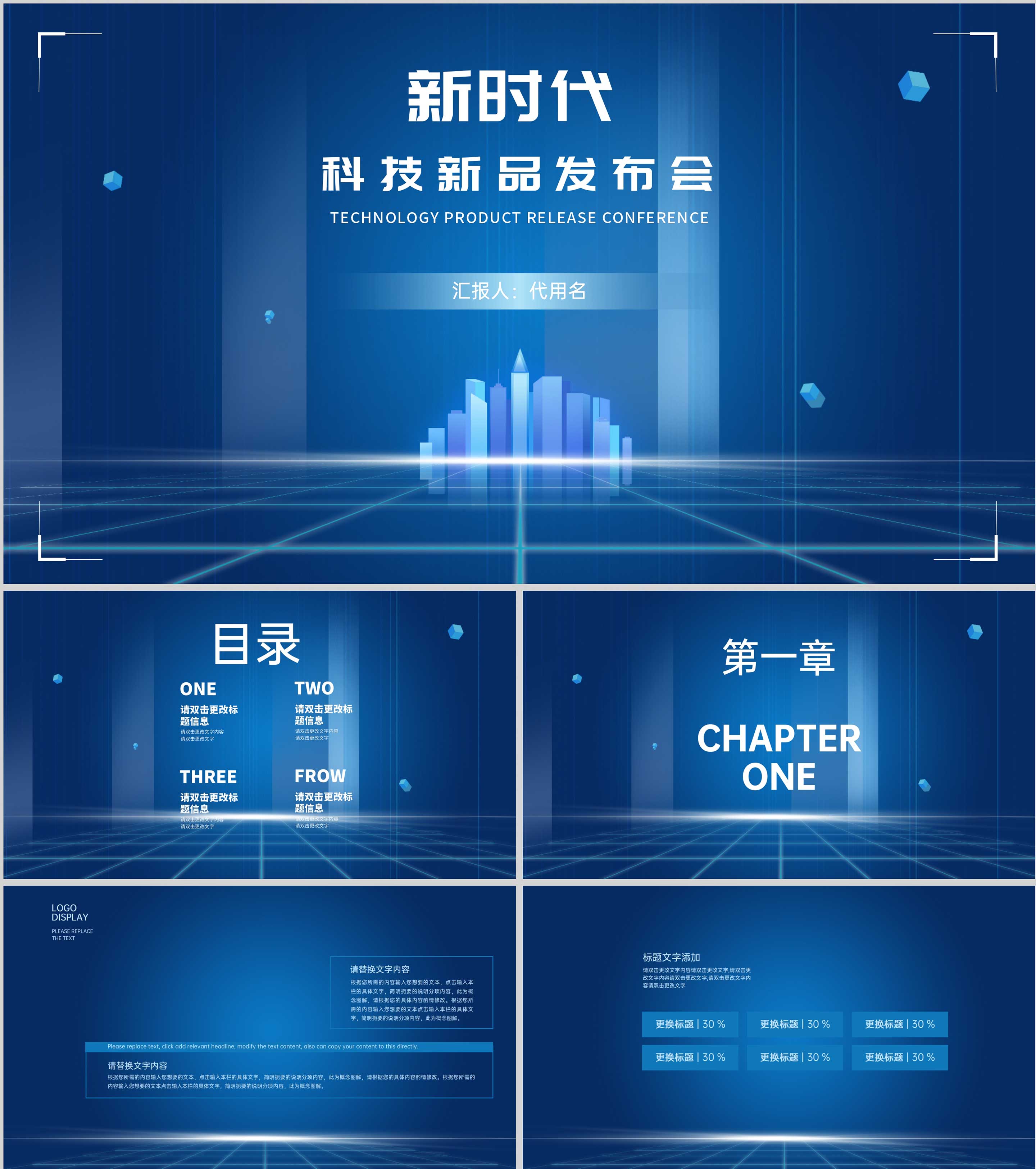 蓝色科技风新时代PPT模板