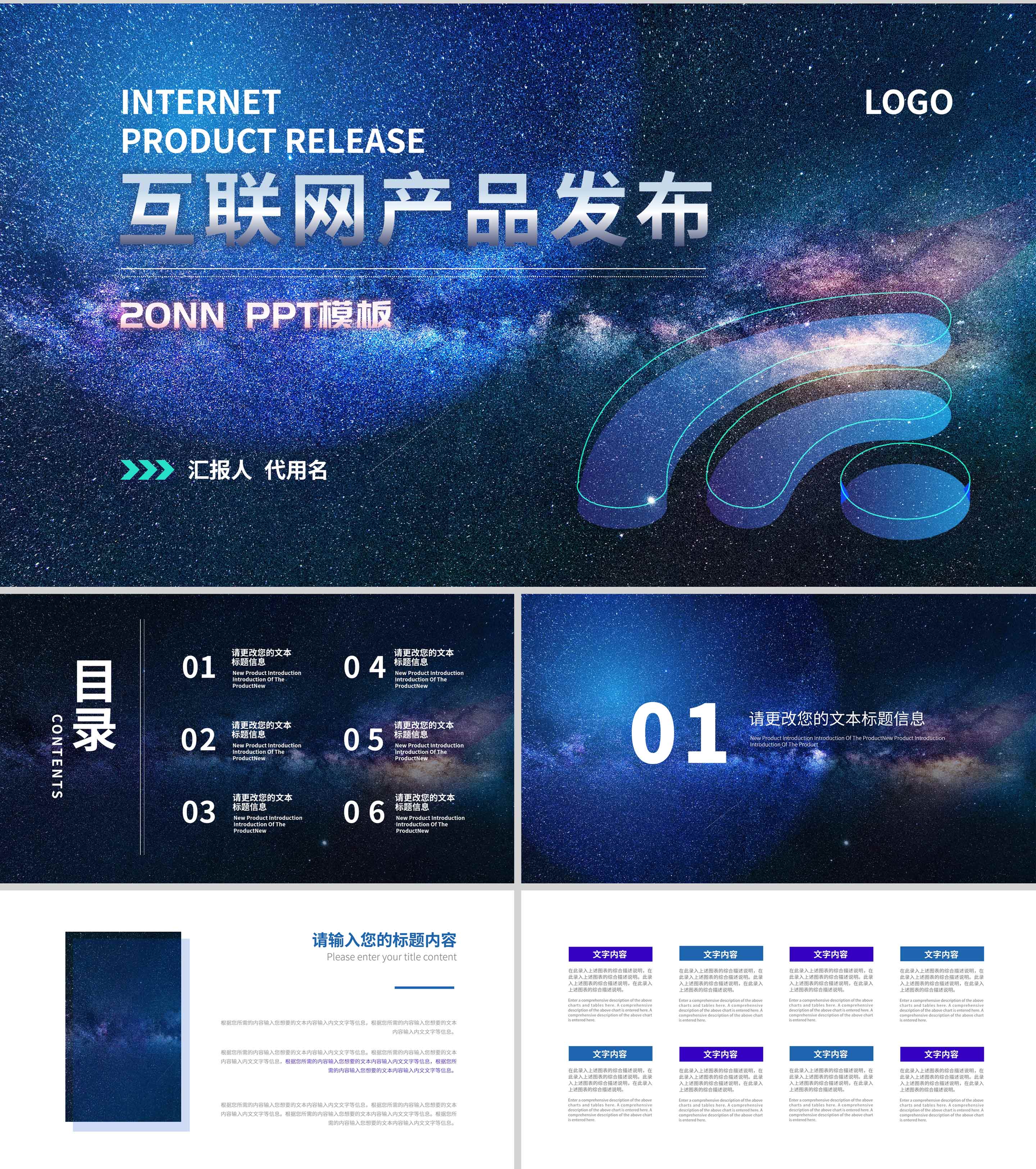 商务星空互联网产品发布PPT模板