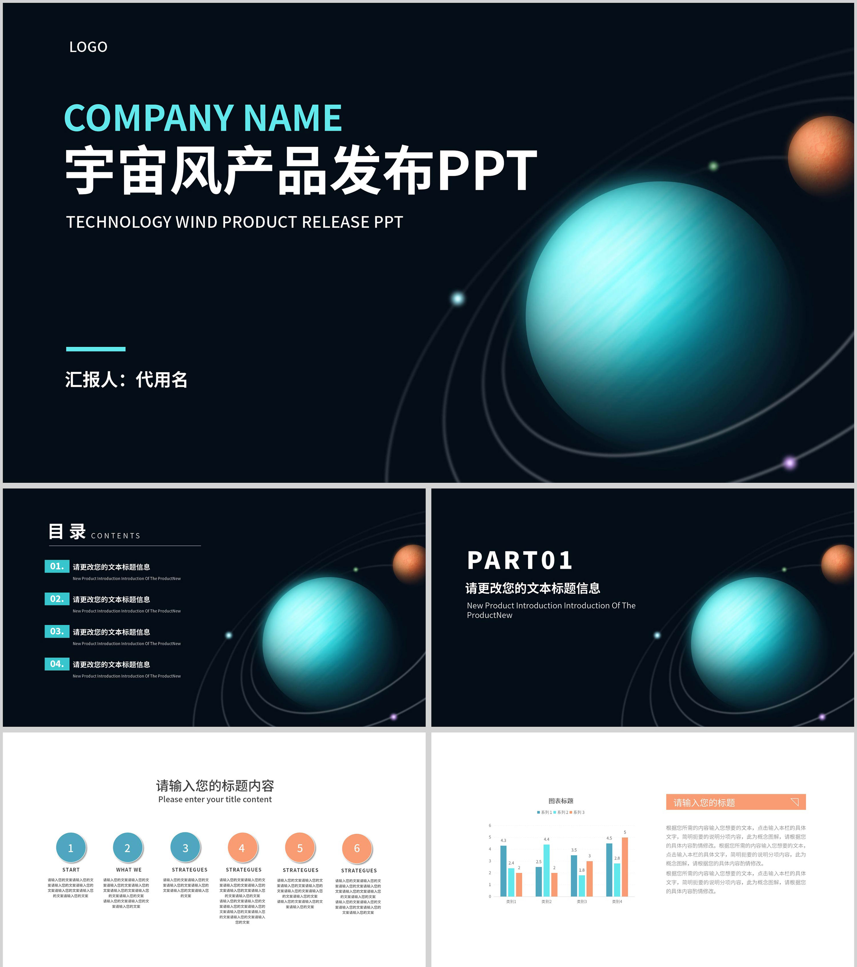 科技风宇宙轨道产品发布PPT模板