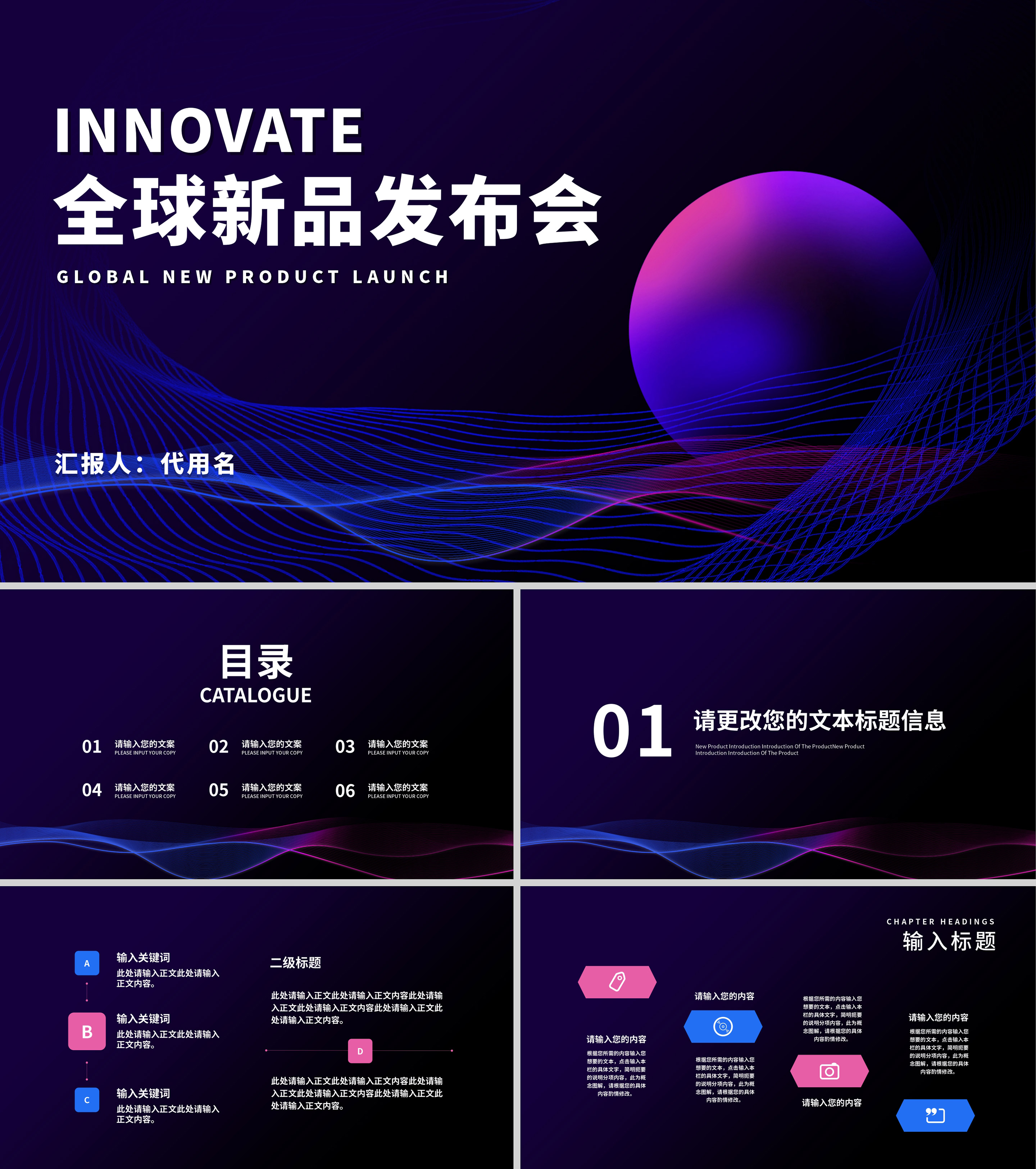 商务科技渐变全球新品发布会PPT模板
