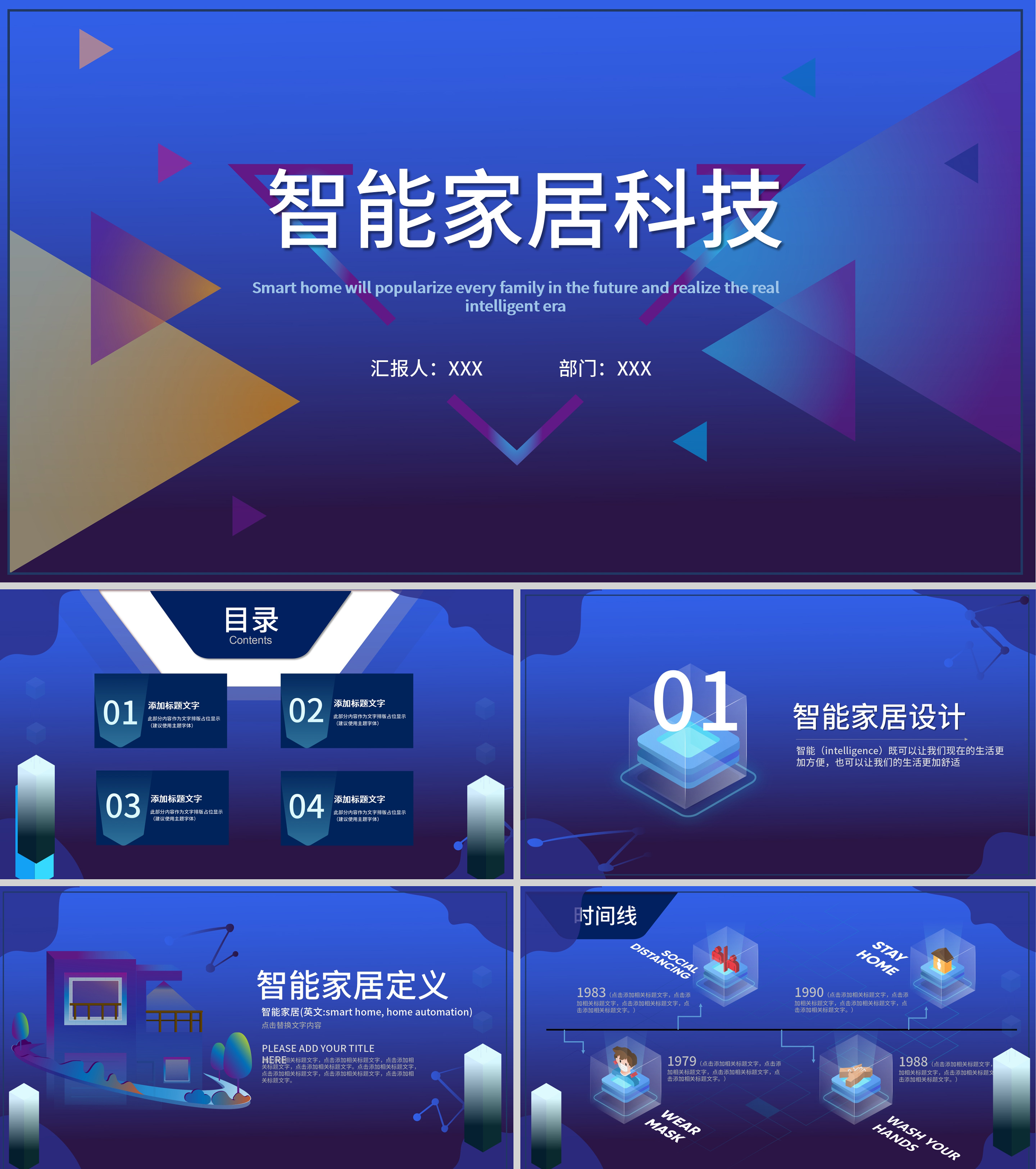 蓝色扁平风智能家居科技产品发布PPT模板