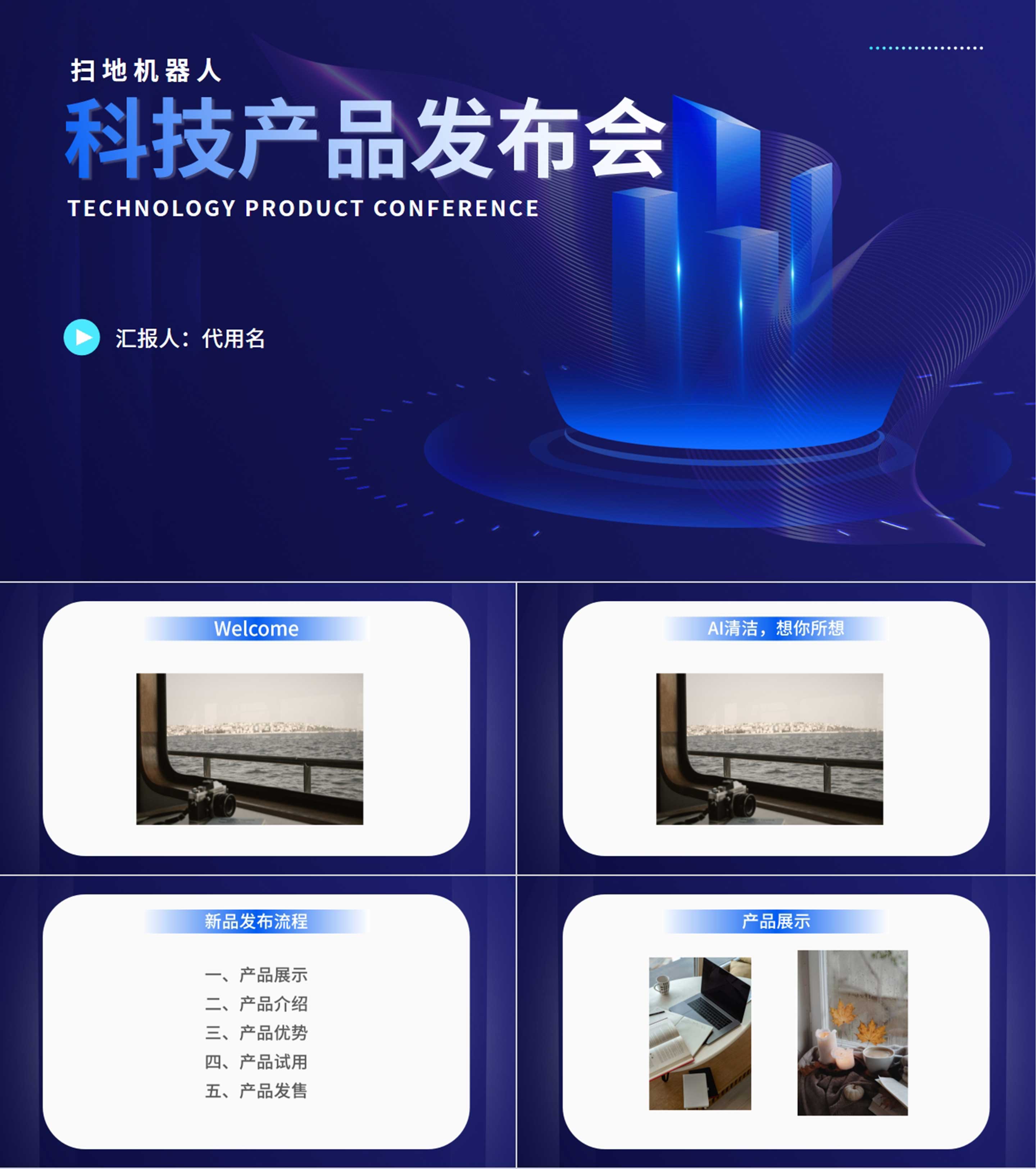 深蓝科技风新品发布会汇报PPT模板