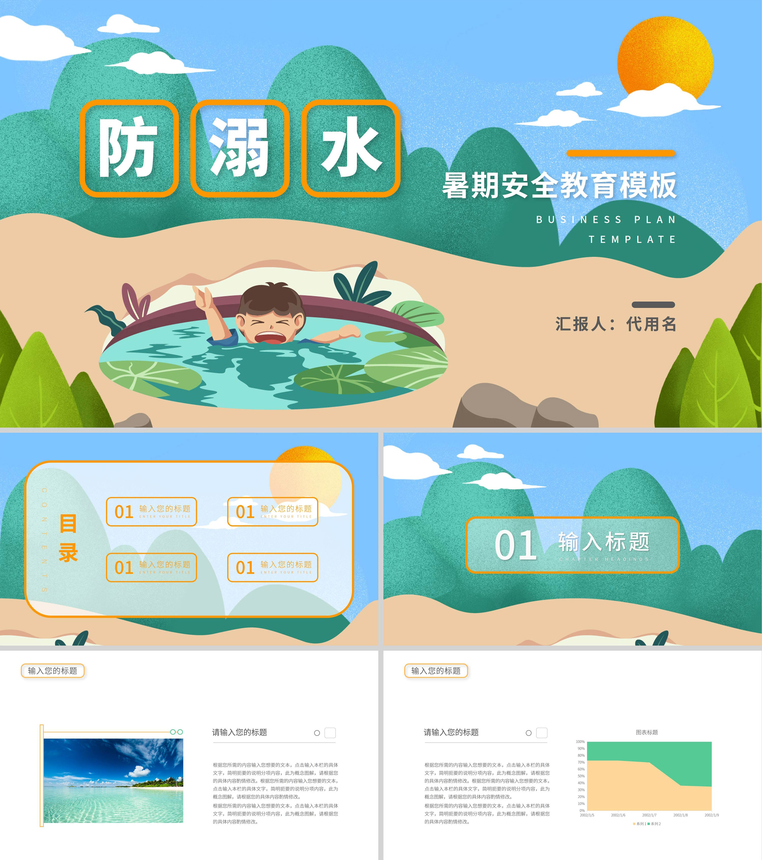 绿色卡通风暑期安全教育PPT模板