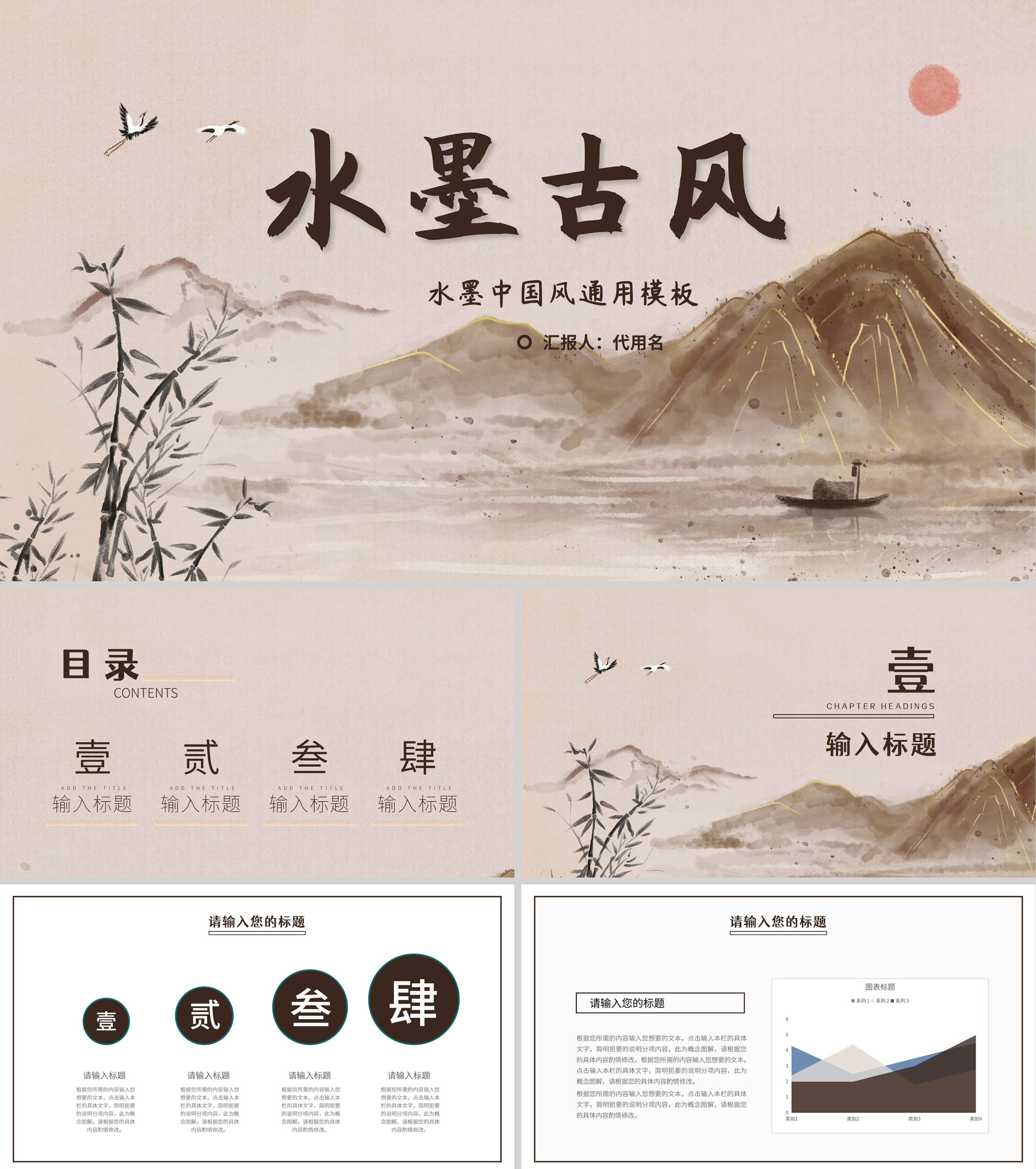 褐色水墨风国学文化教学PPT模板