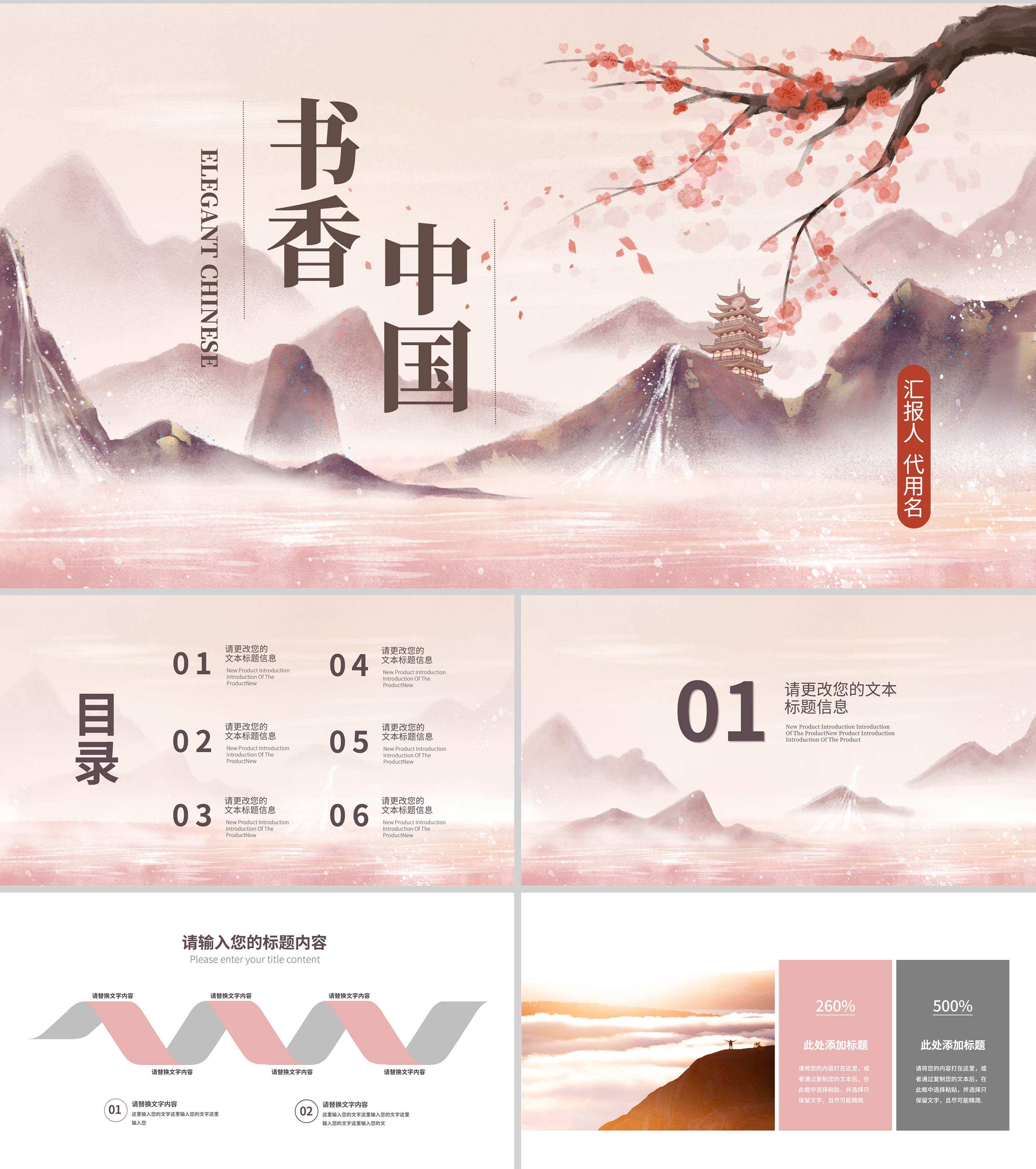 粉色中国风书香中国PPT模板