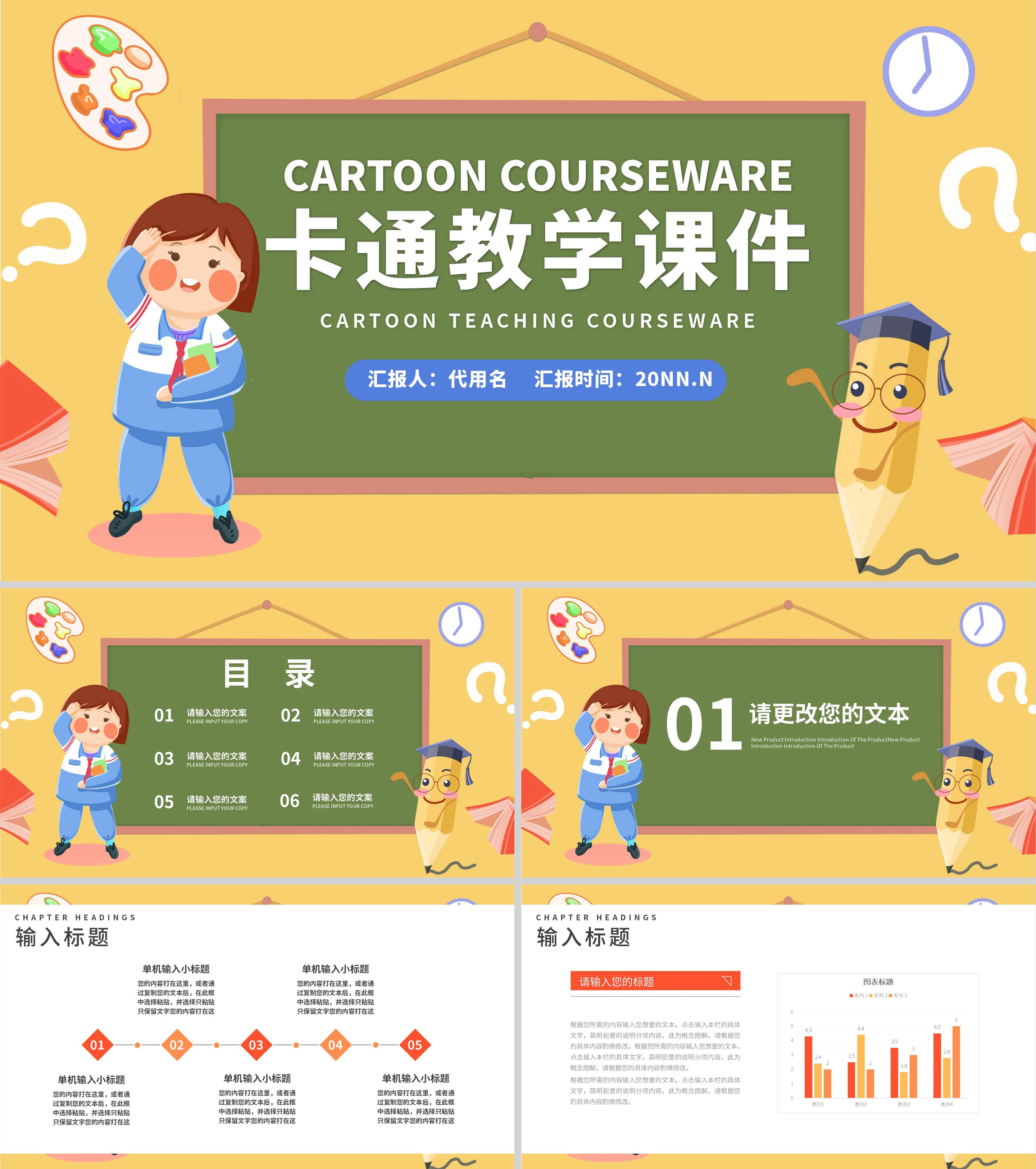 橙色卡通教育教学模板PPT模板