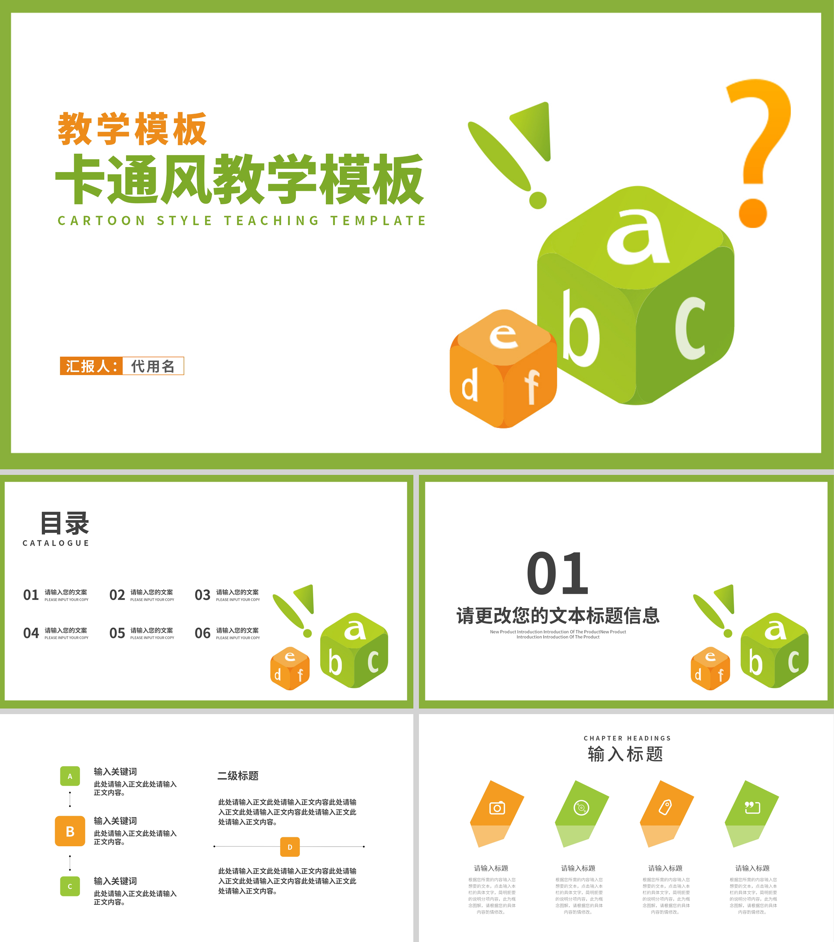 小清新卡通风字母教学汇报PPT模板