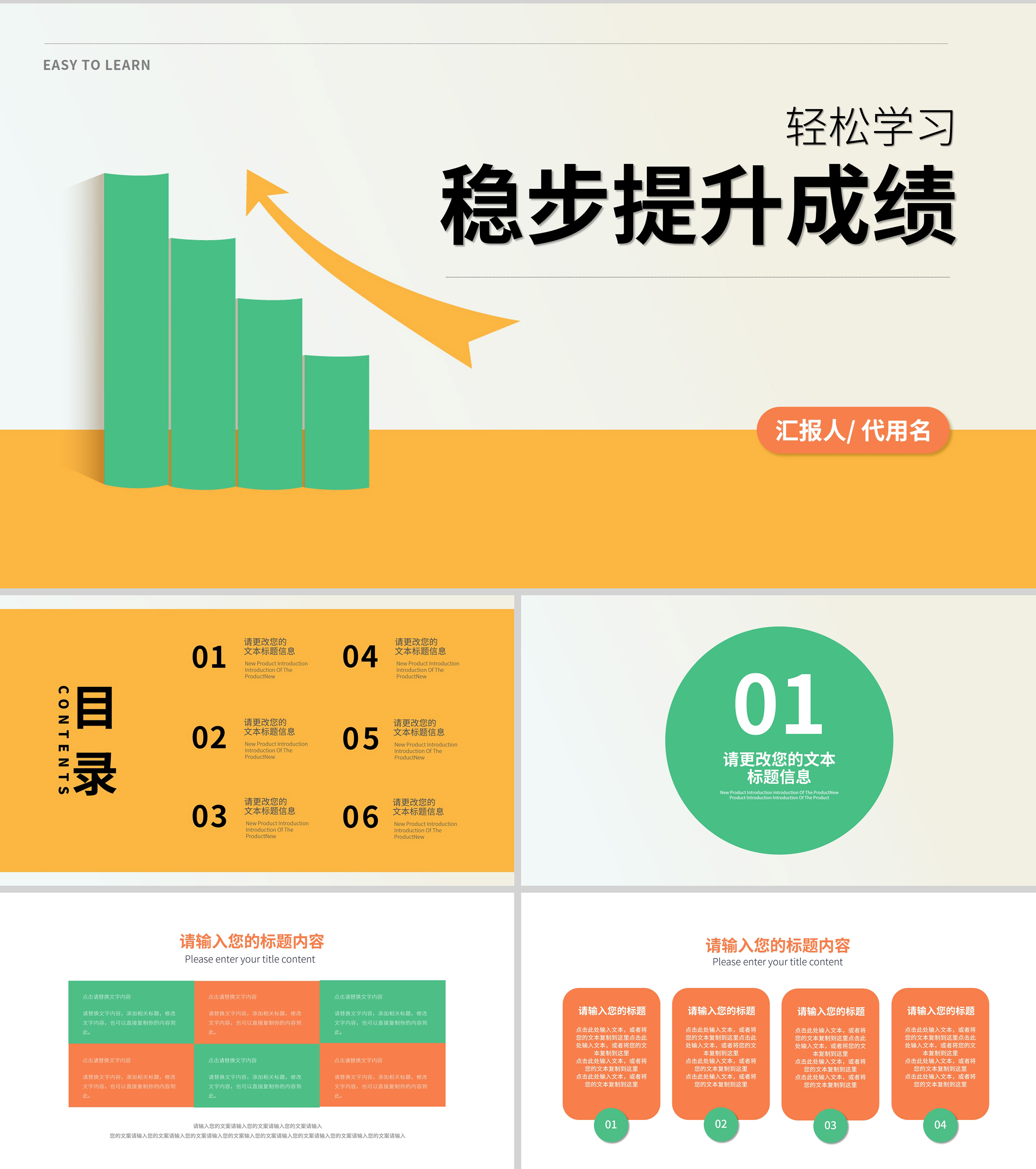 简约风稳步提升成绩学习教育PPT模板