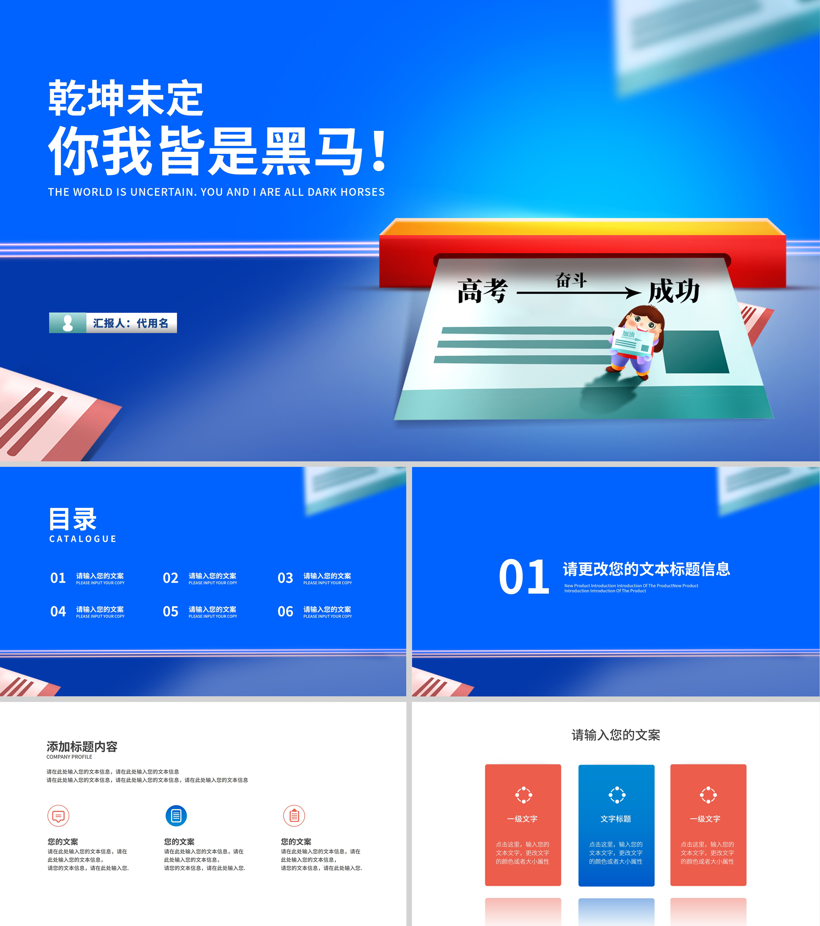 卡通风蓝色高三学生决战高考倒计时PPT模板