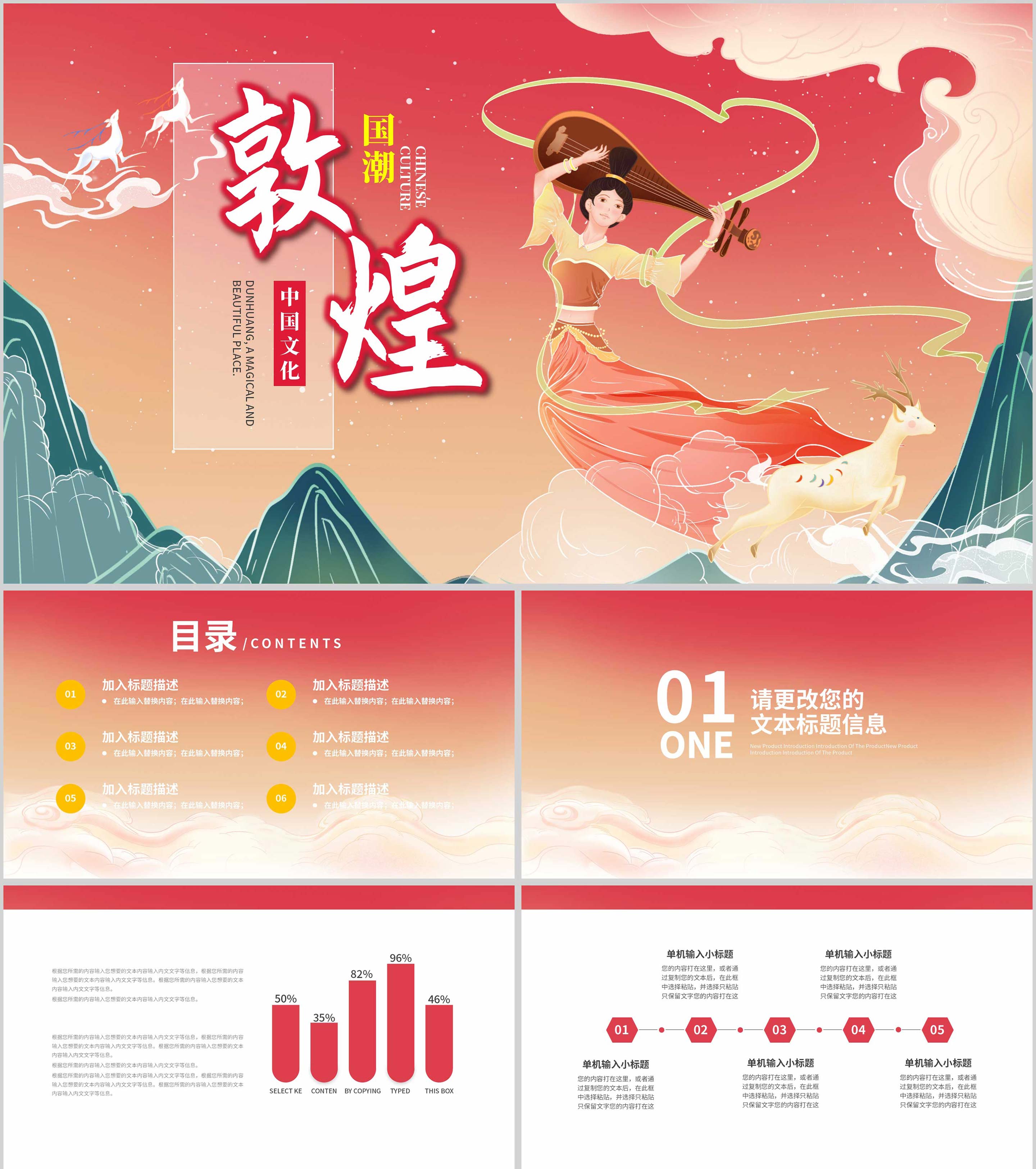 红色中国风敦煌文化PPT模板