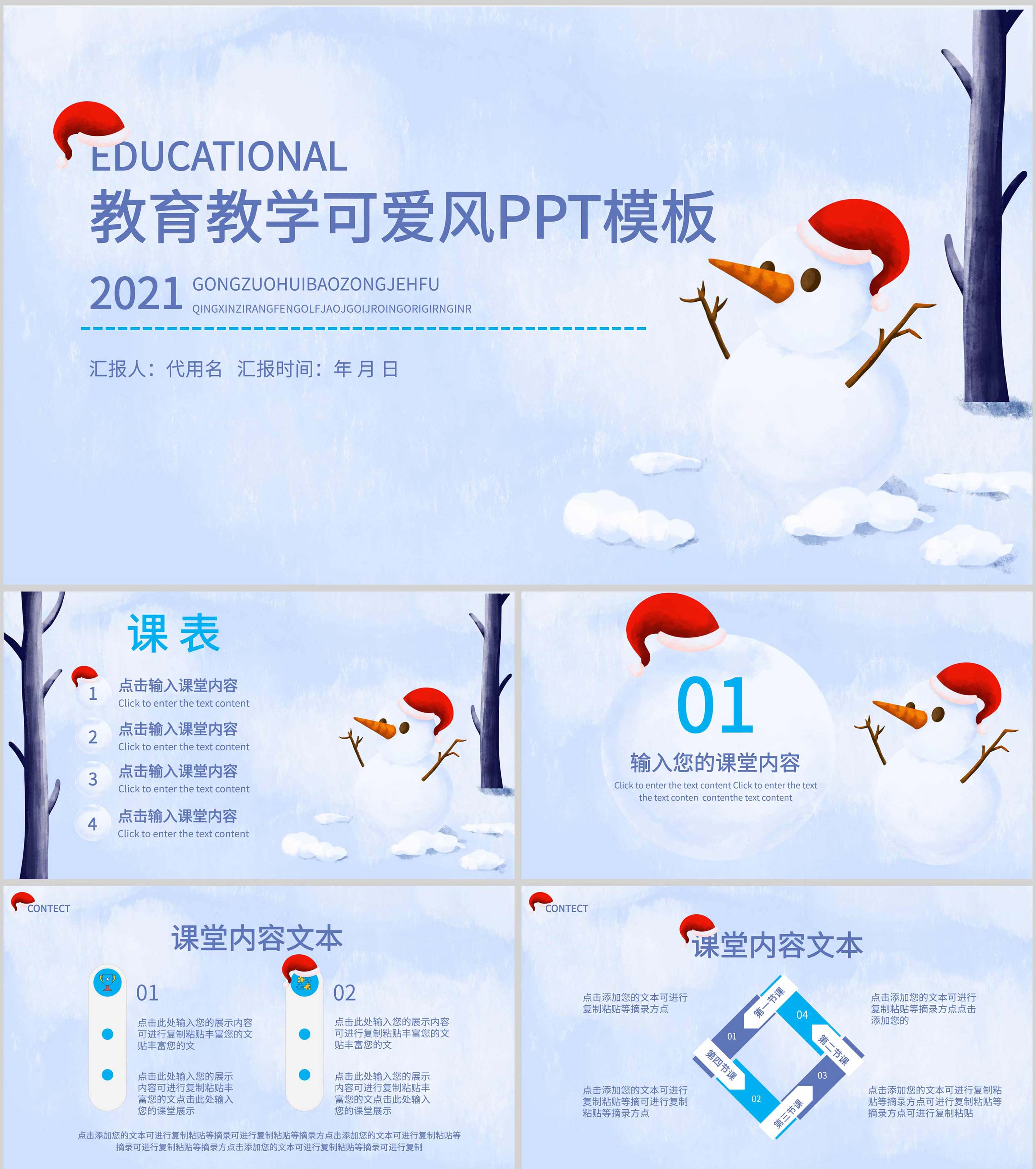 蓝色雪人可爱教育教学PPT模板