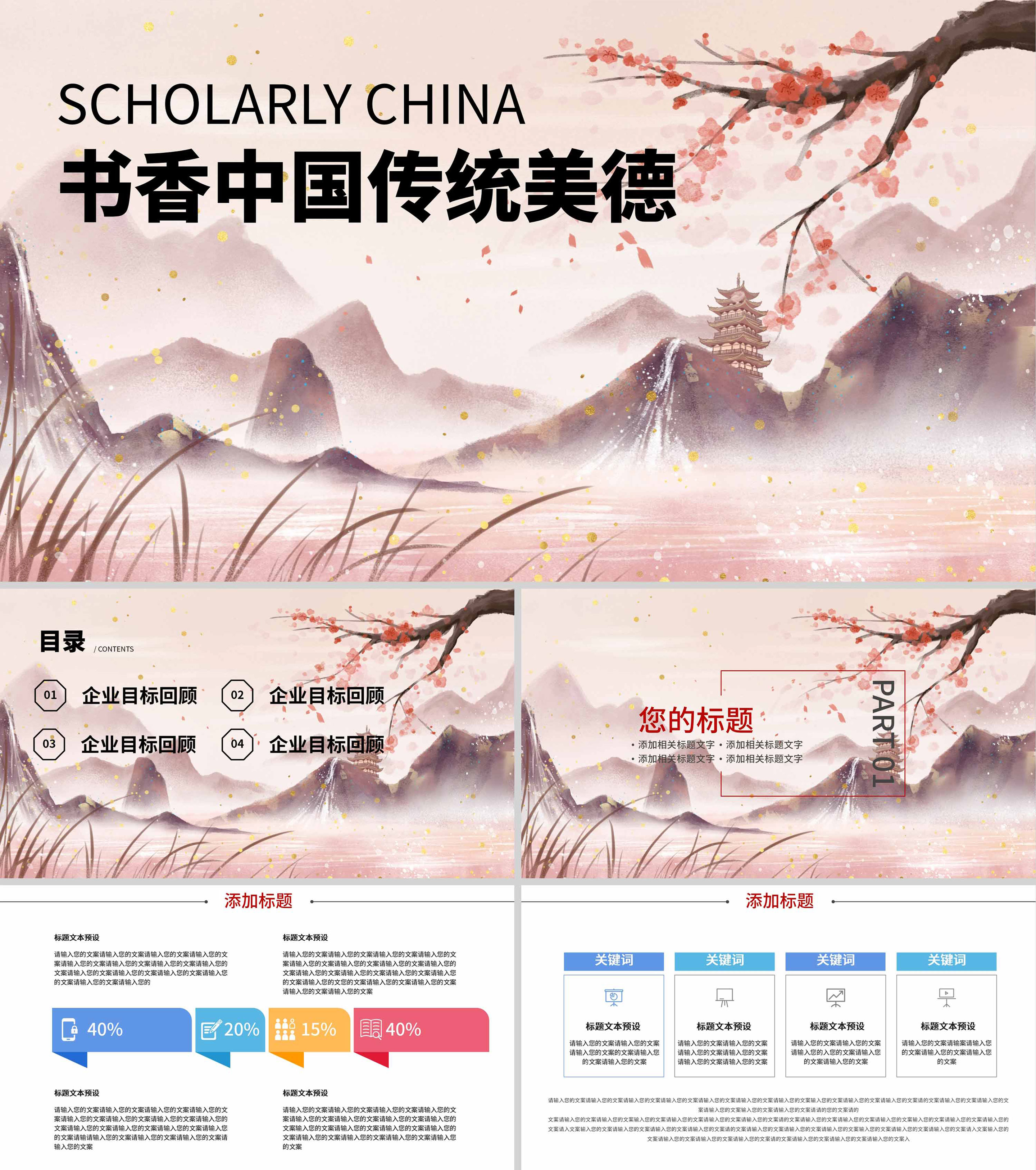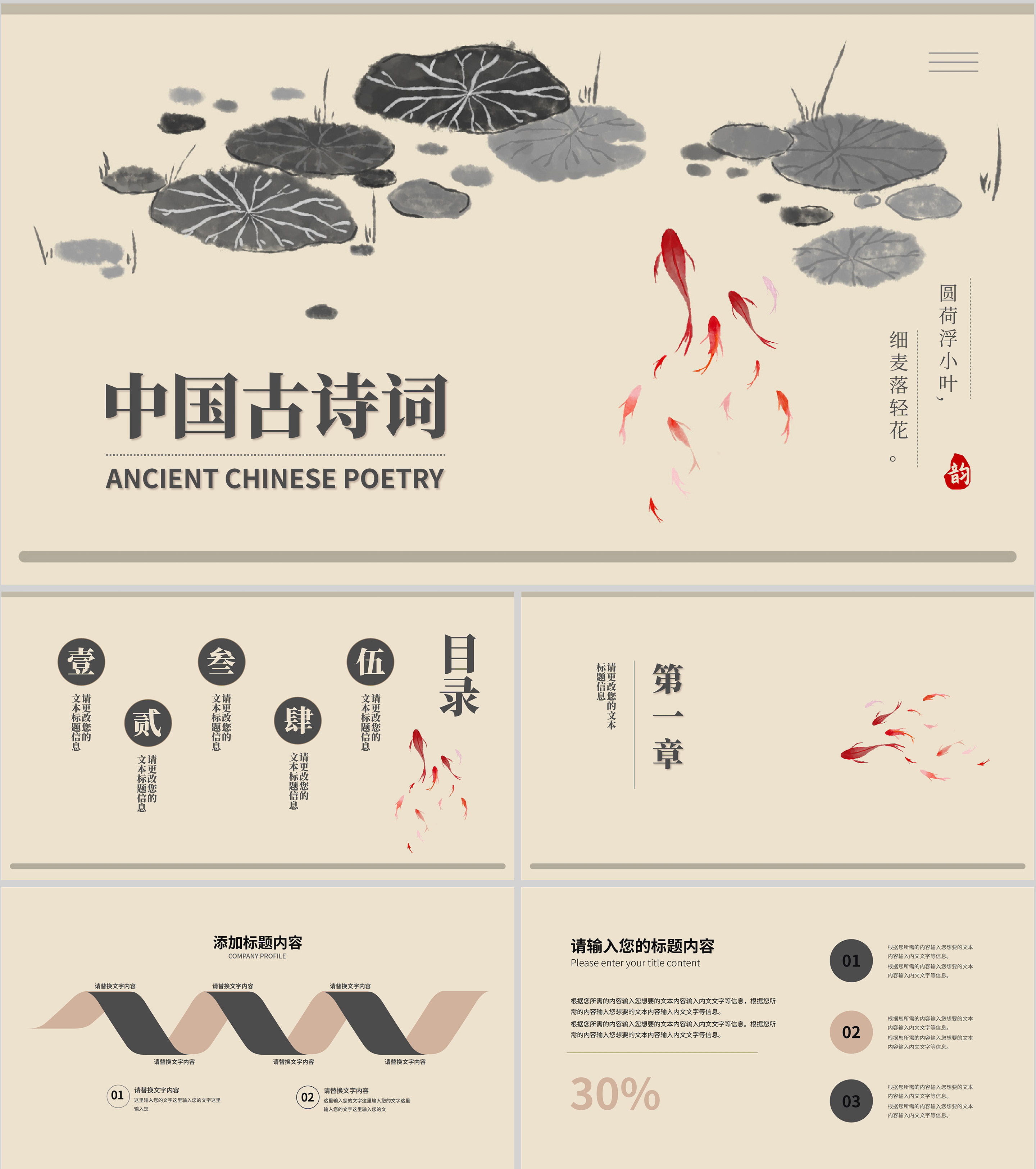 棕色中国风水墨语文传统古诗词教育PPT模板