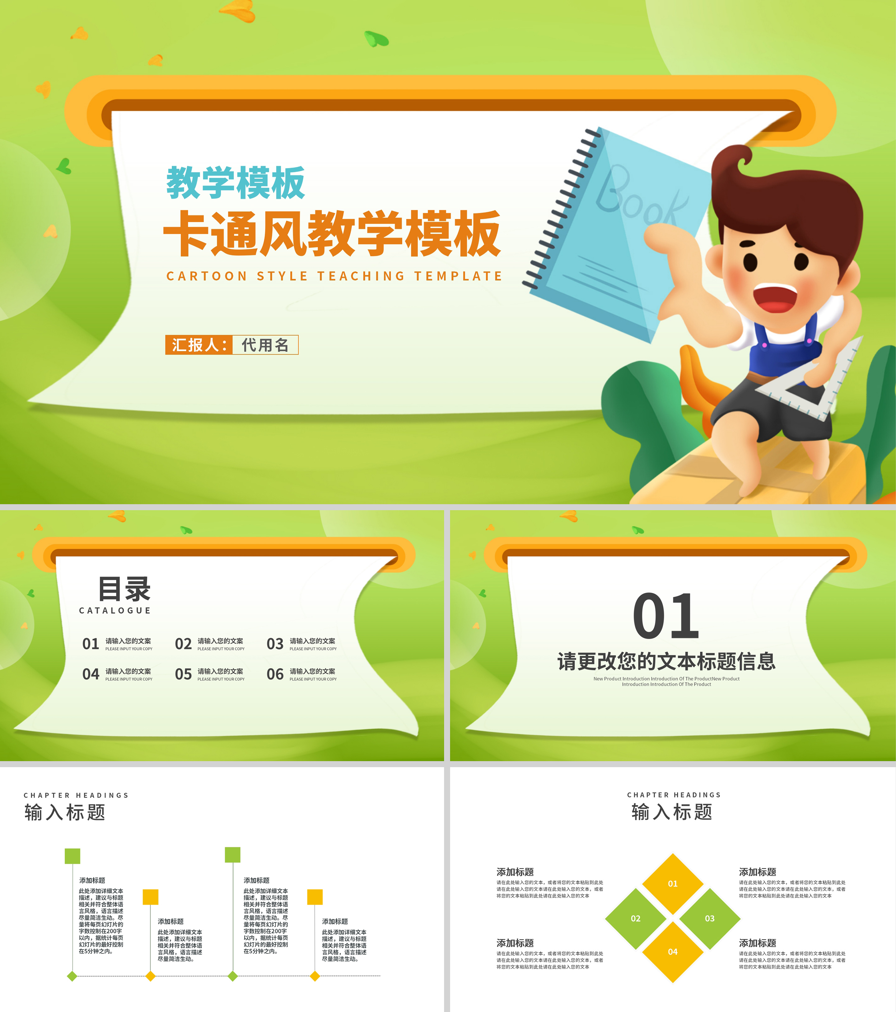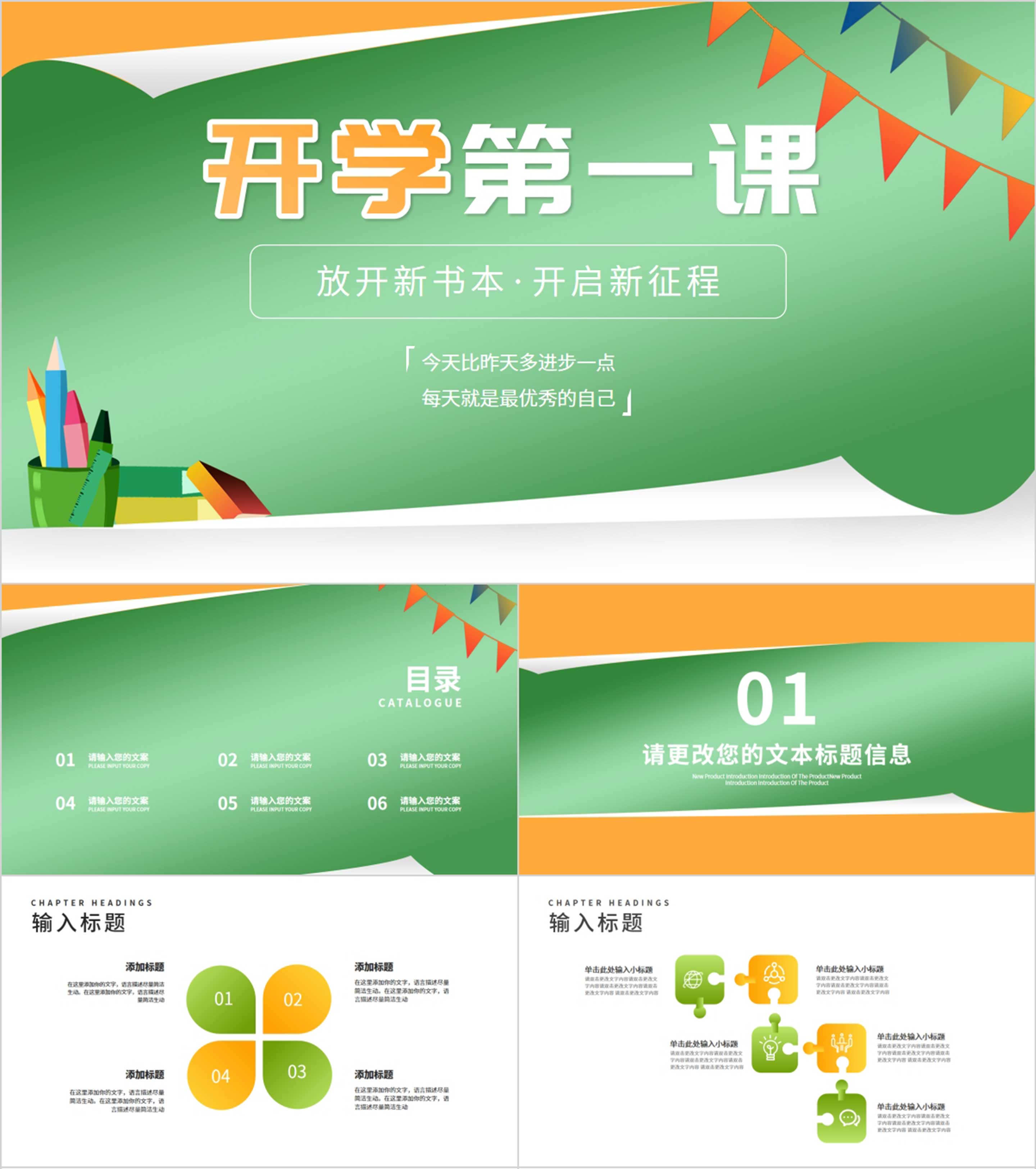 卡通风绿色开学第一课班级教学汇报PPT模板