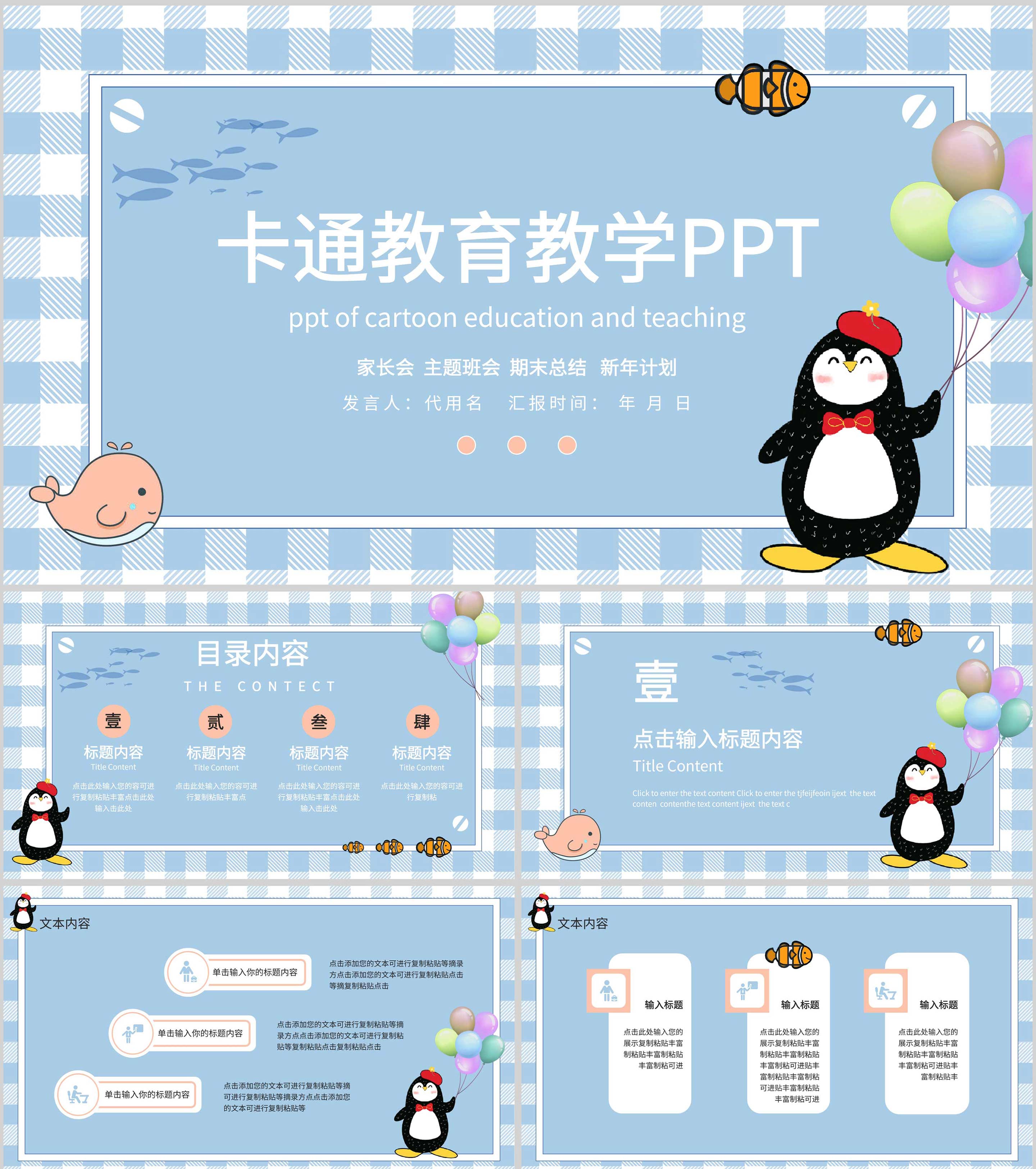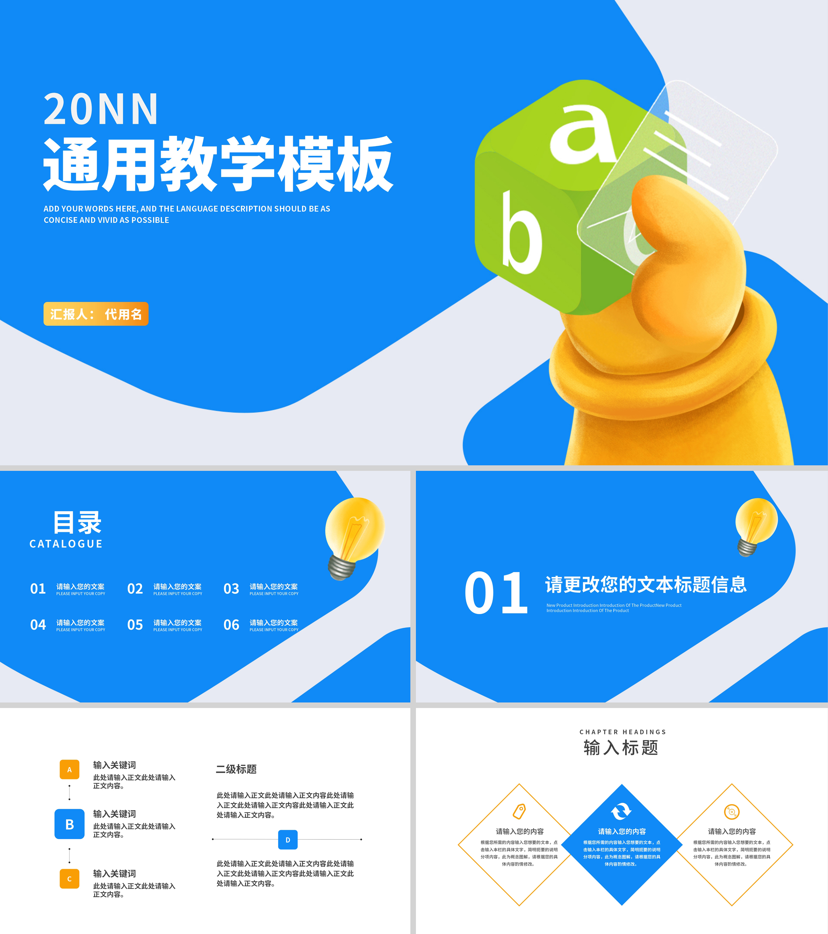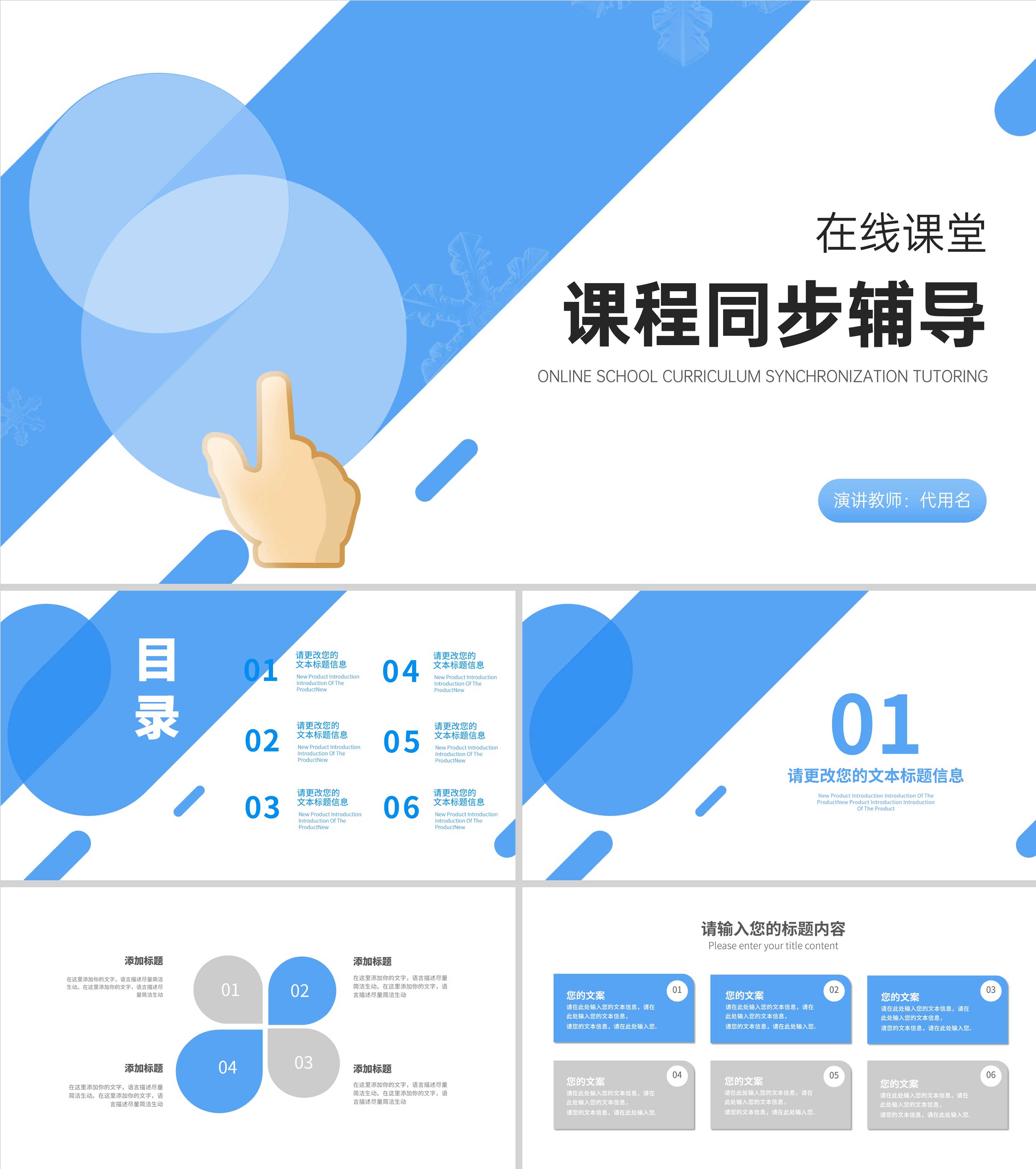 蓝色卡通风几何教师课程同步辅导演讲PPT模板