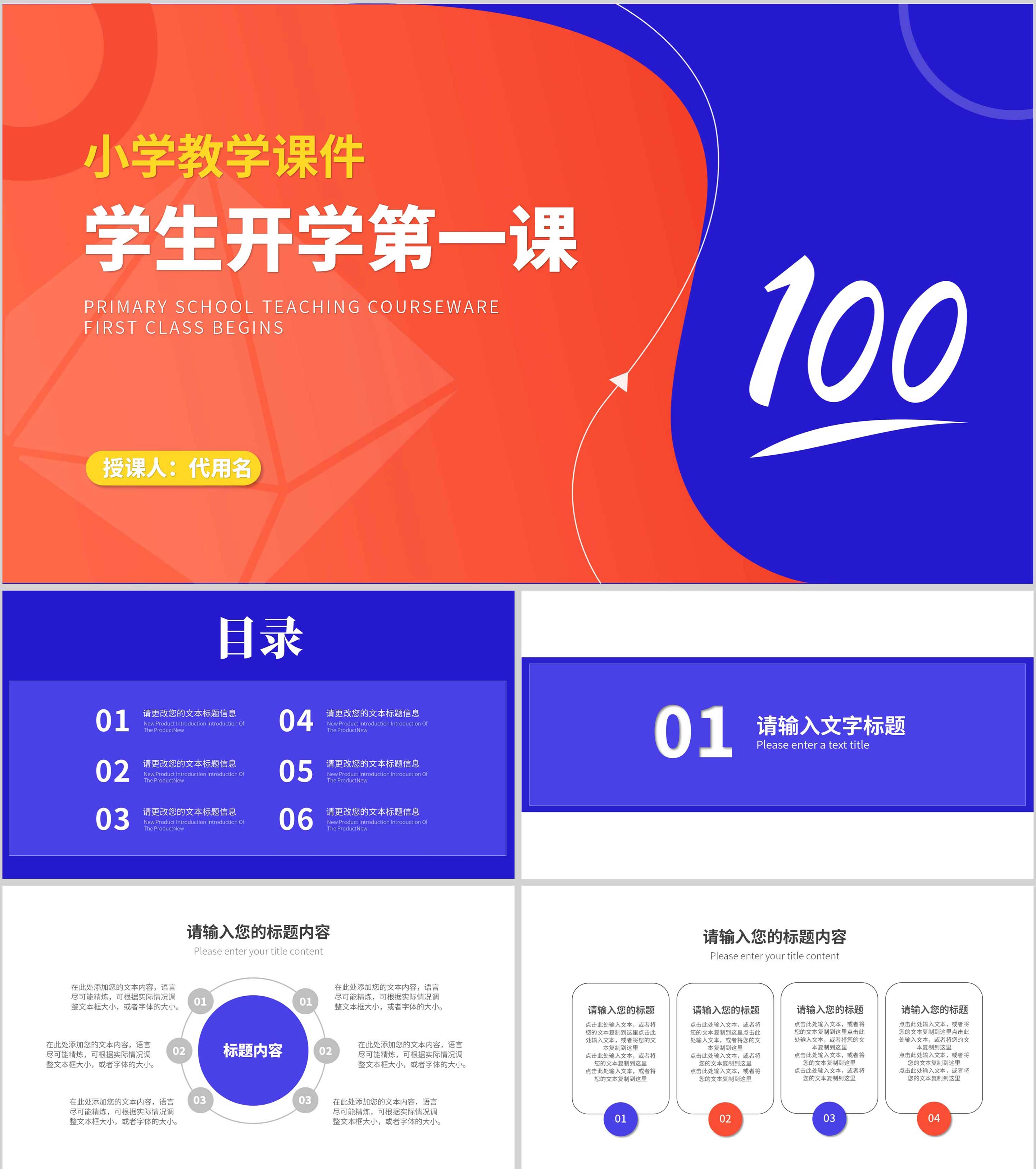 小清新双色小学学生开学第一课授课汇报PPT模板