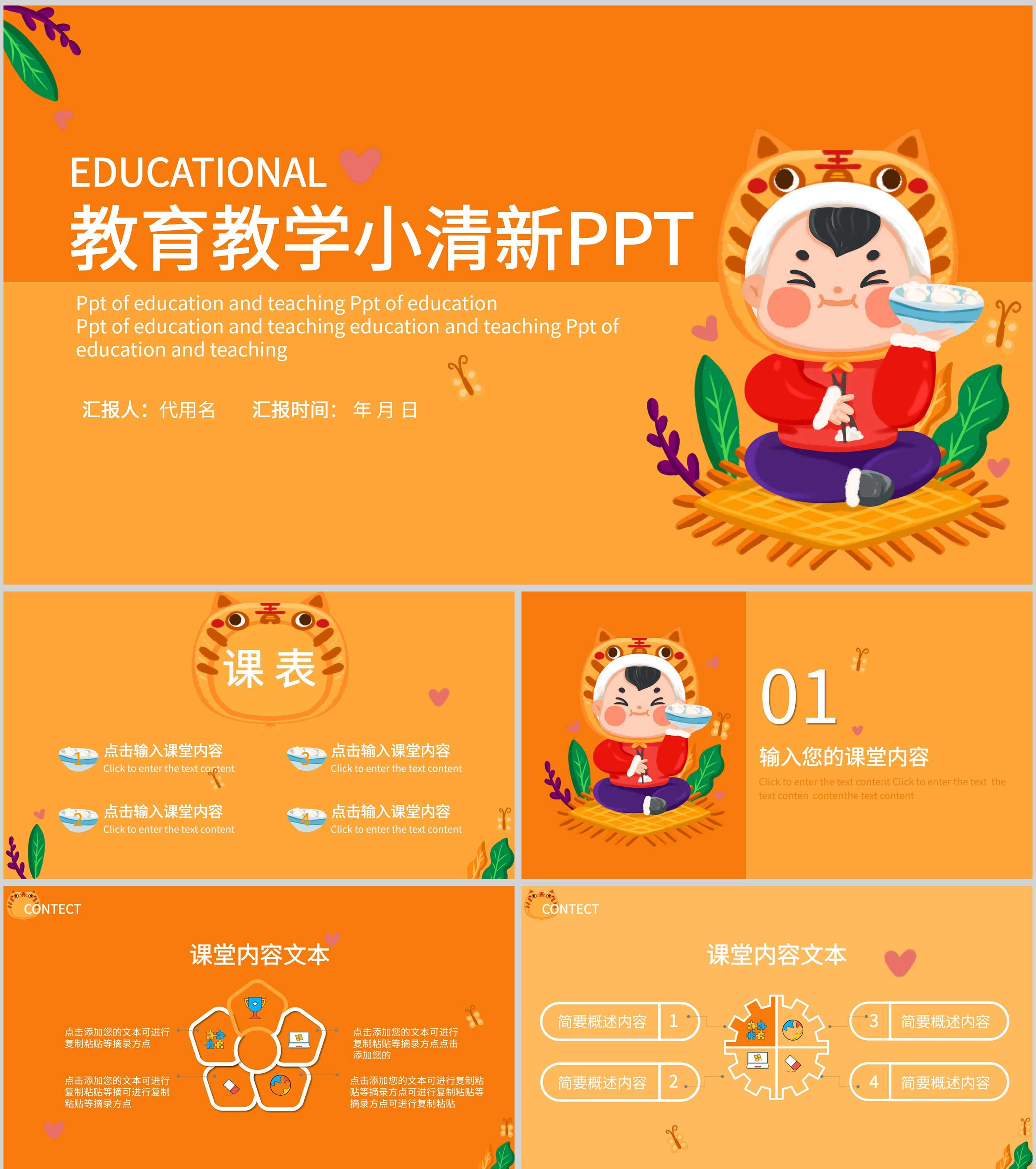 卡通风橙色男孩教育教学授课汇报PPT模板