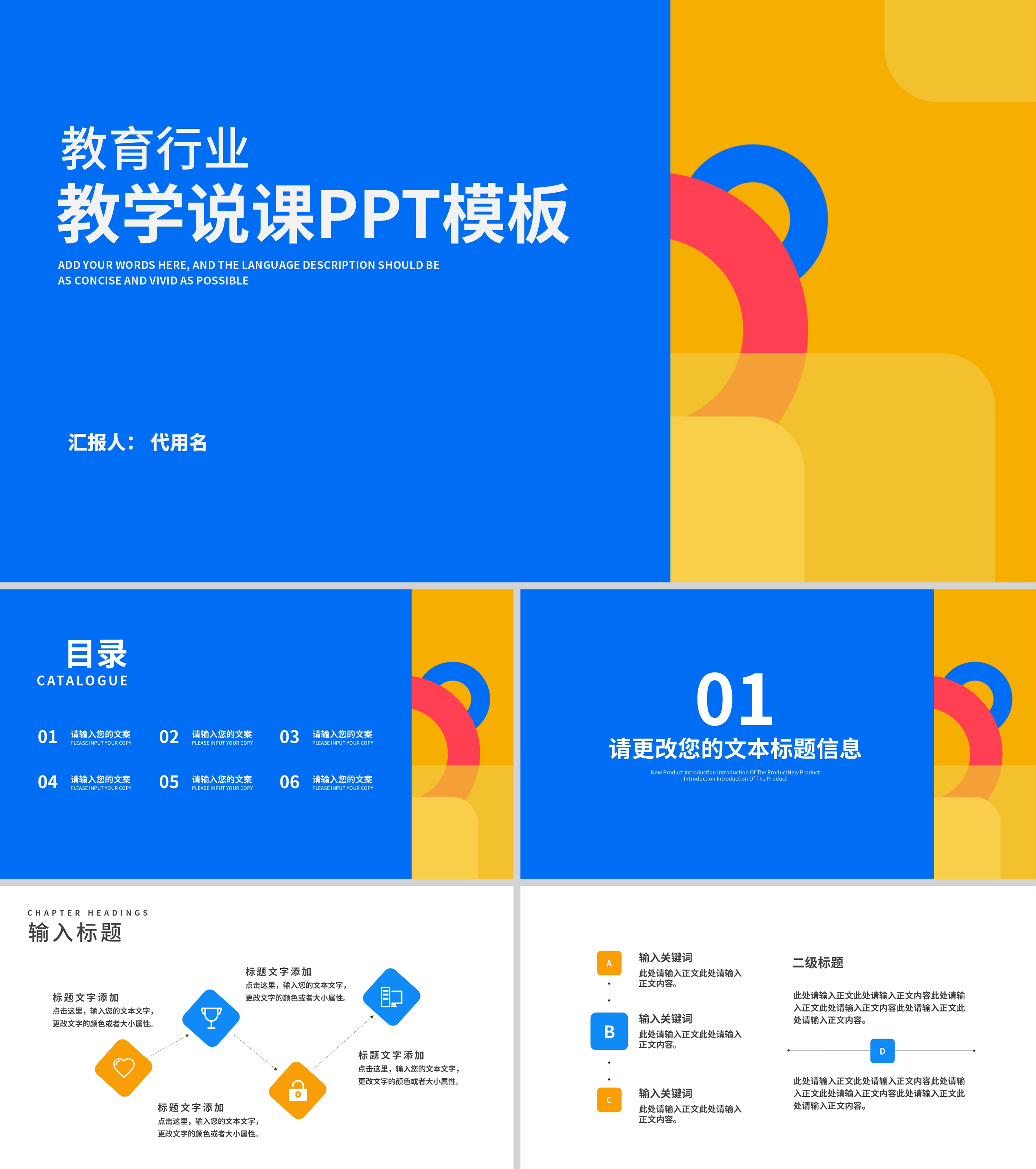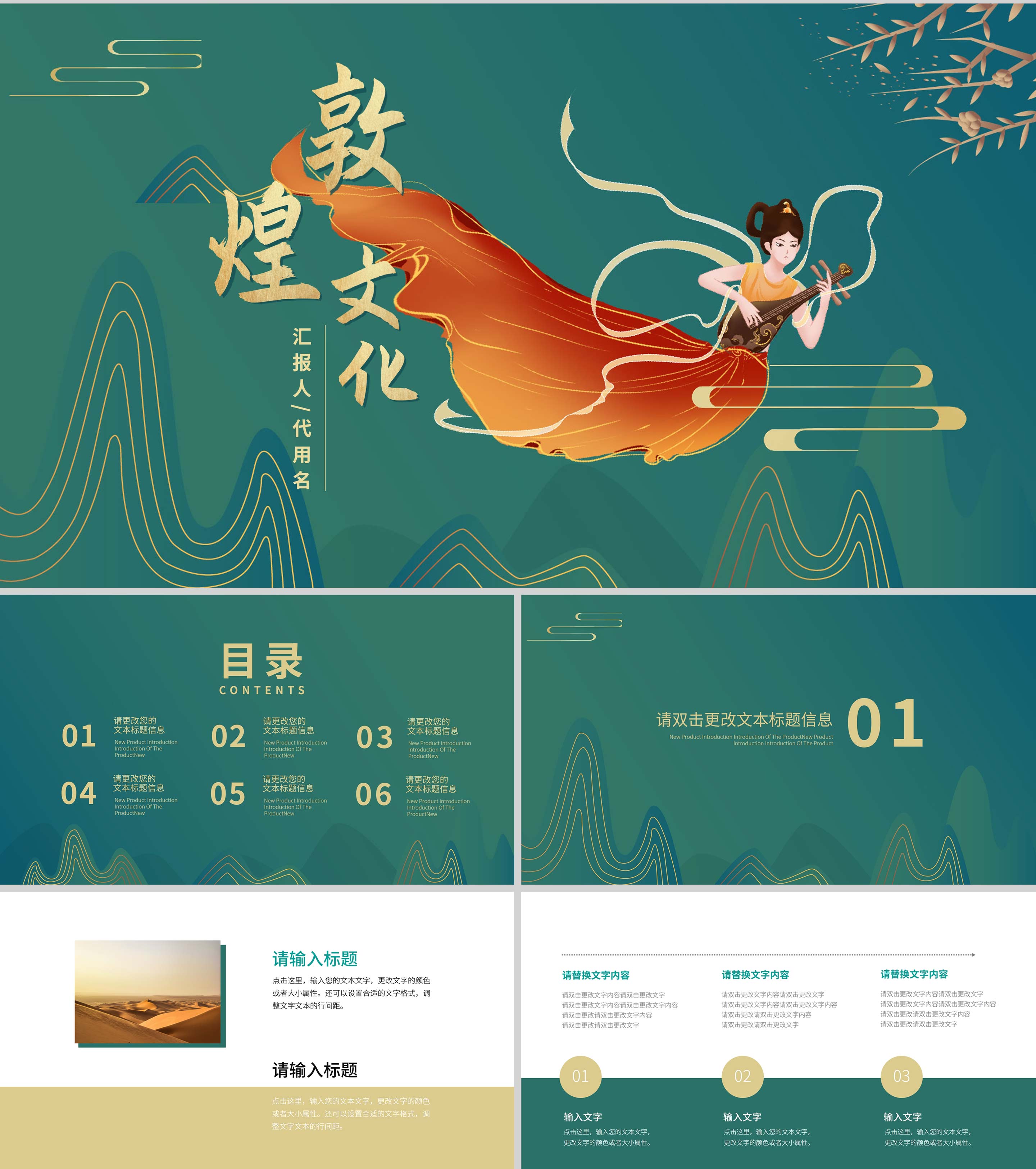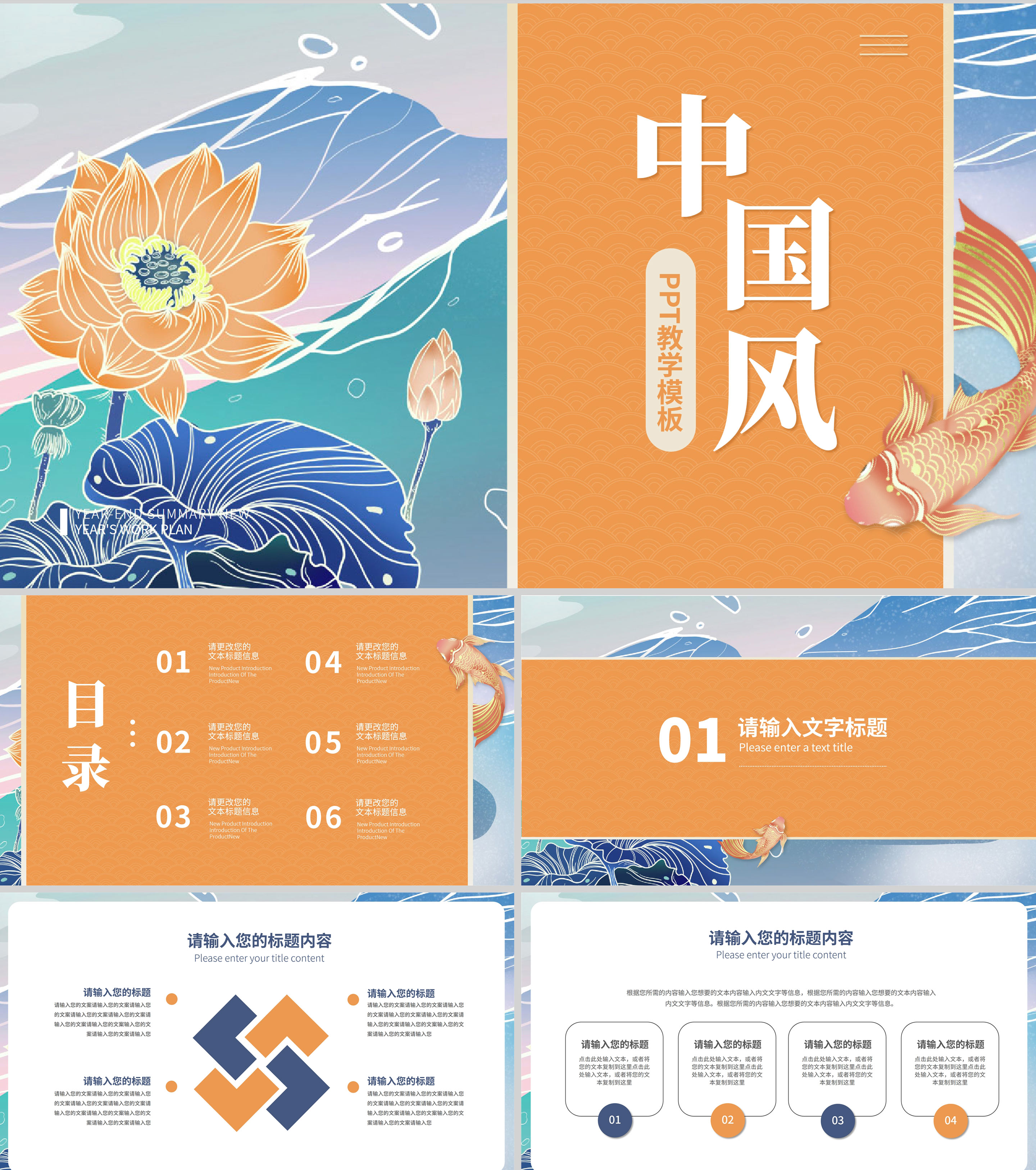 蓝色中国风插画手绘传统文化语文教学教育PPT模板