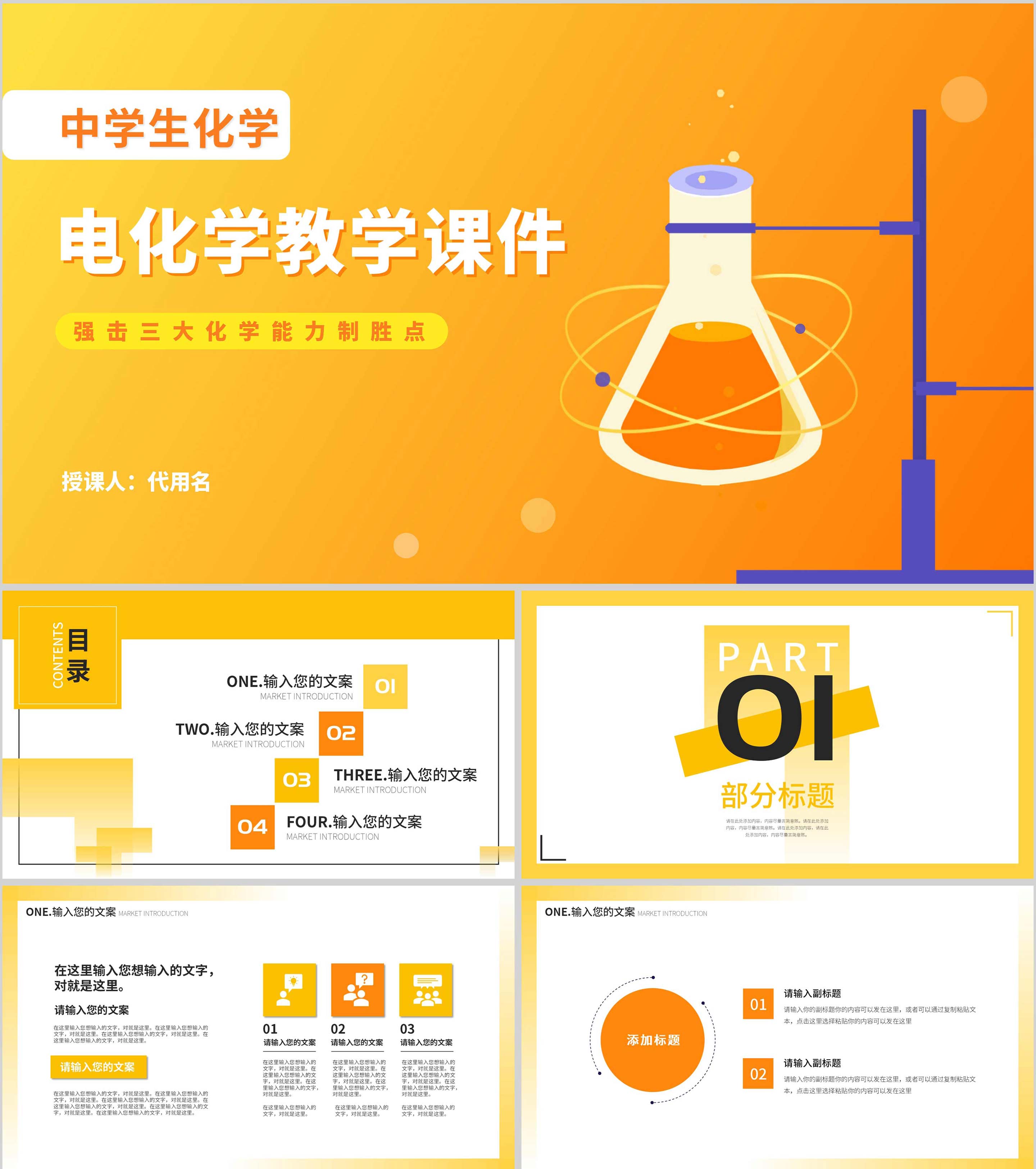 简约风渐变黄色中学生化学电化学课堂教学PPT模板