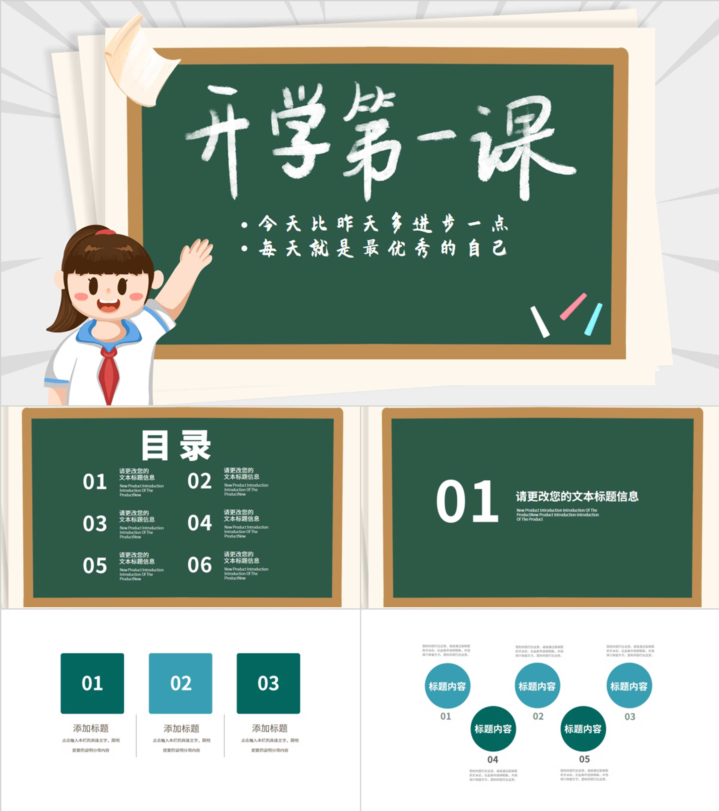 卡通风黑板学生新学期开学第一课汇报PPT模板