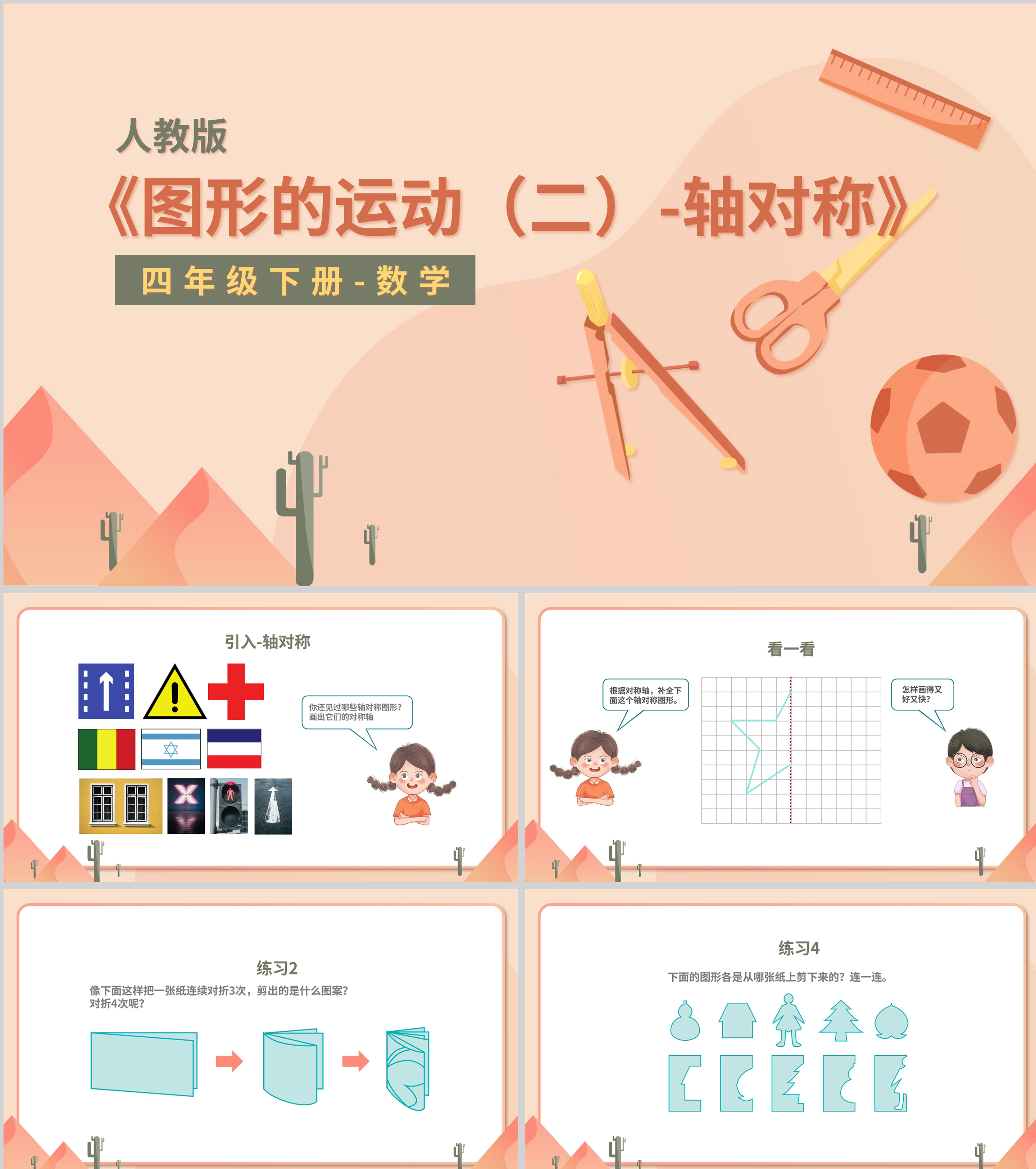 粉色卡通风人教版数学四年级下册--图形的运动(二)
