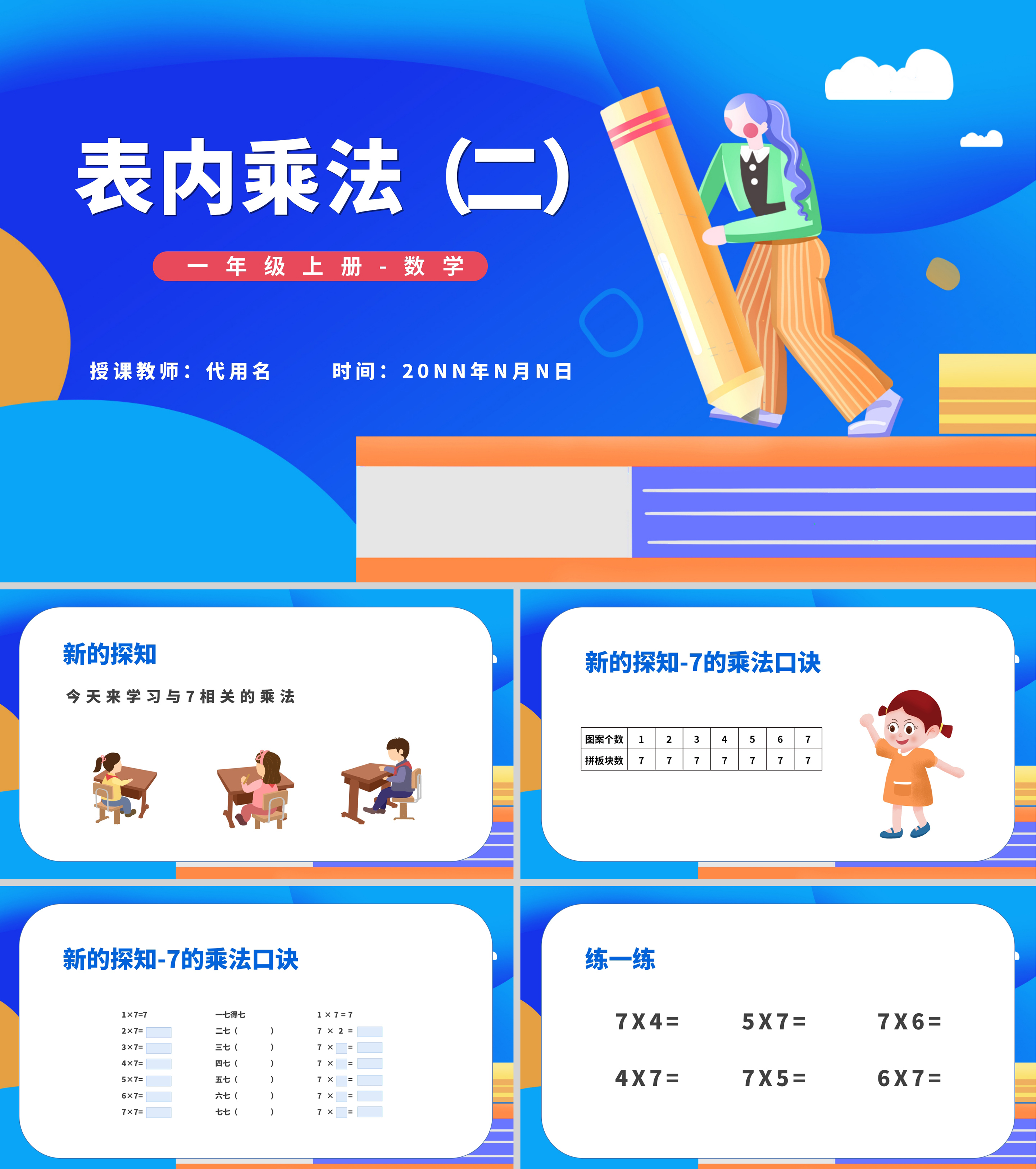蓝色插画风一年级上册数学表内乘法PPT模板