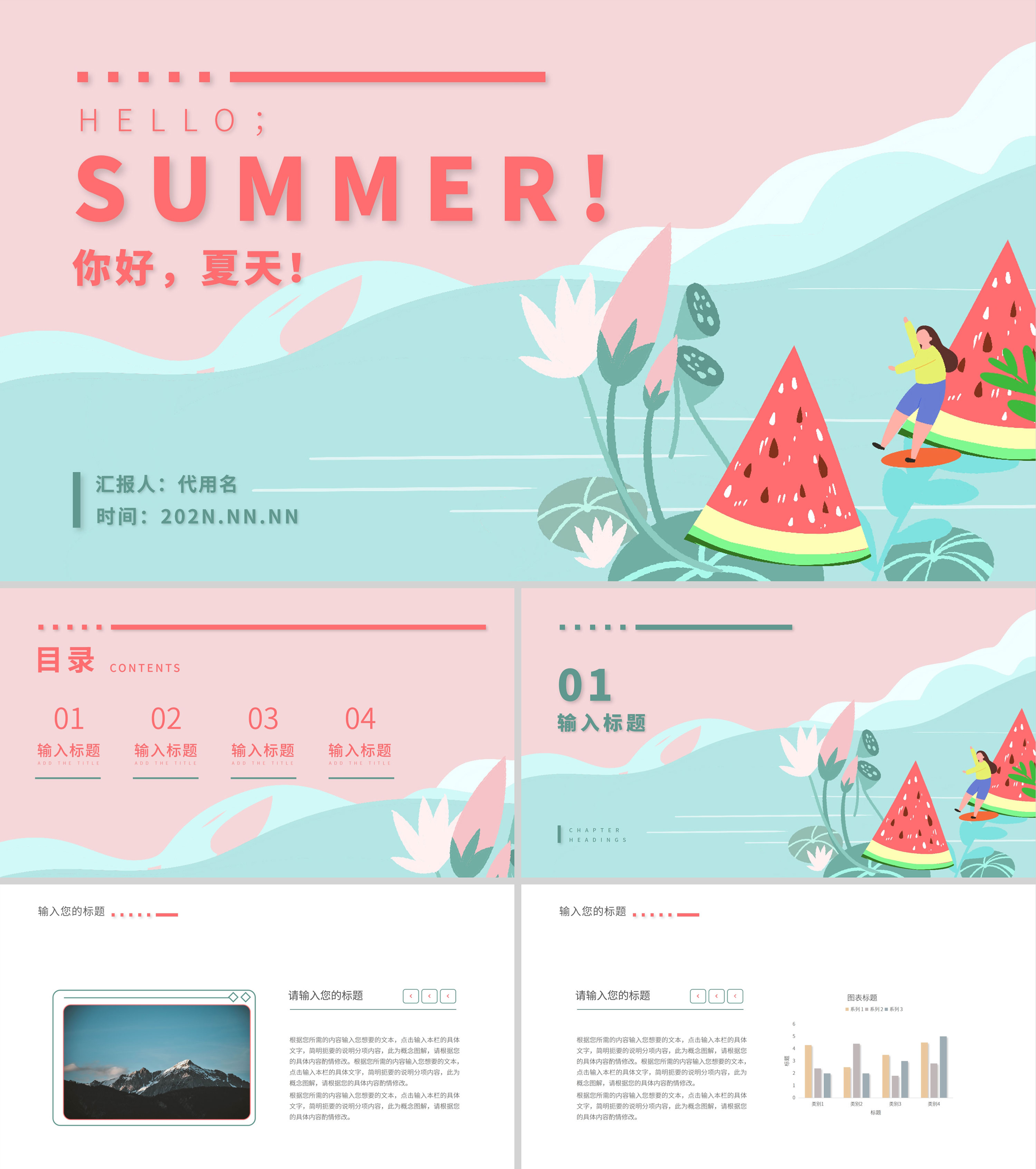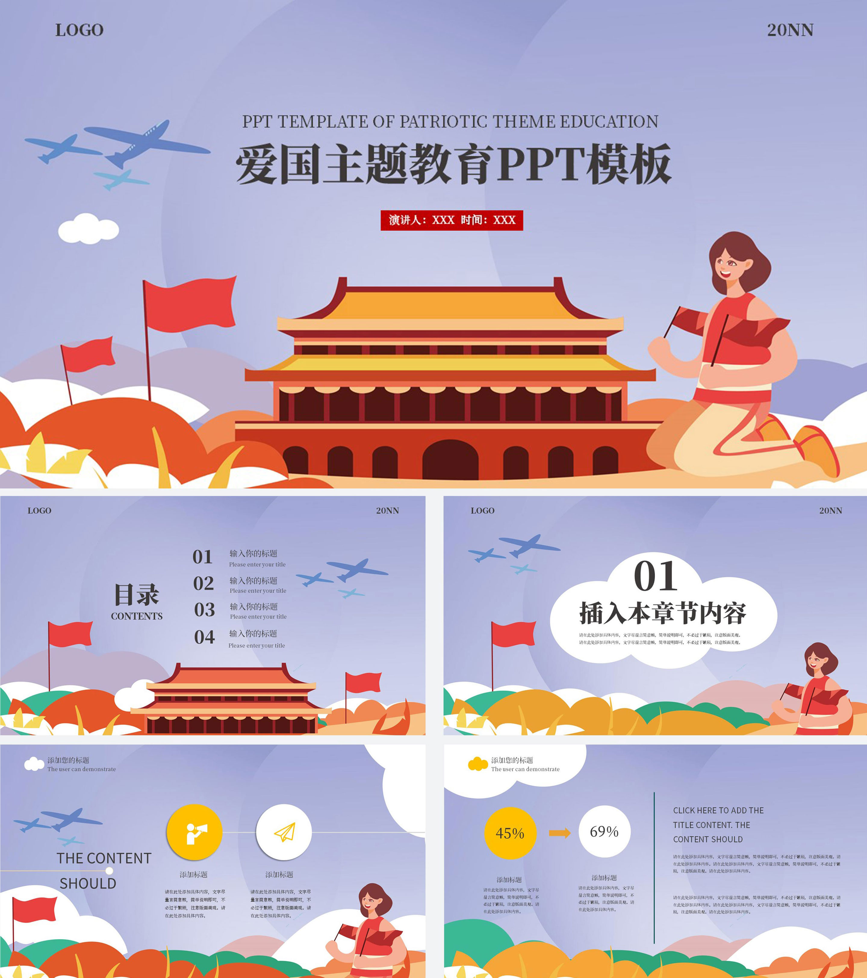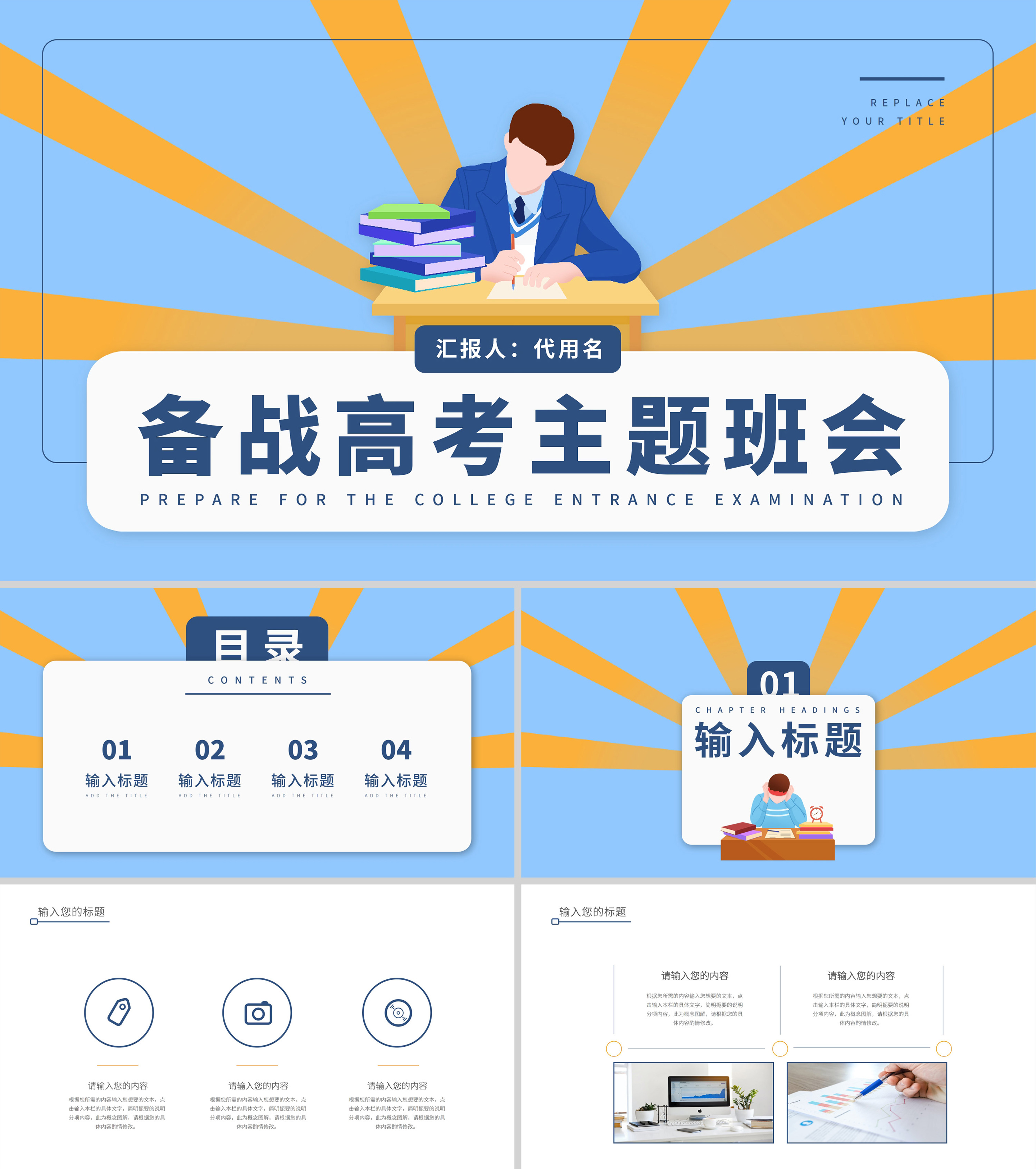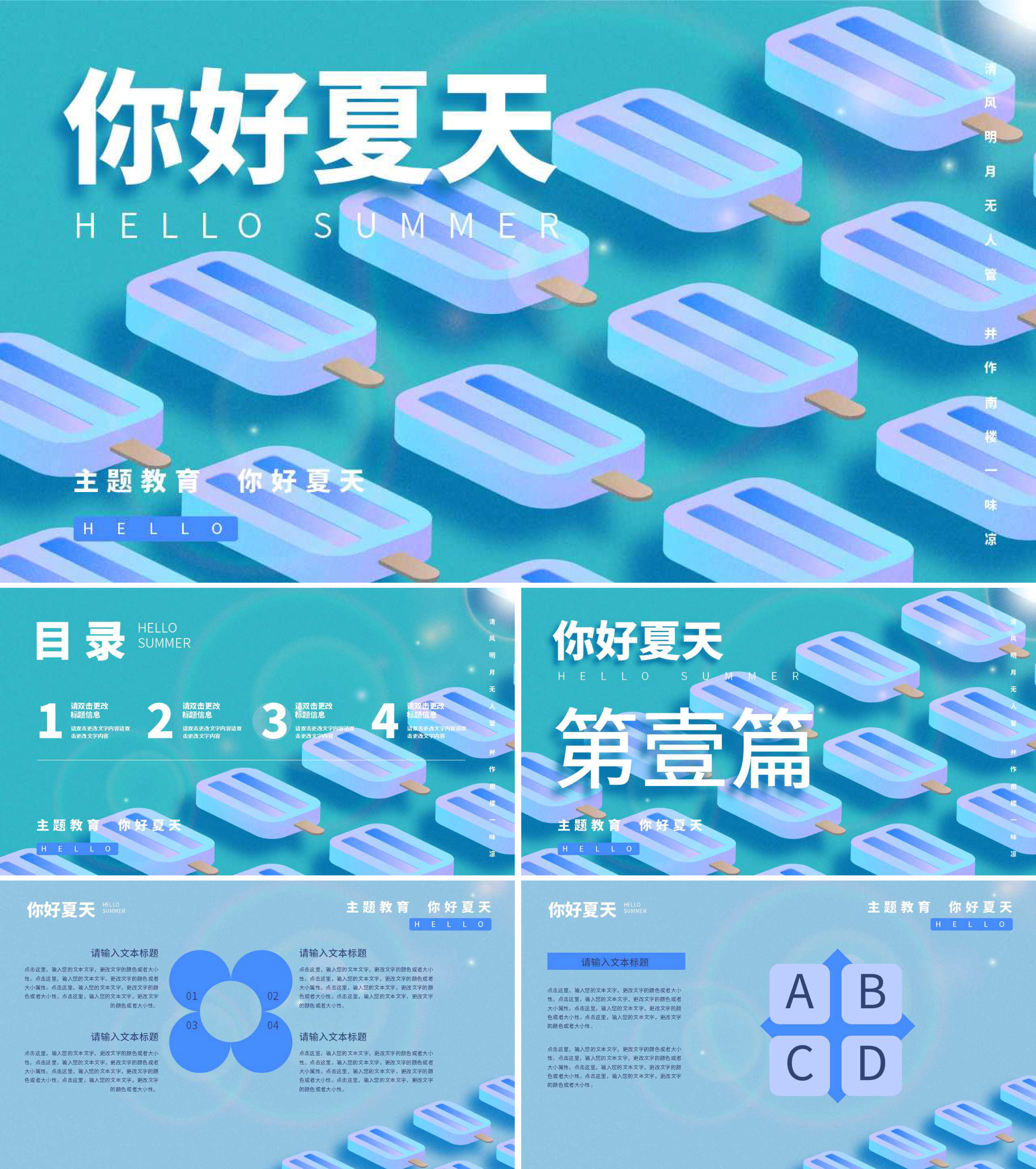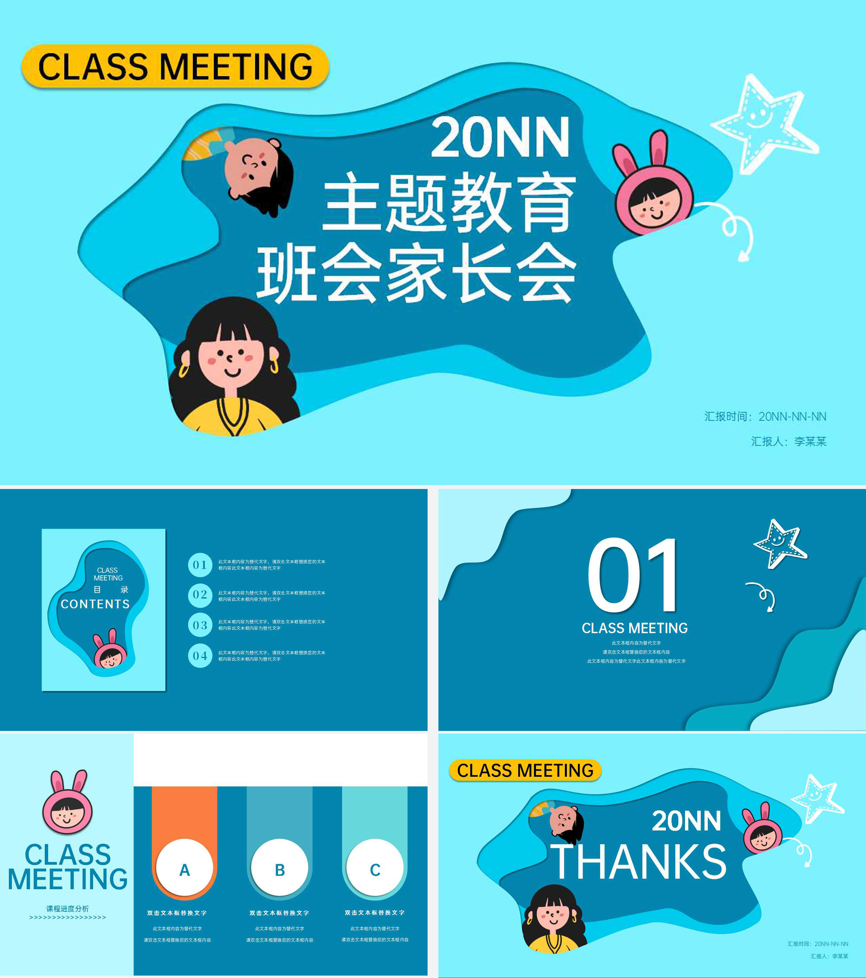 蓝色手绘卡通风儿童节主题活动PPT模板