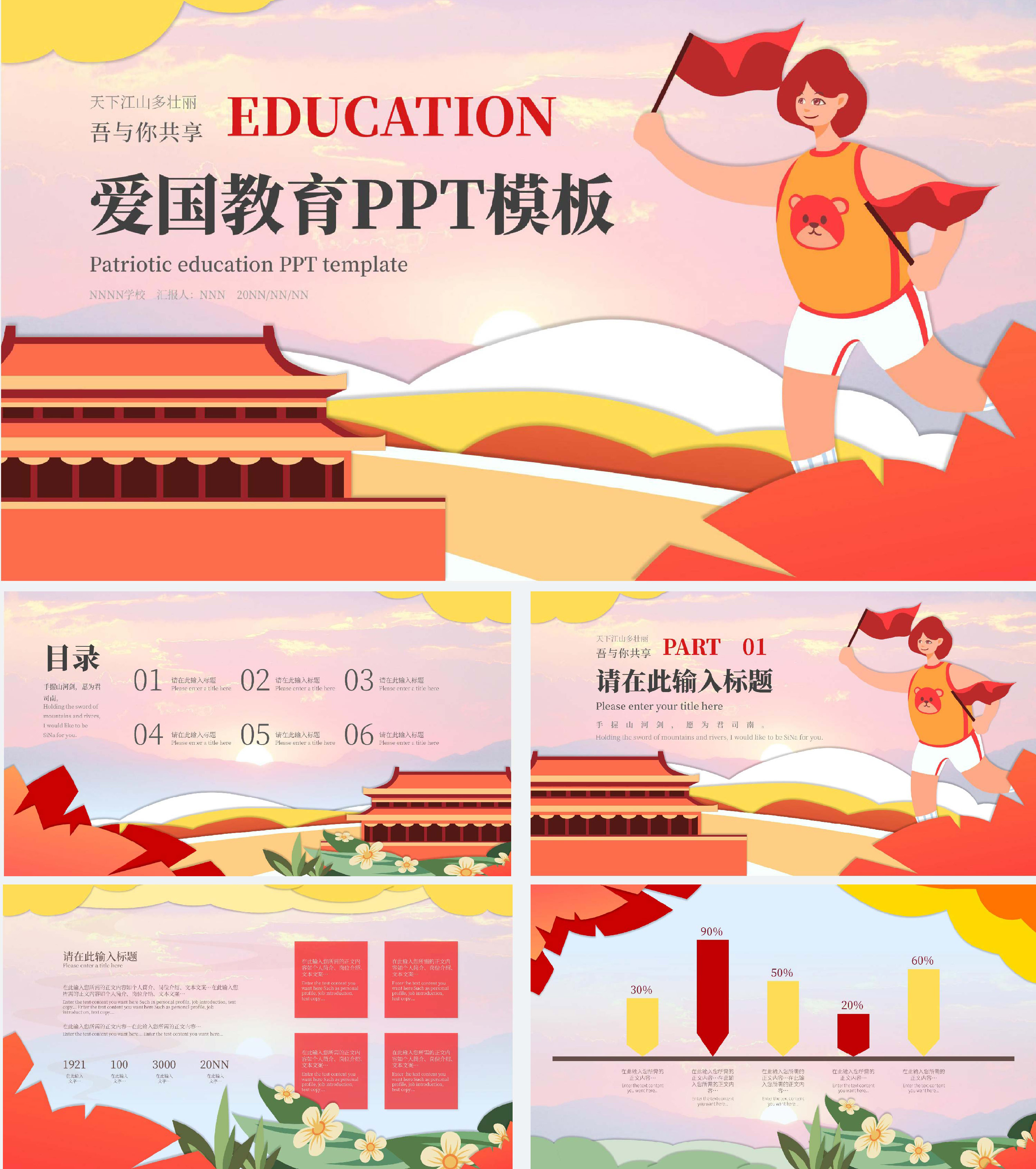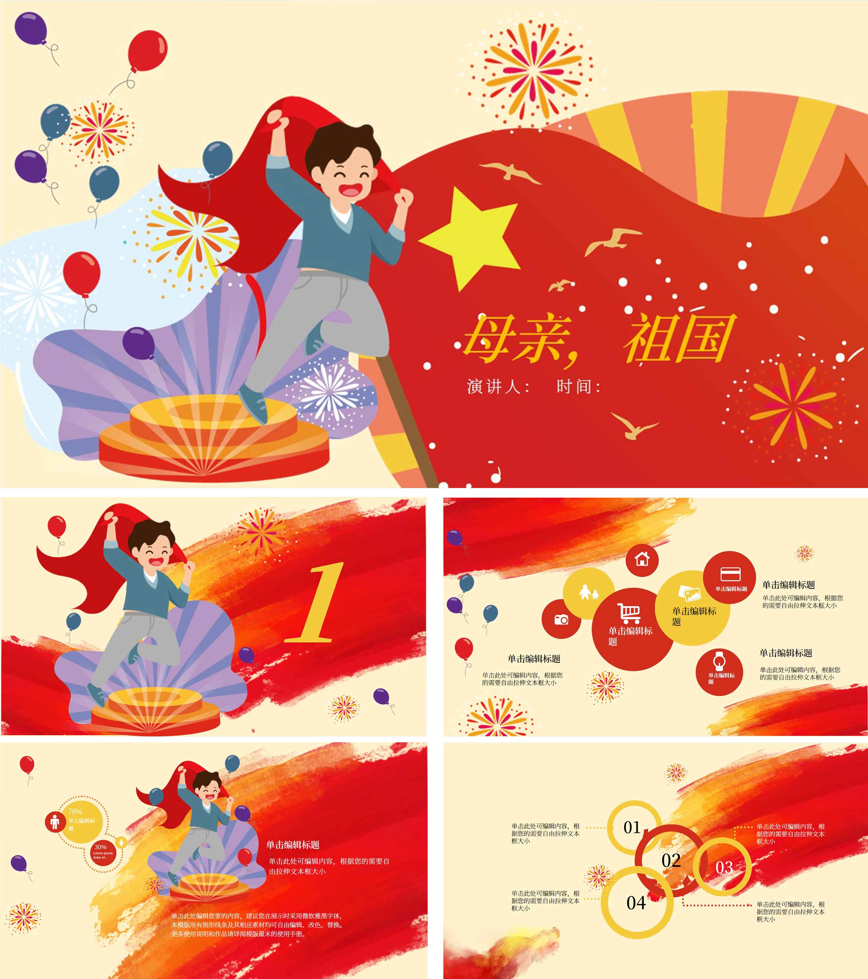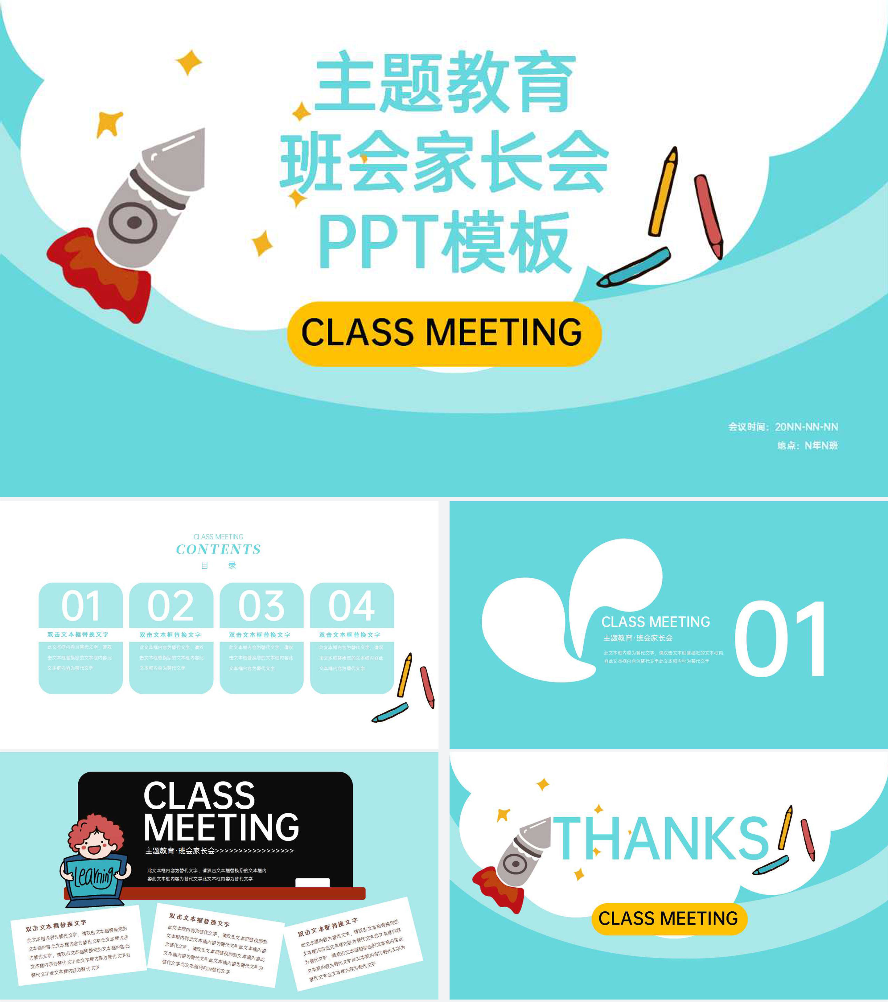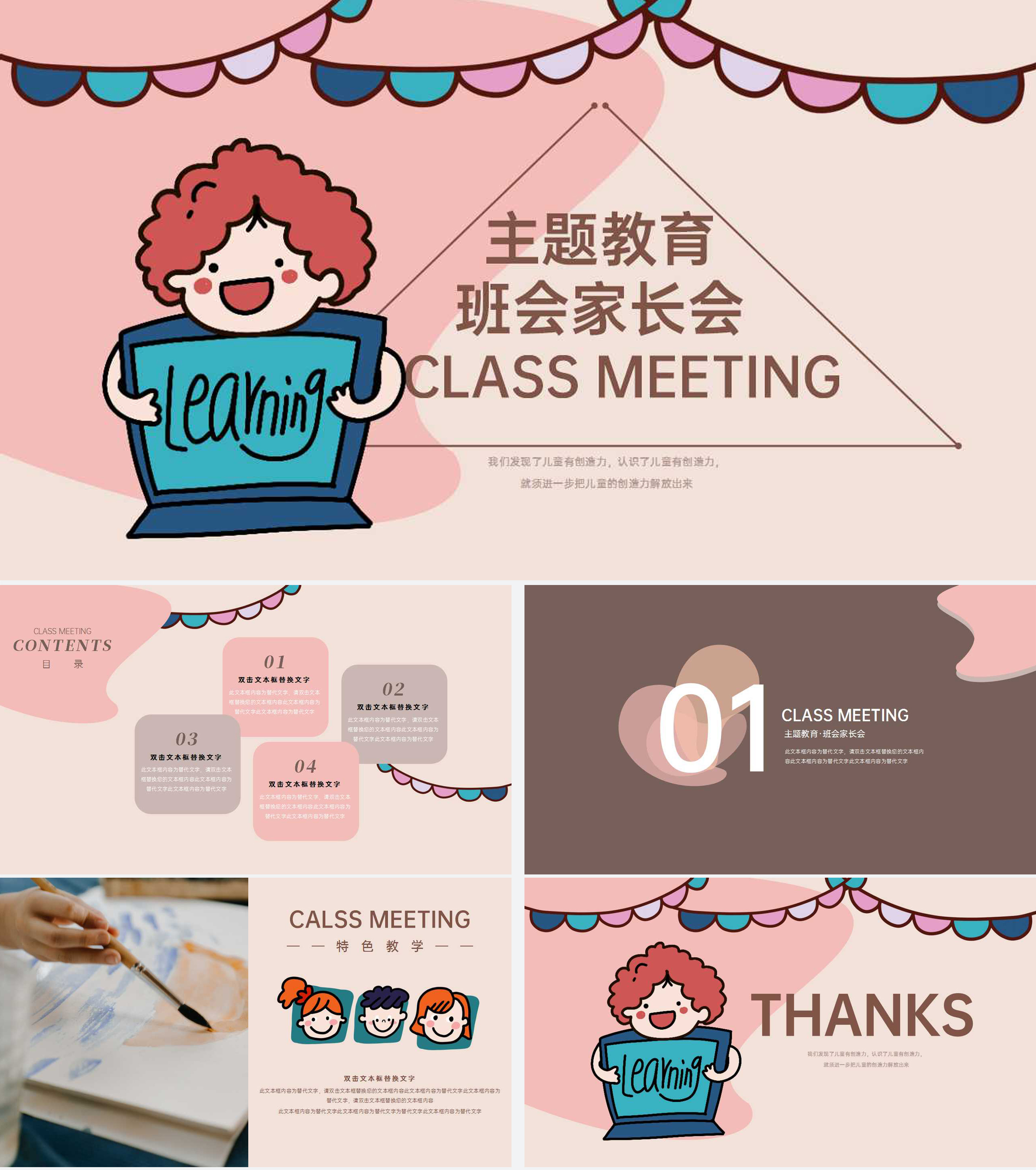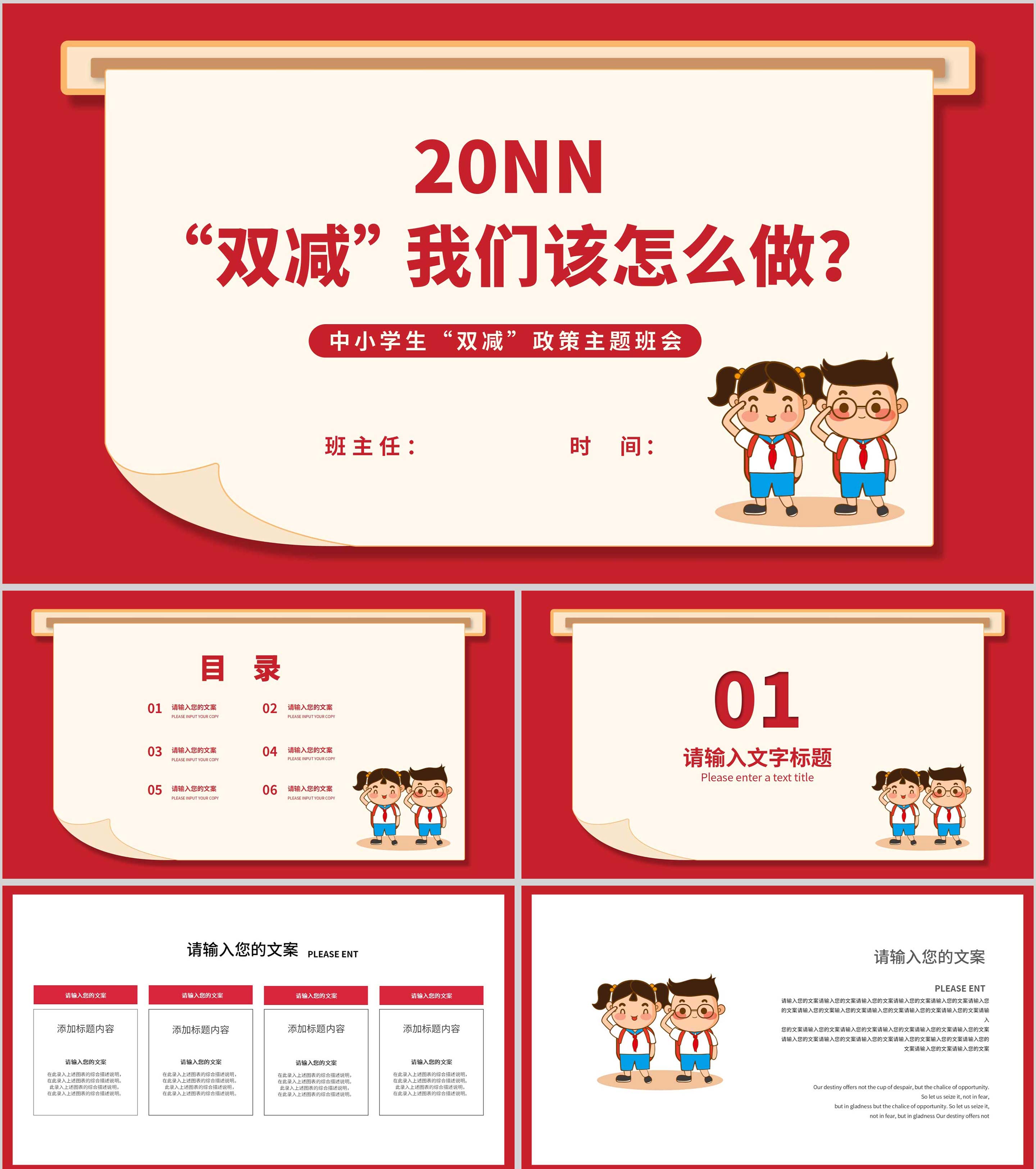 简约卡通红色中小学生“双减”政策主题班会PPT模板