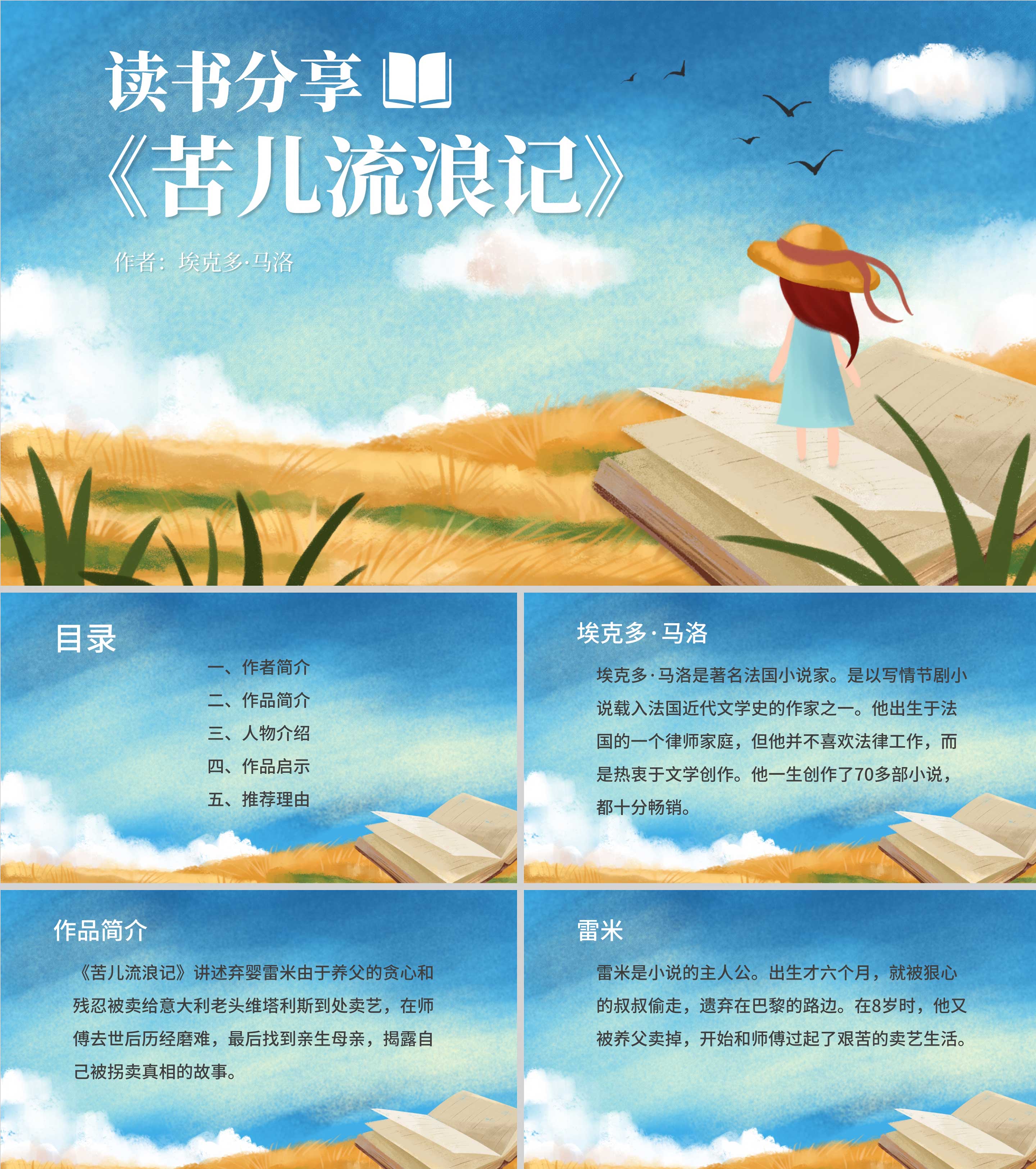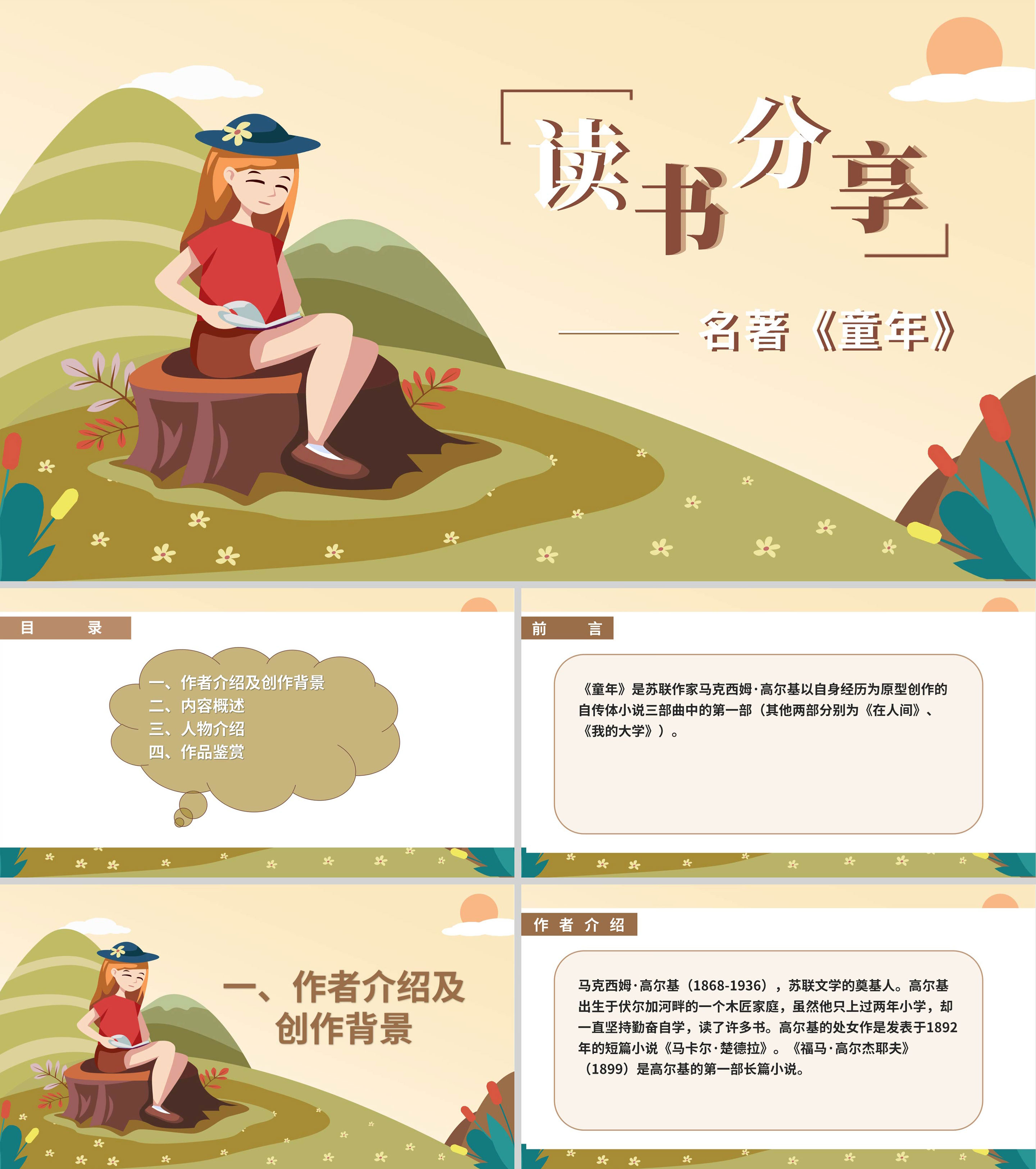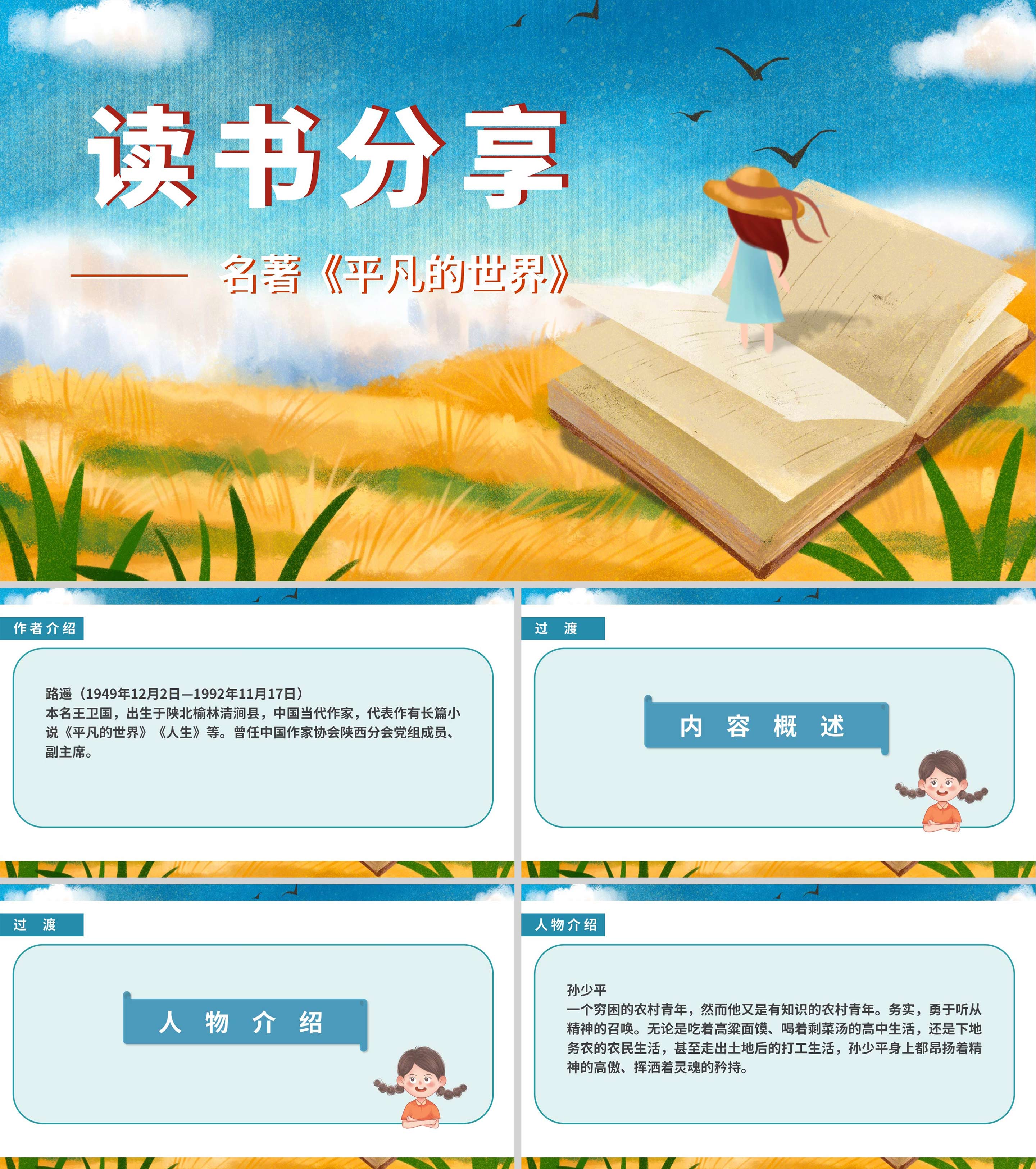 卡通田野名著《平凡的世界》读书分享PPT模板