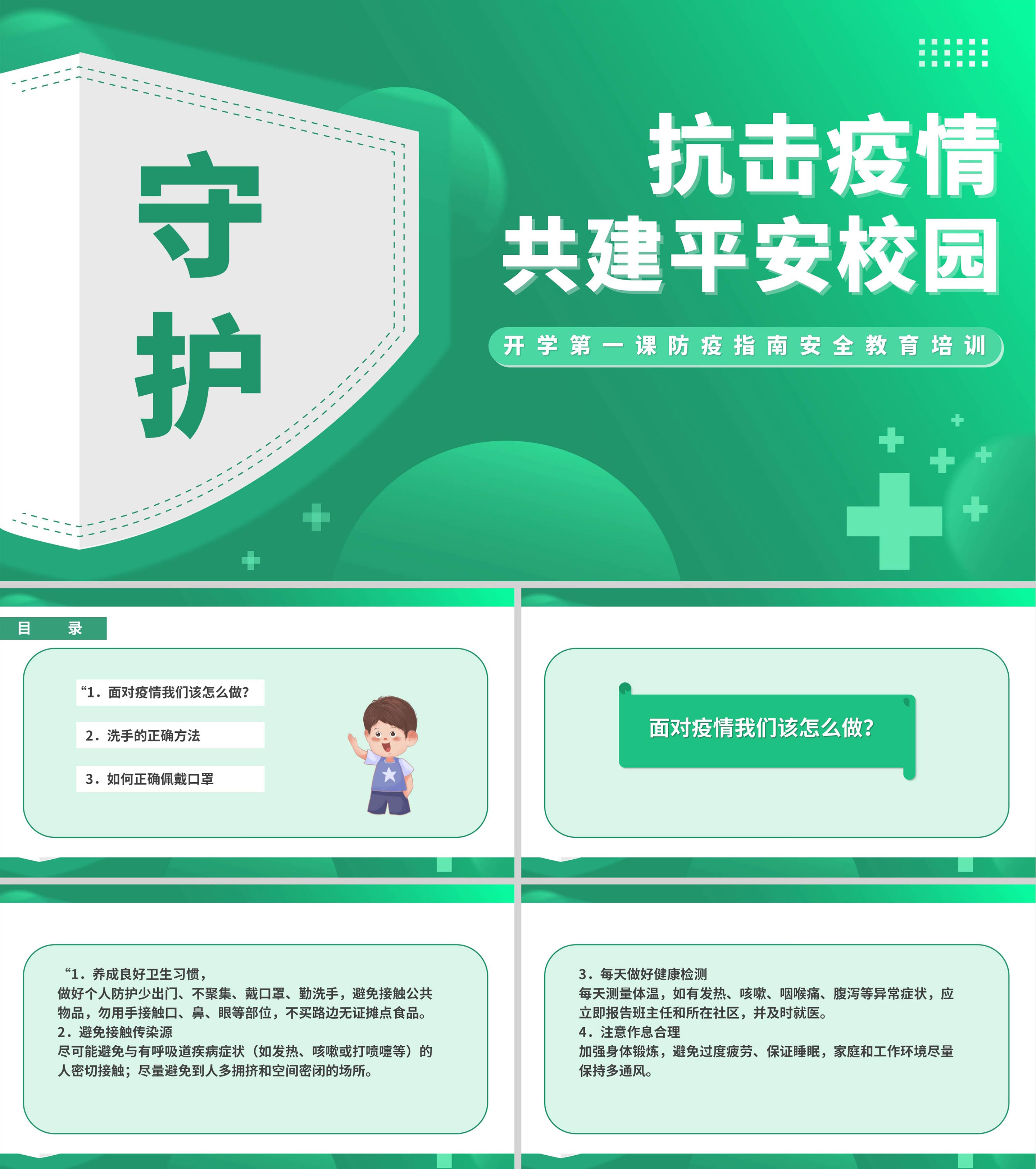 卡通幼儿园《病毒远离我》主题教育班会PPT模板