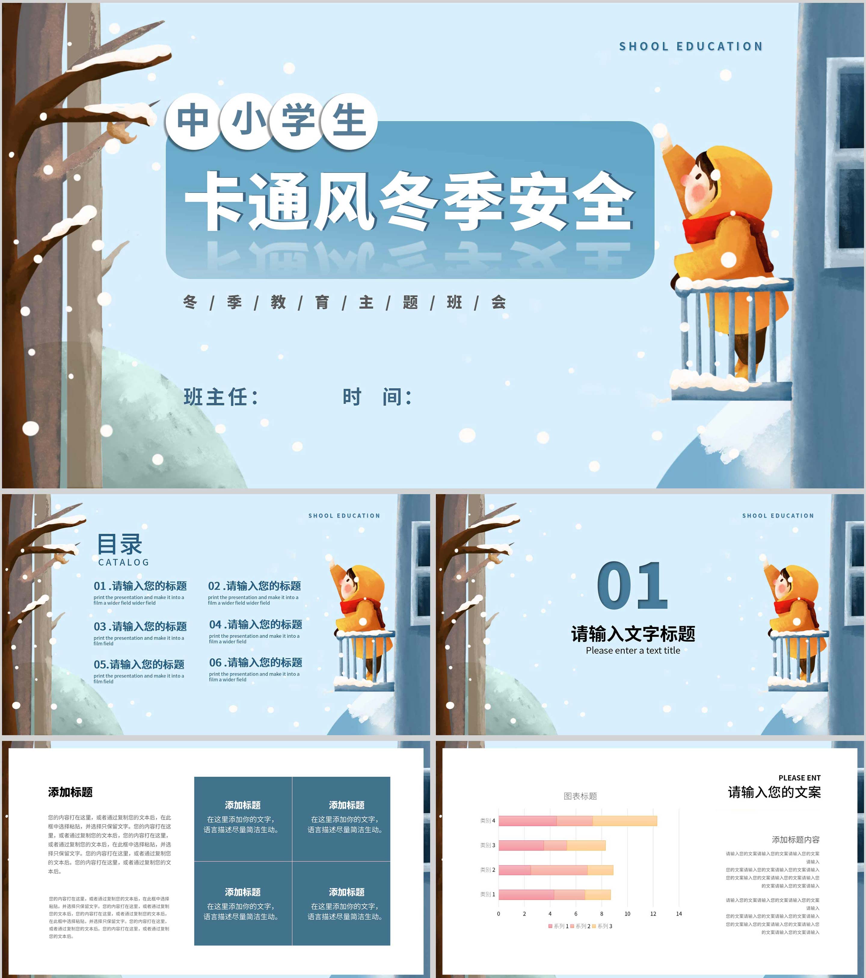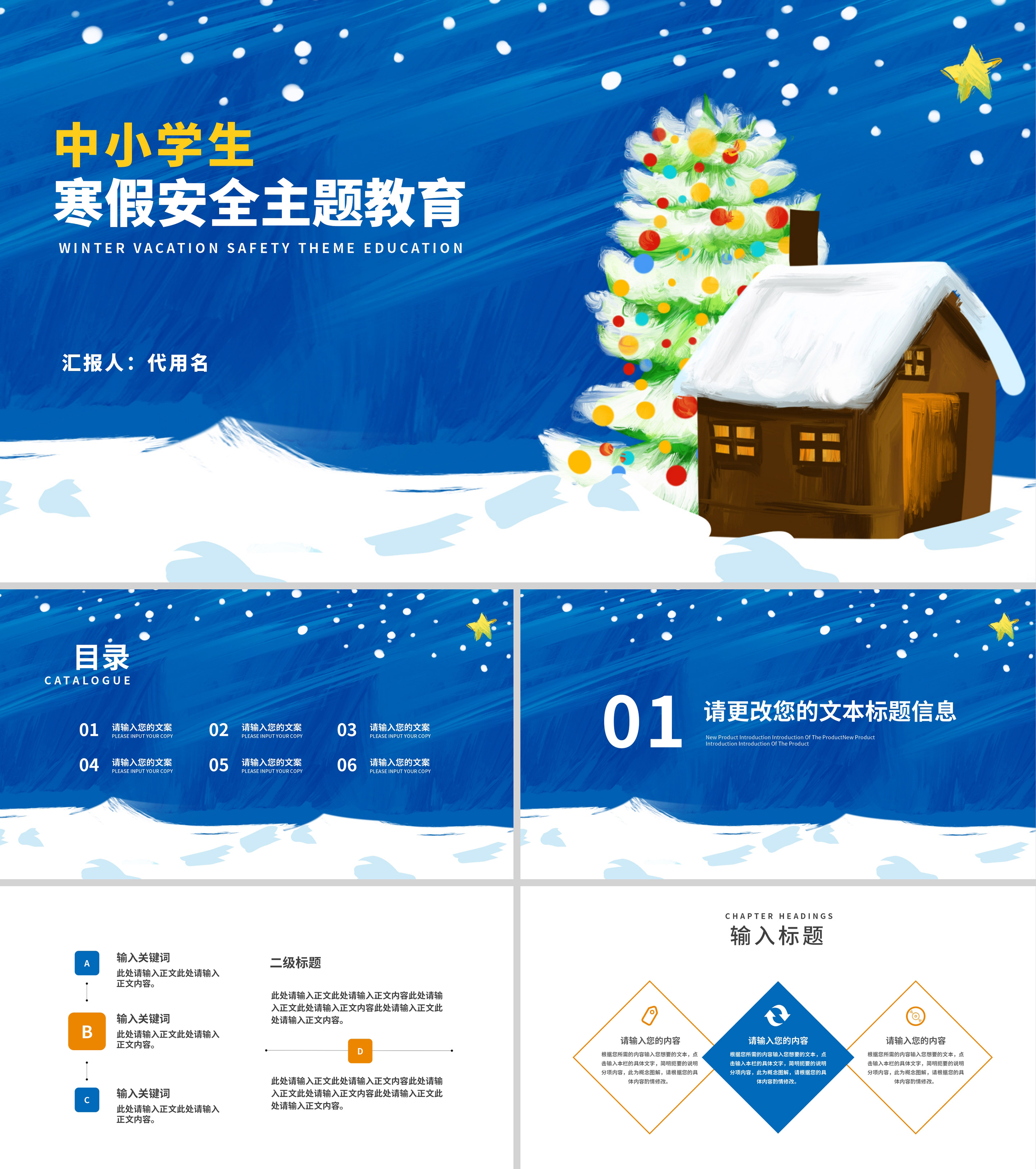 卡通蓝色木屋学生寒假安全主题教育PPT模板
