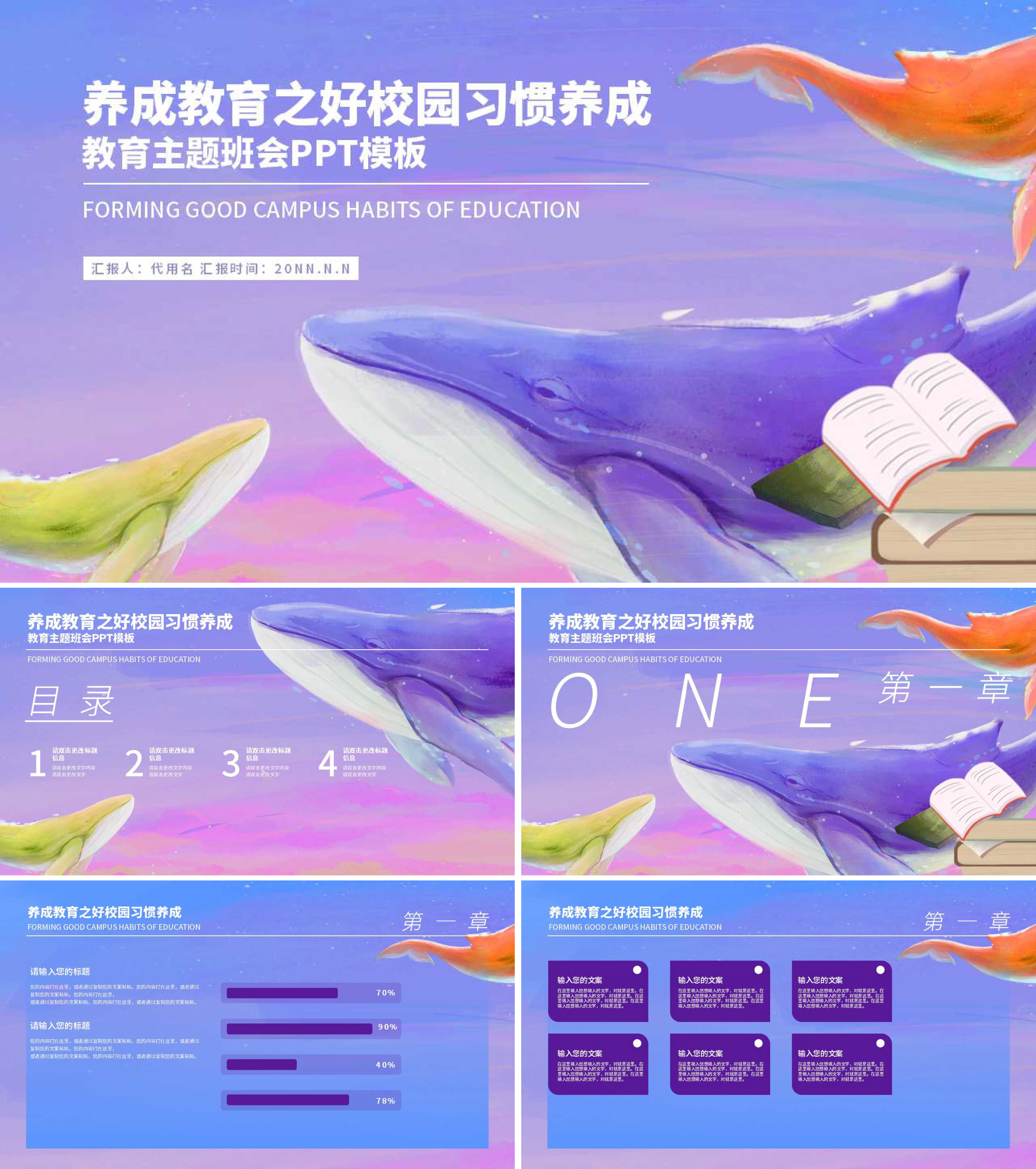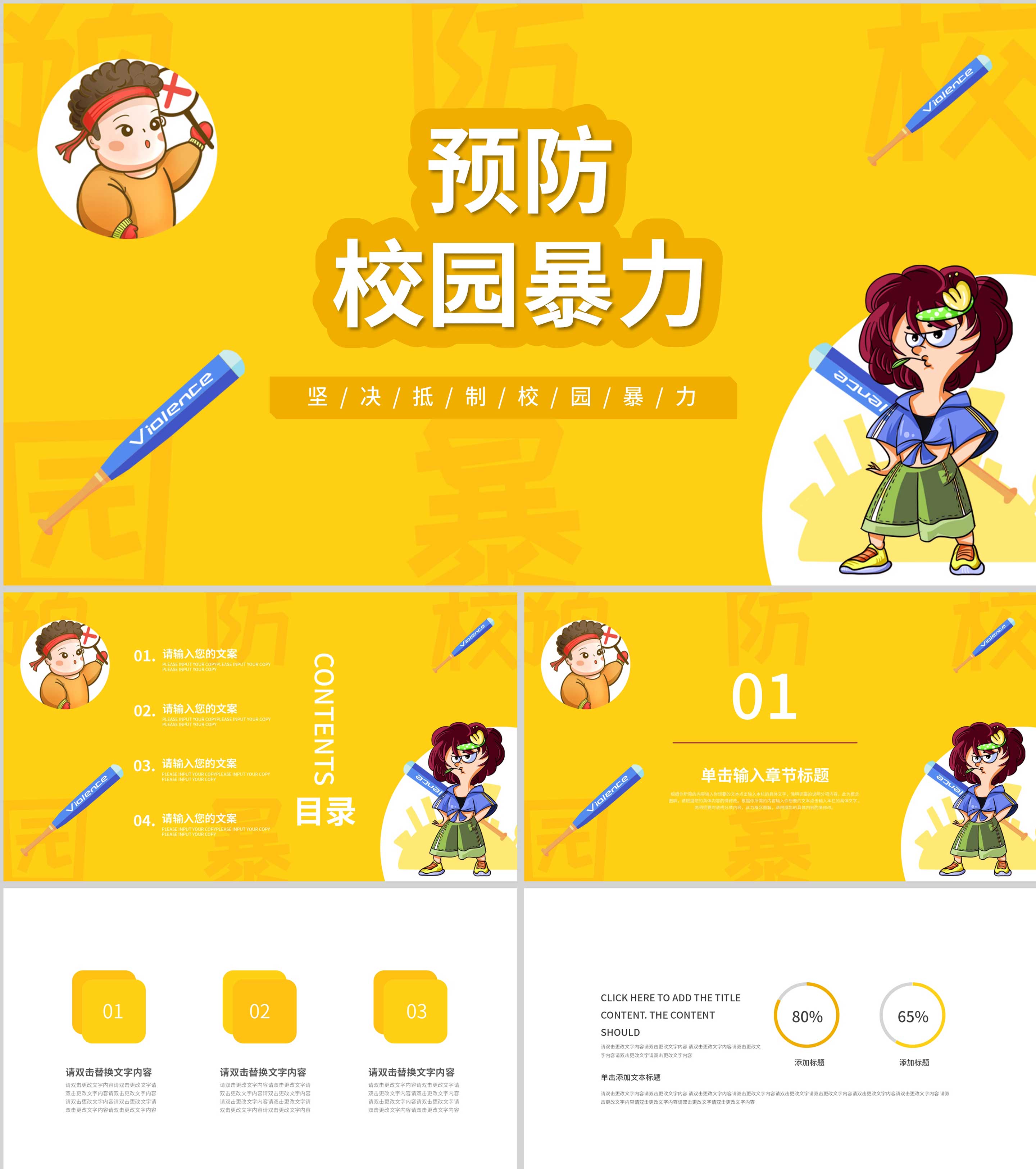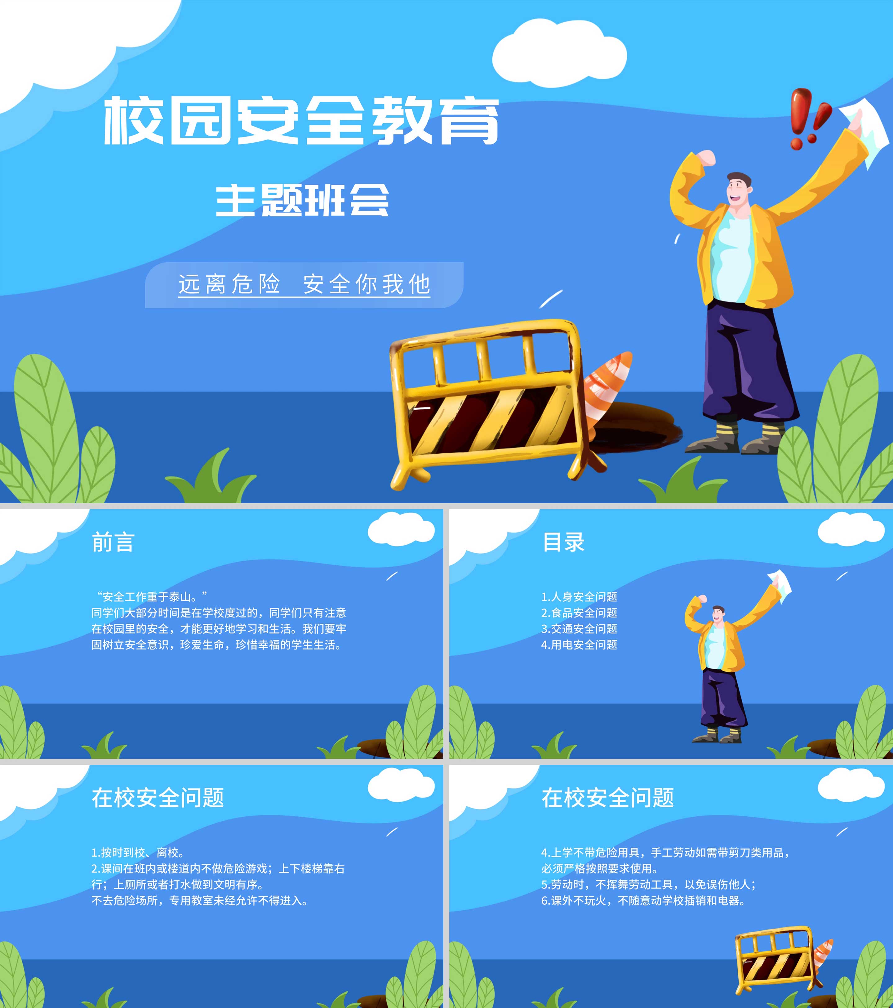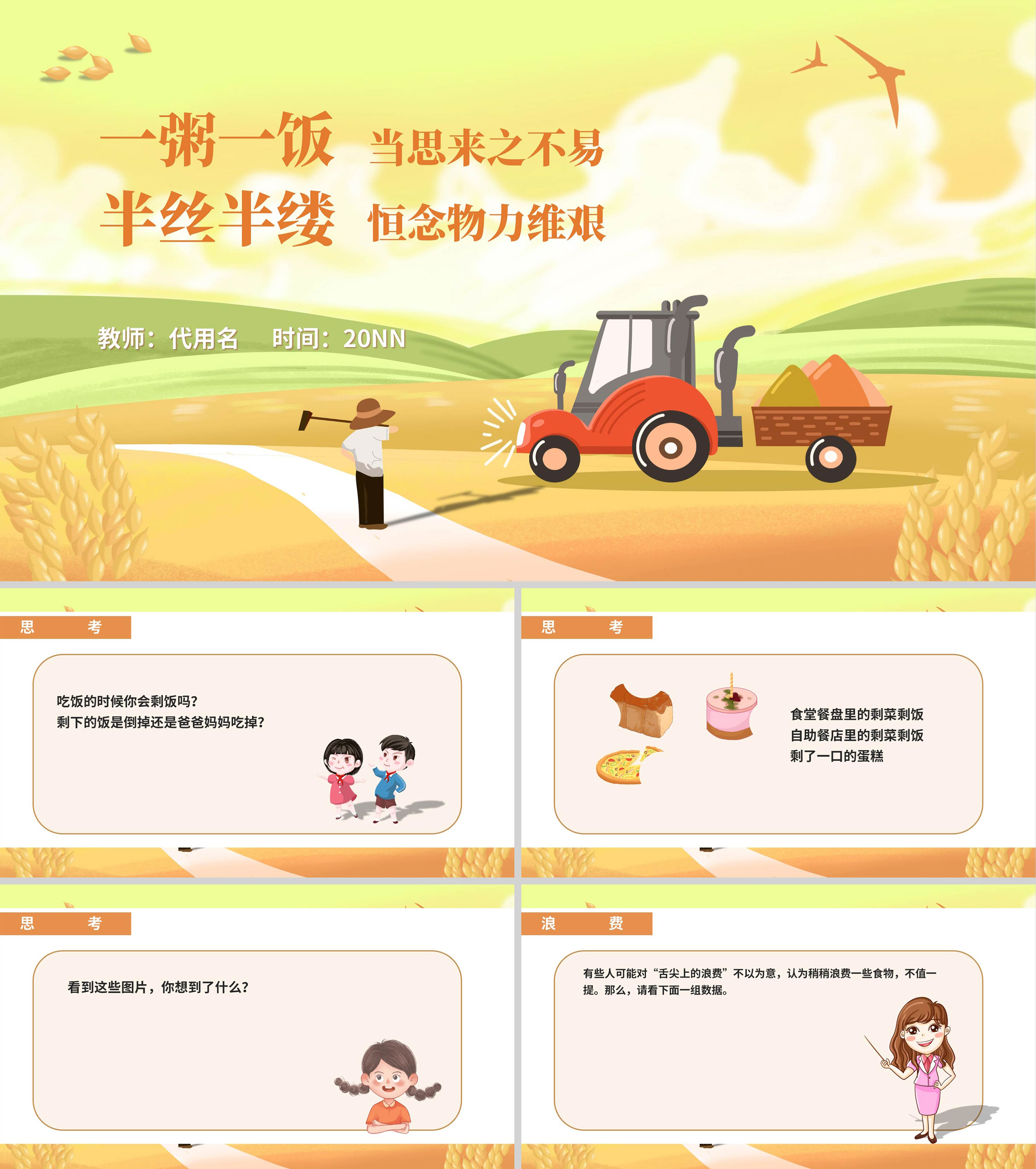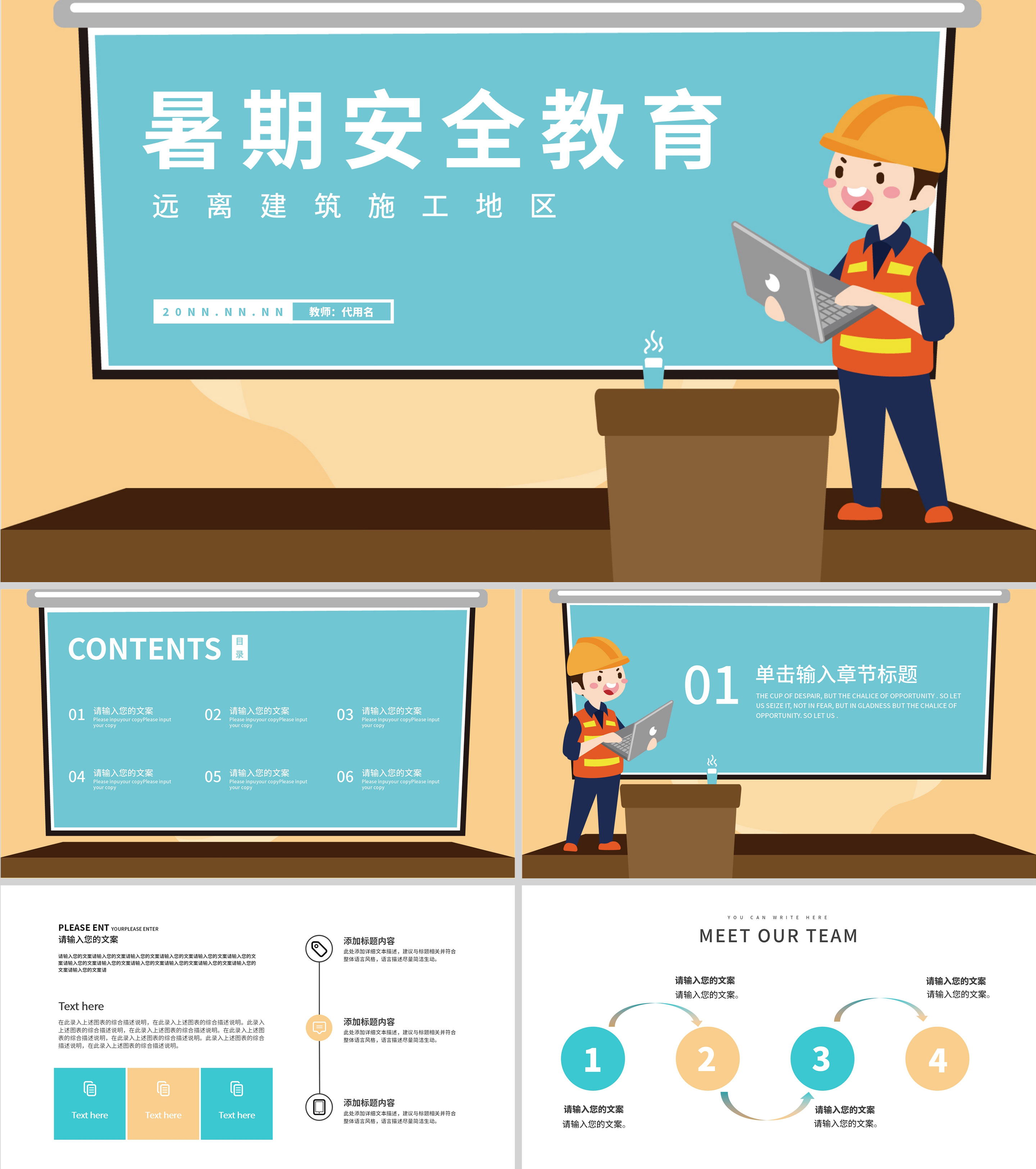 小清新卡通风橙色为梦而战主题班会PPT模板