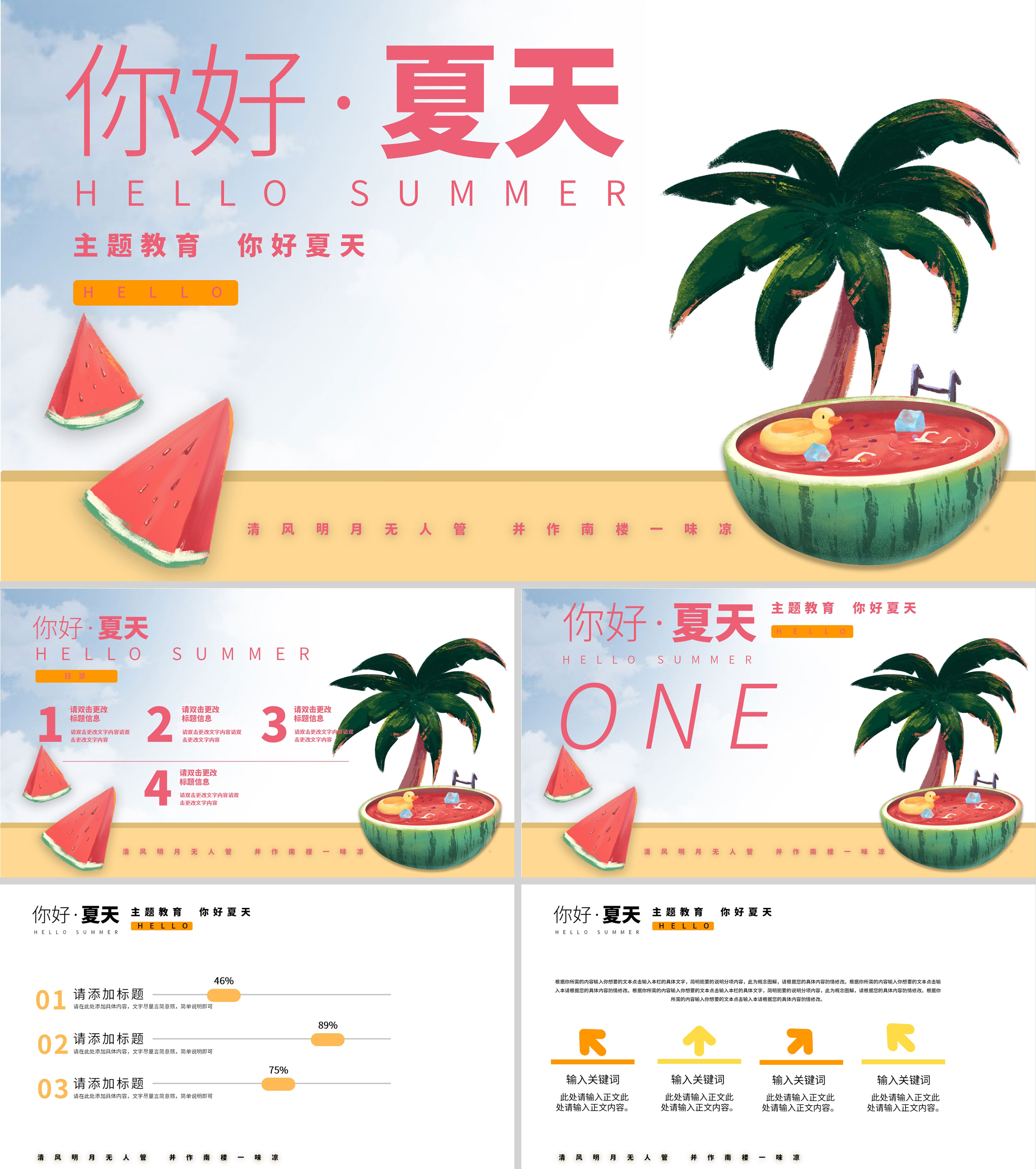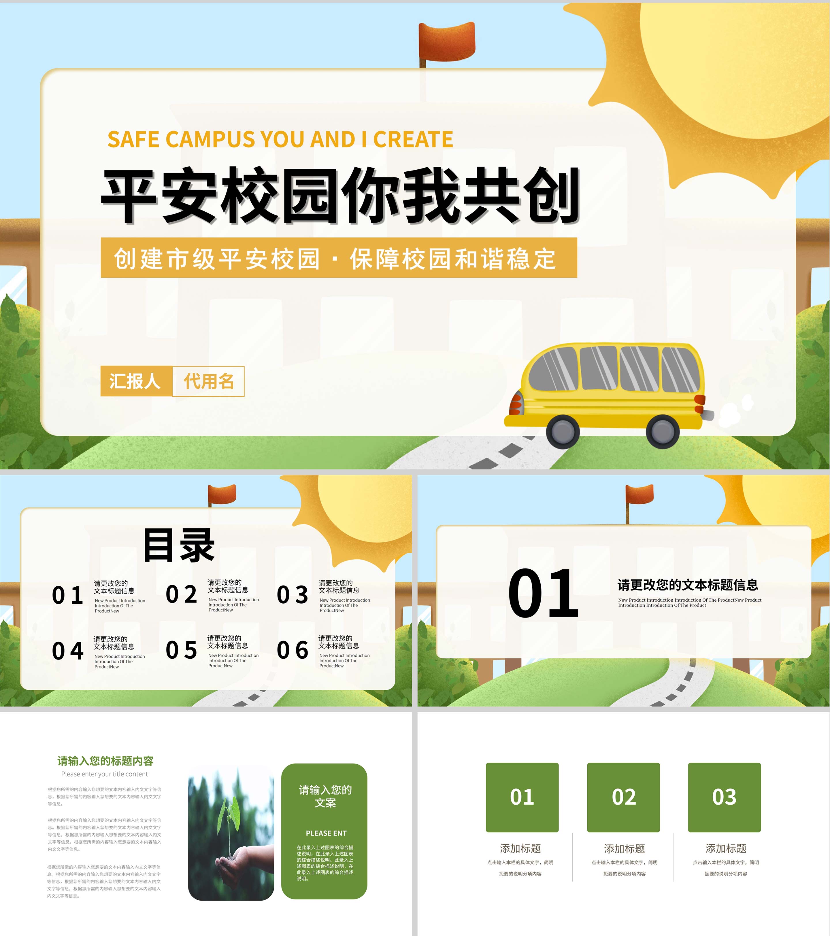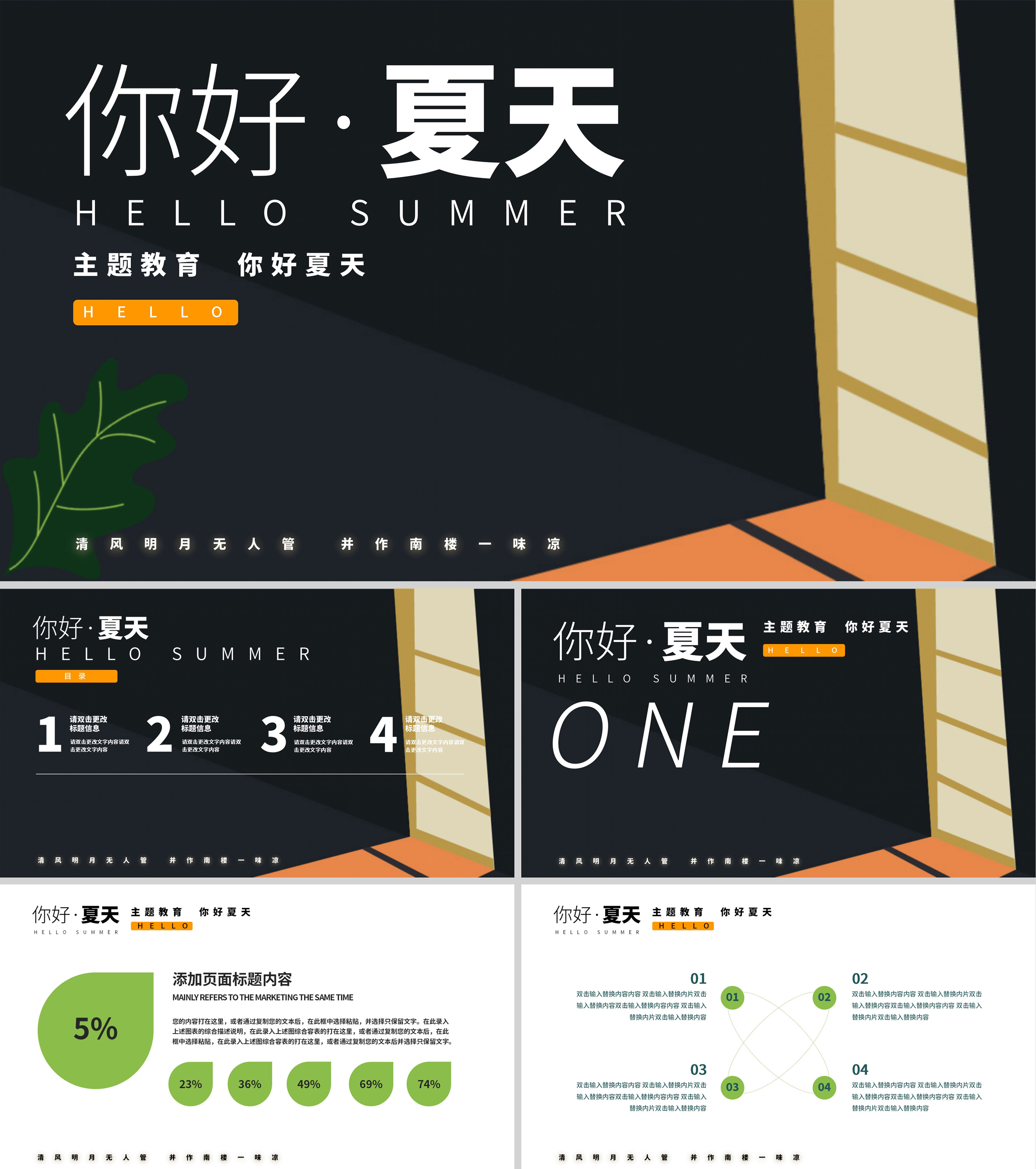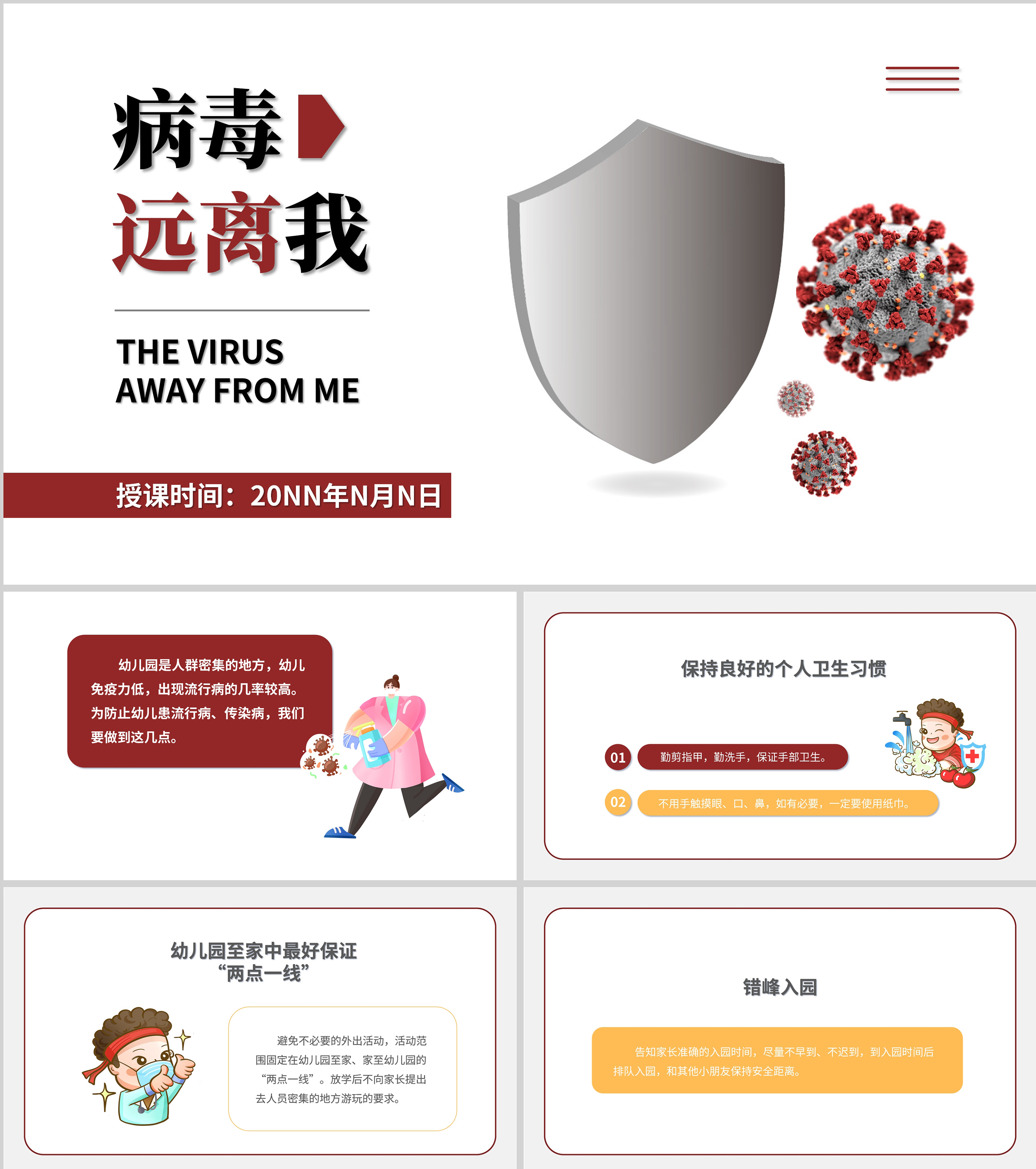 小清新卡通风橙色为梦而战主题班会PPT模板