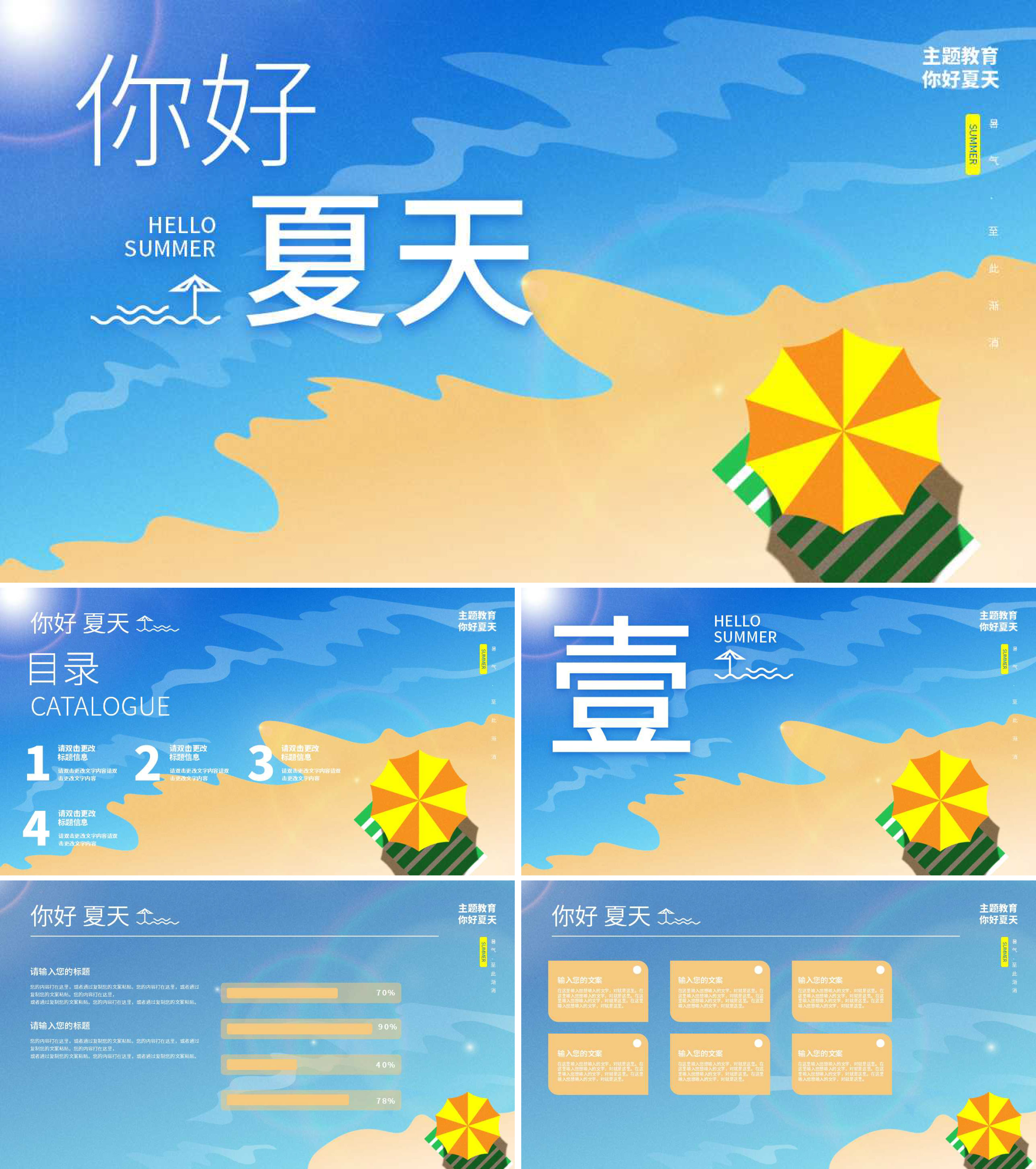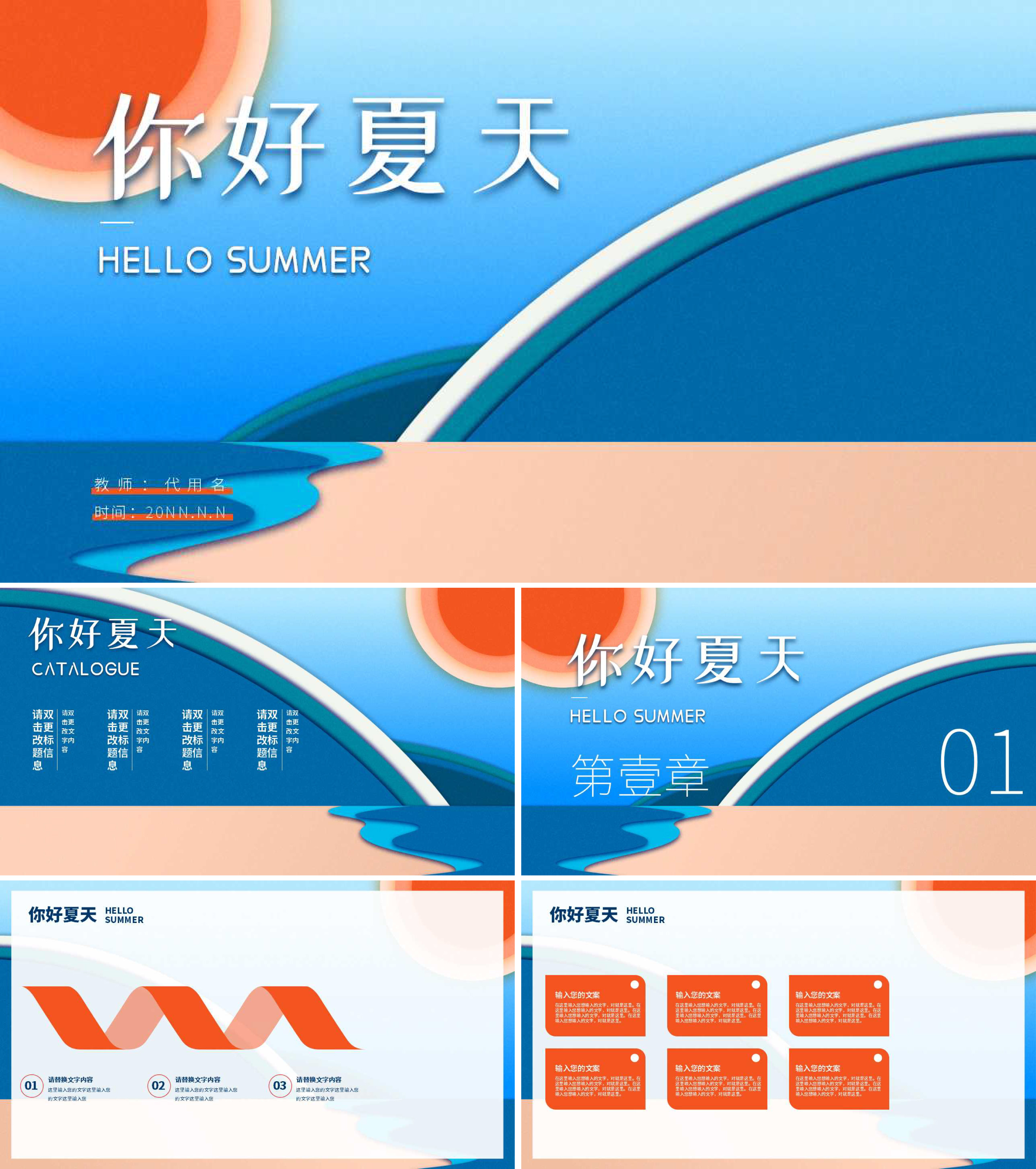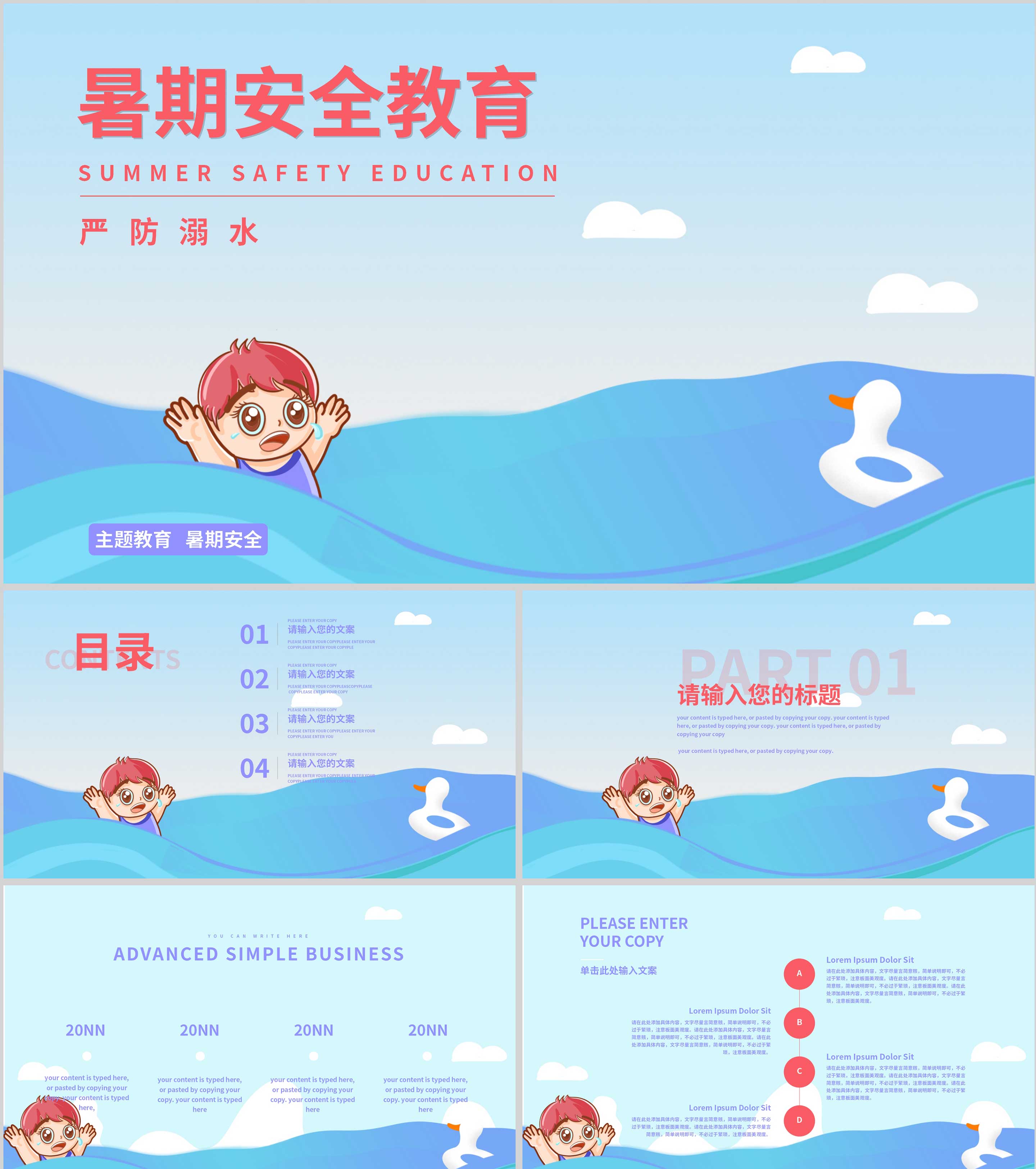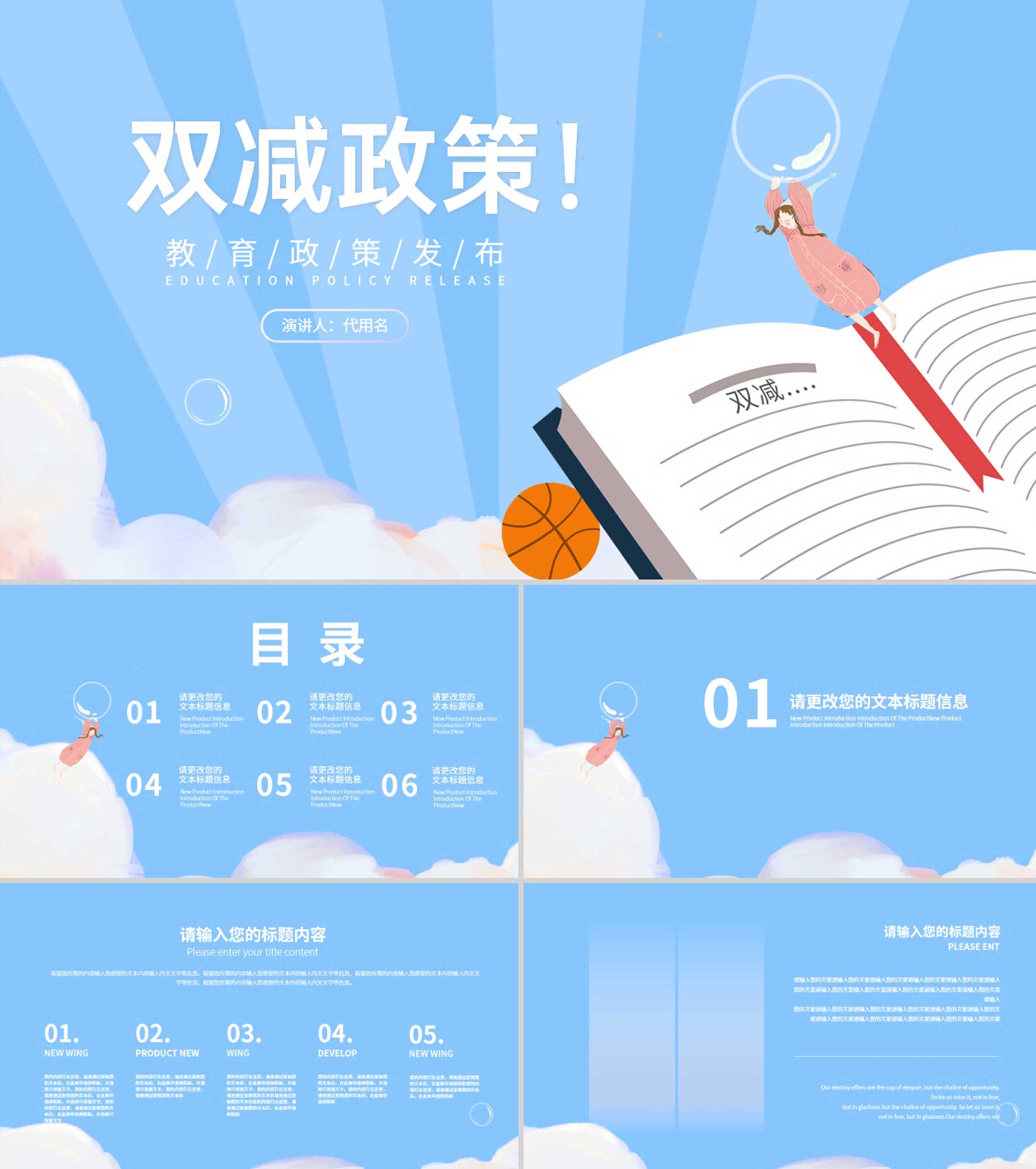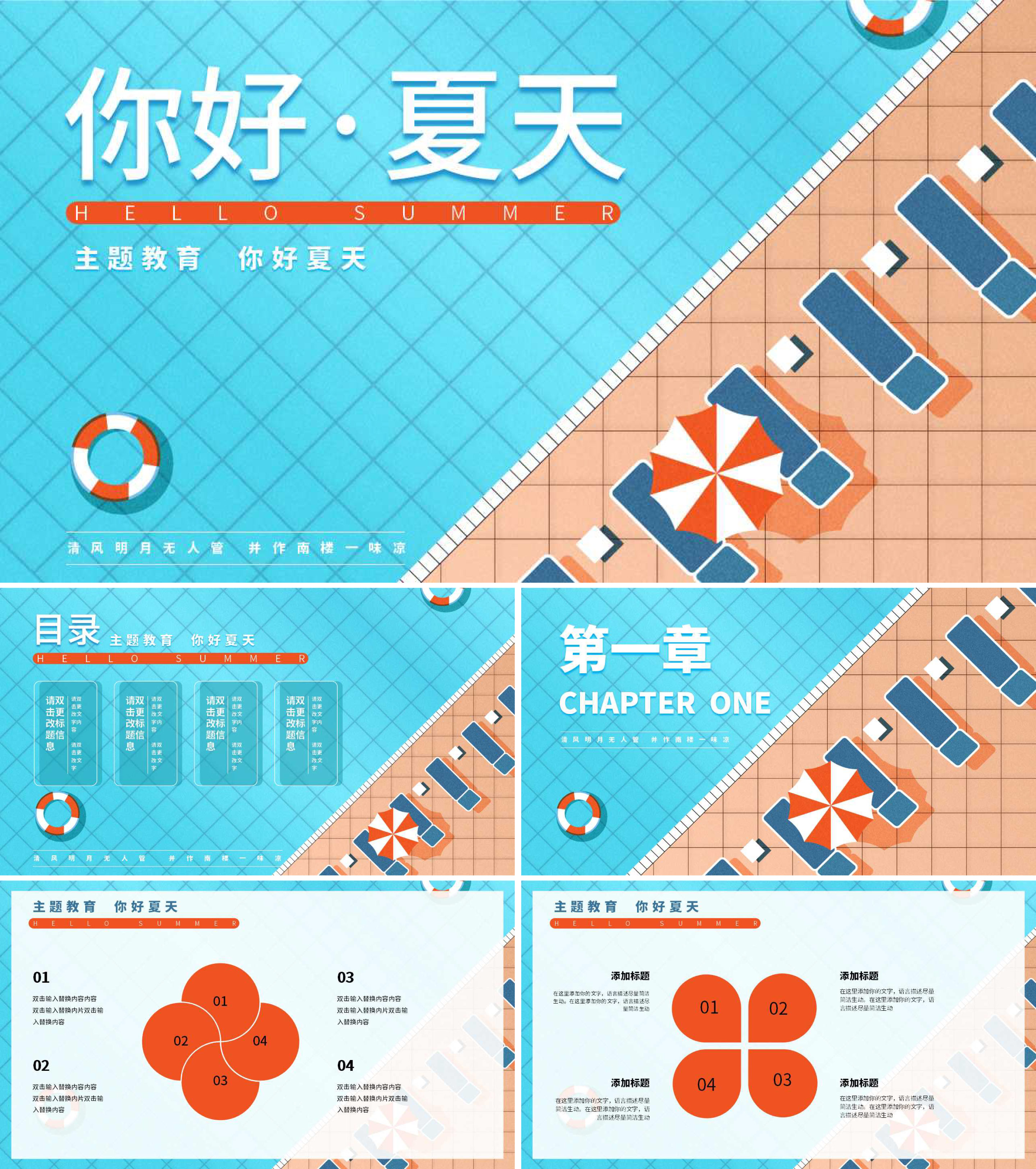 小清新卡通风橙色为梦而战主题班会PPT模板
