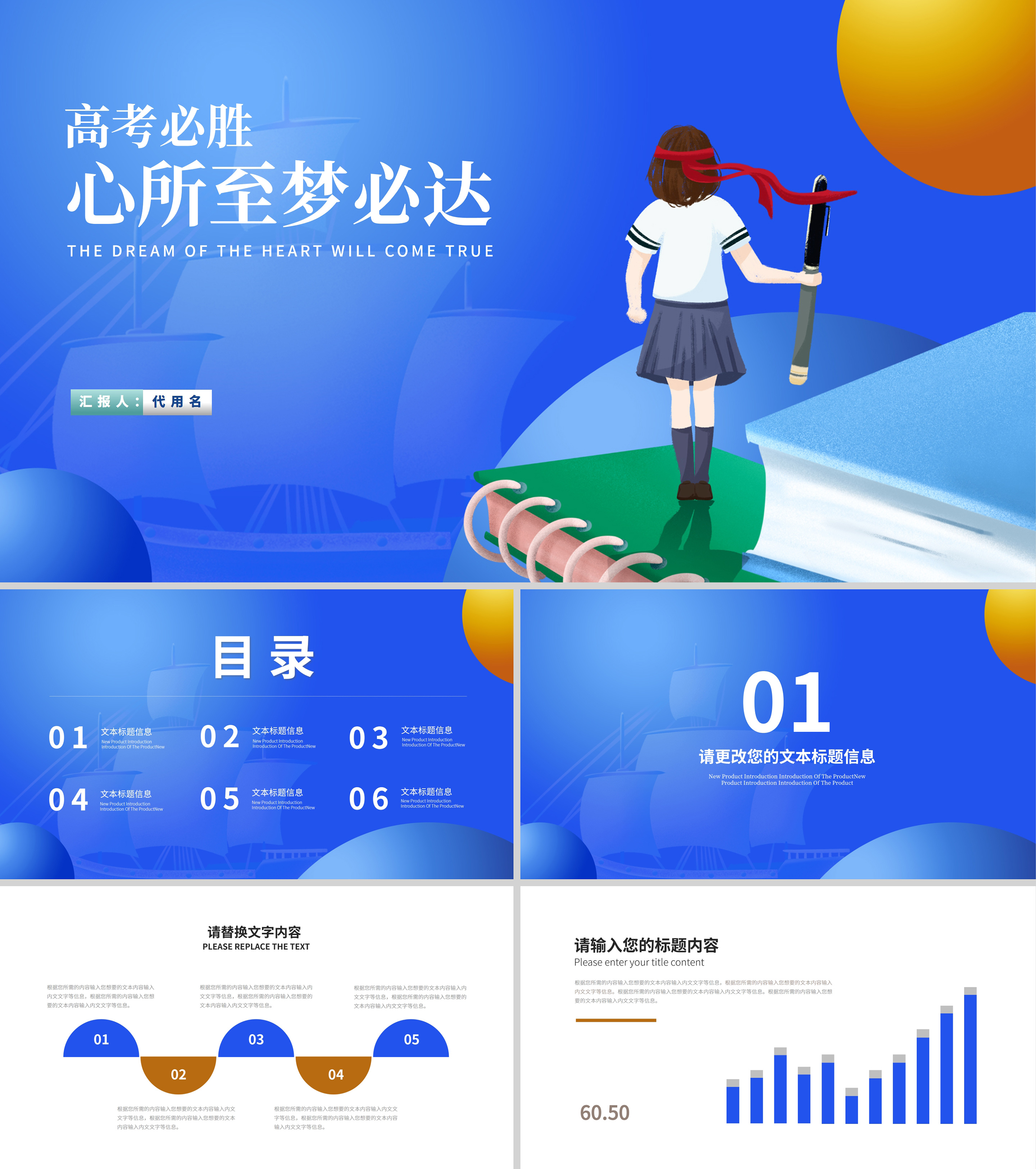 蓝色卡通风扬帆起航高考必胜PPT模板