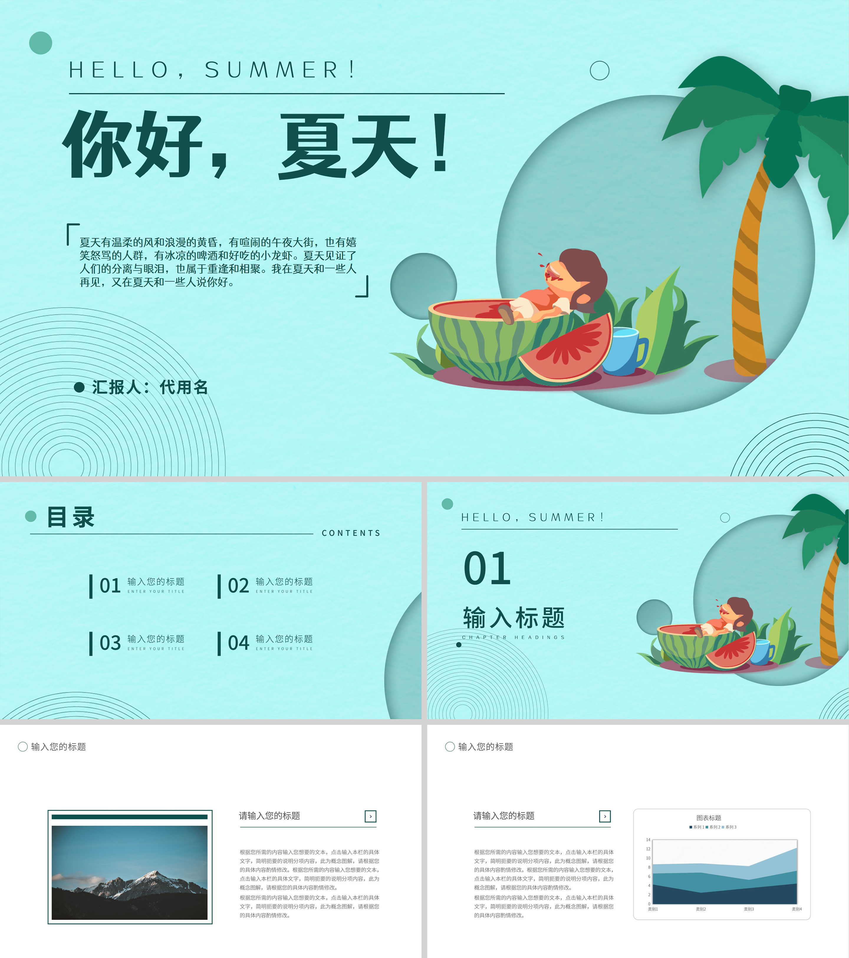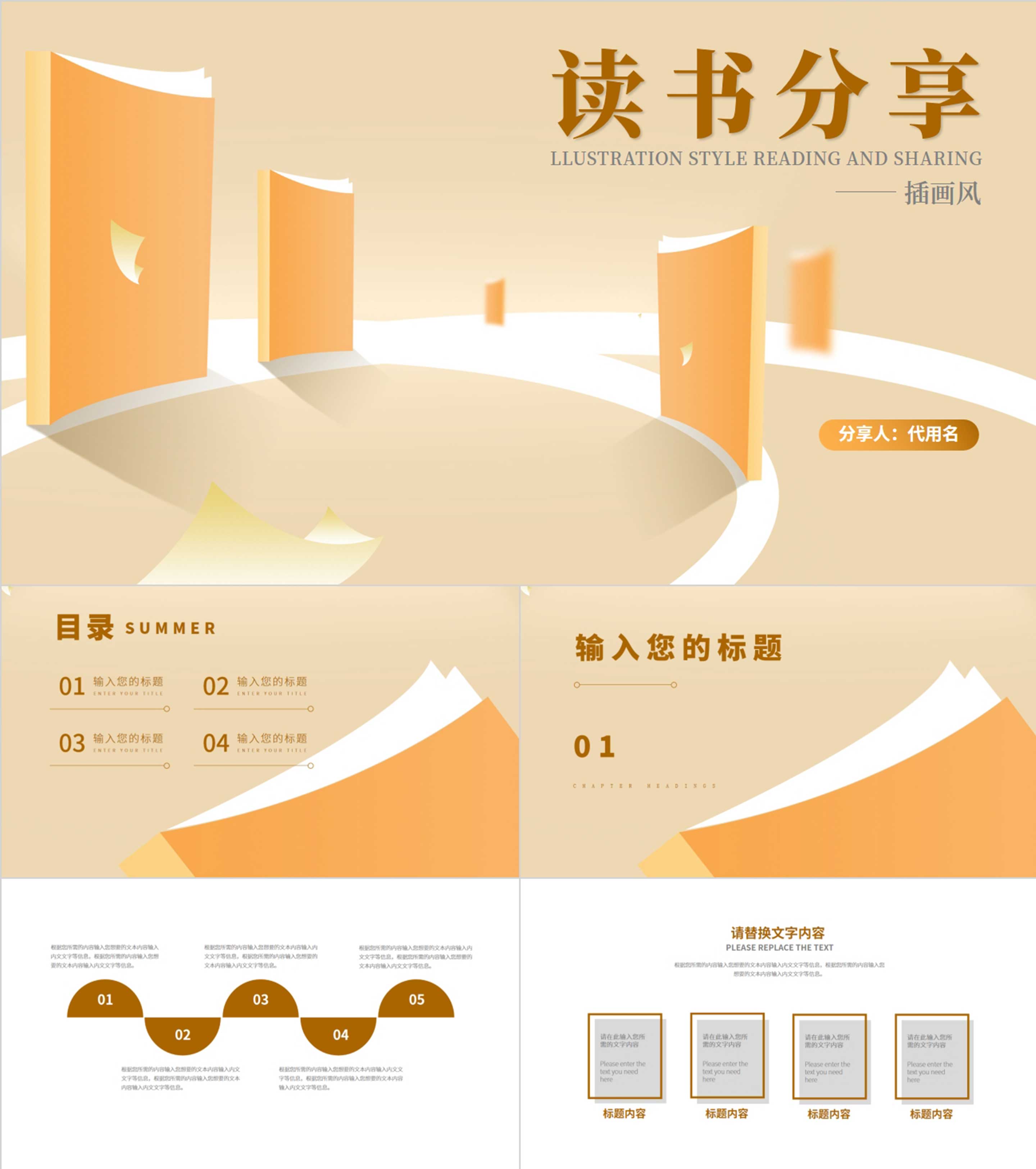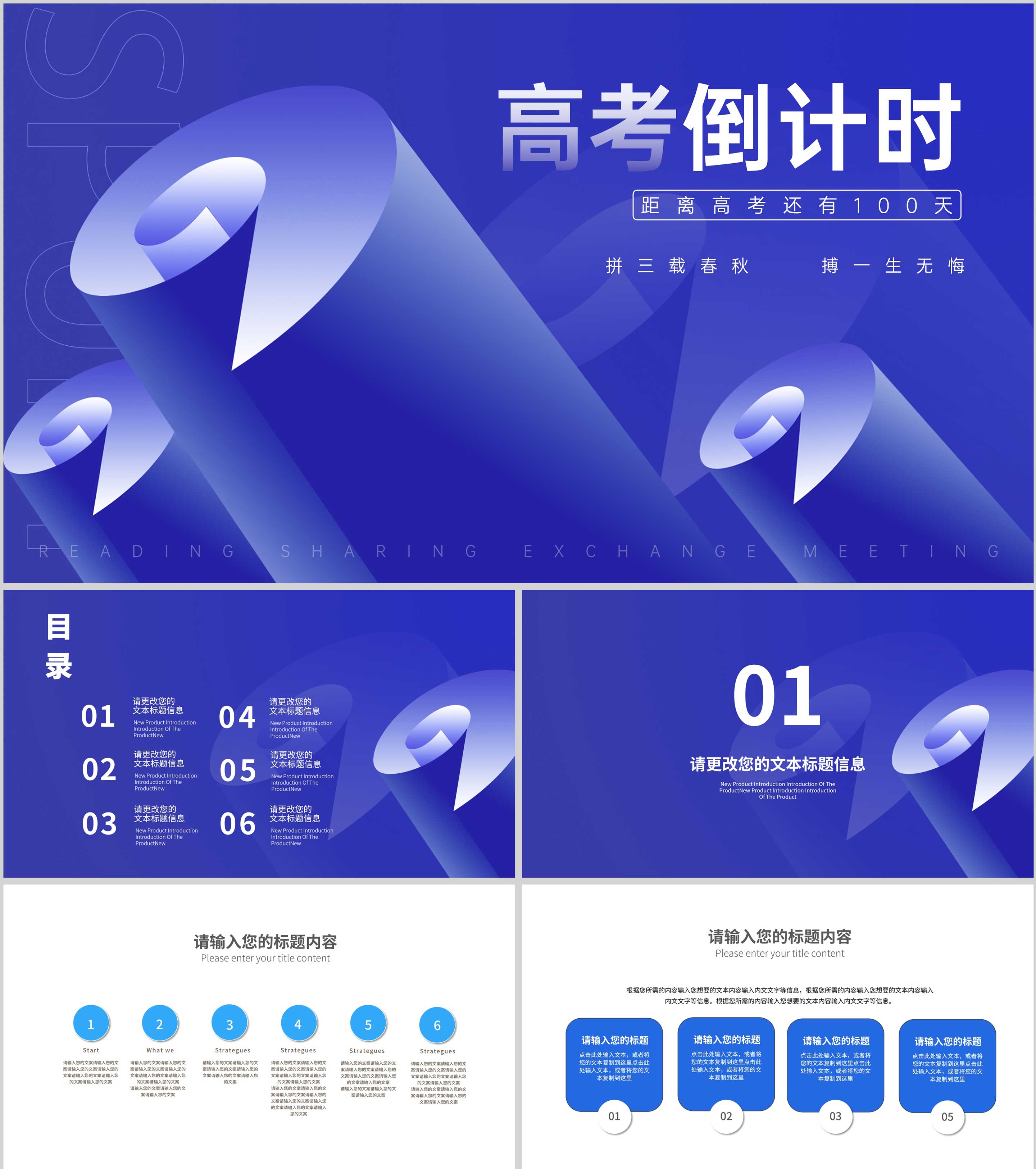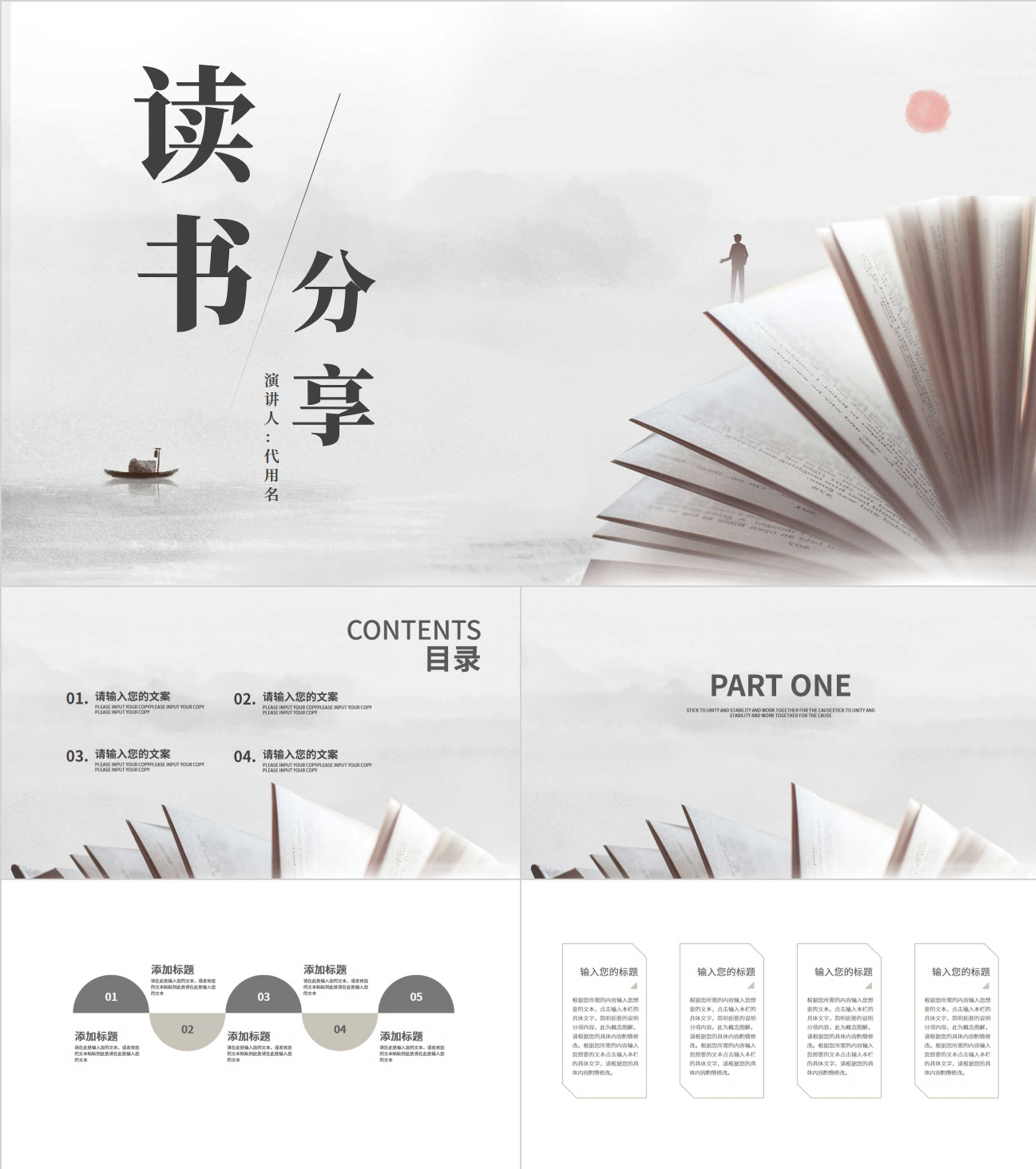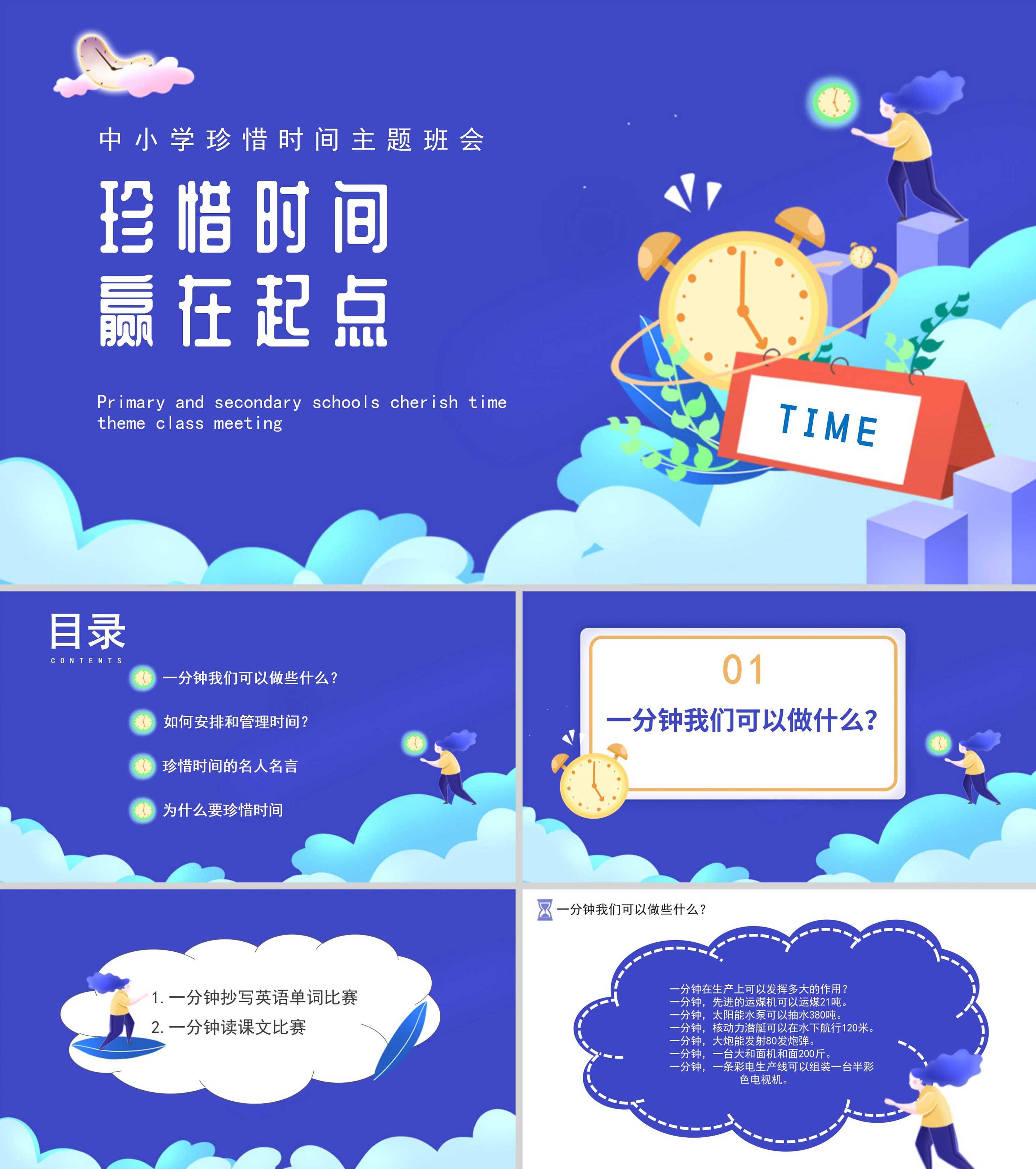 深蓝卡通风渐变读书分享会汇报PPT模板