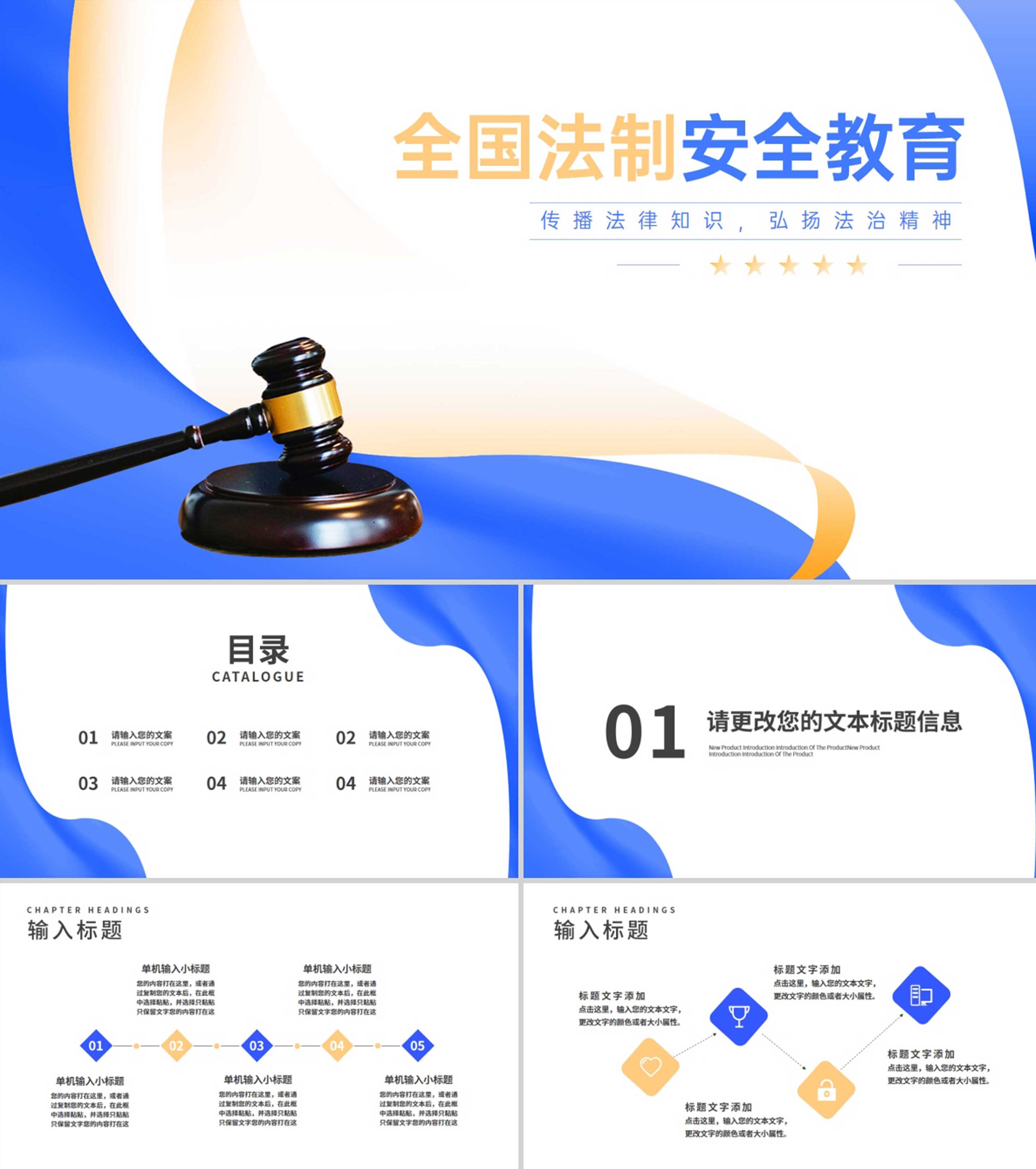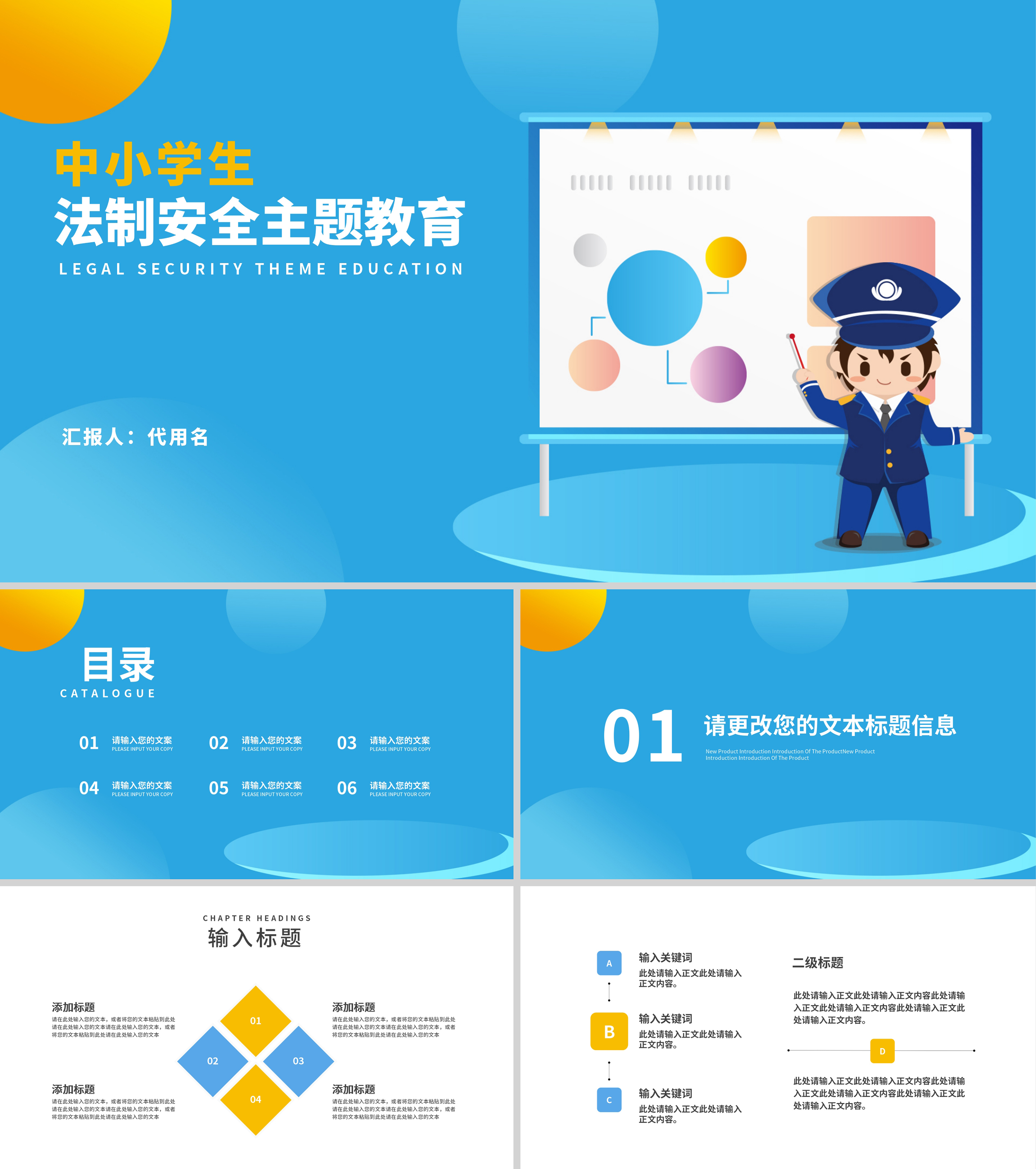 几何风蓝色中小学生法制安全主题教育PPT模板