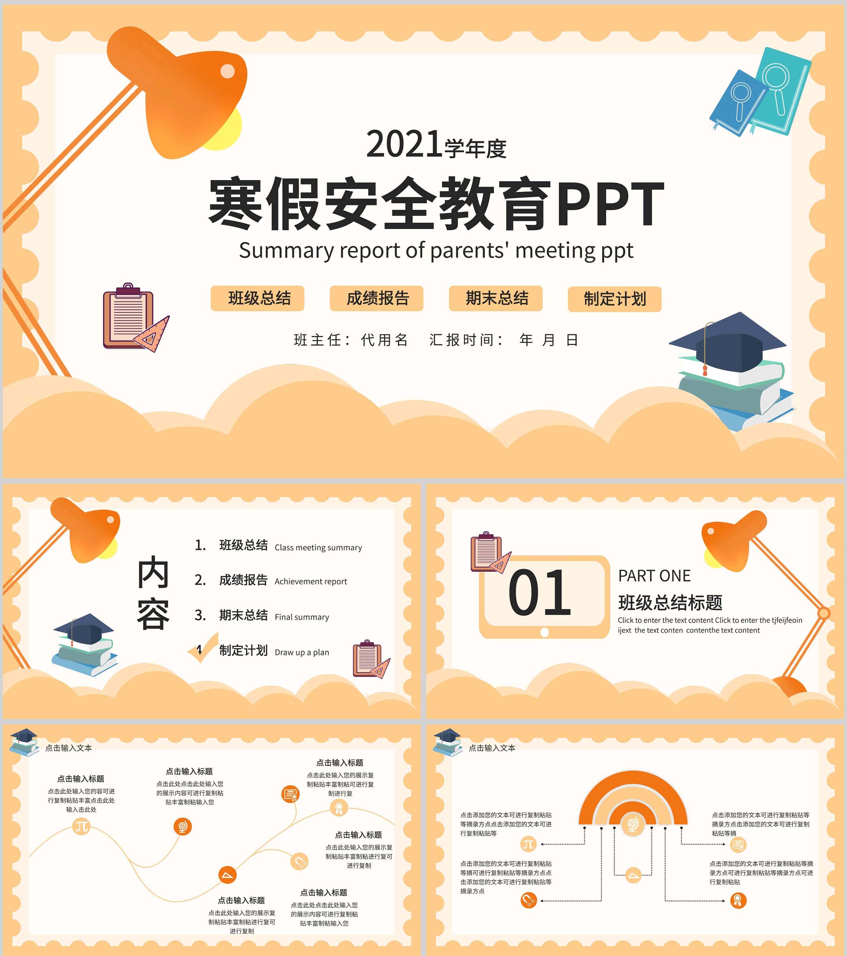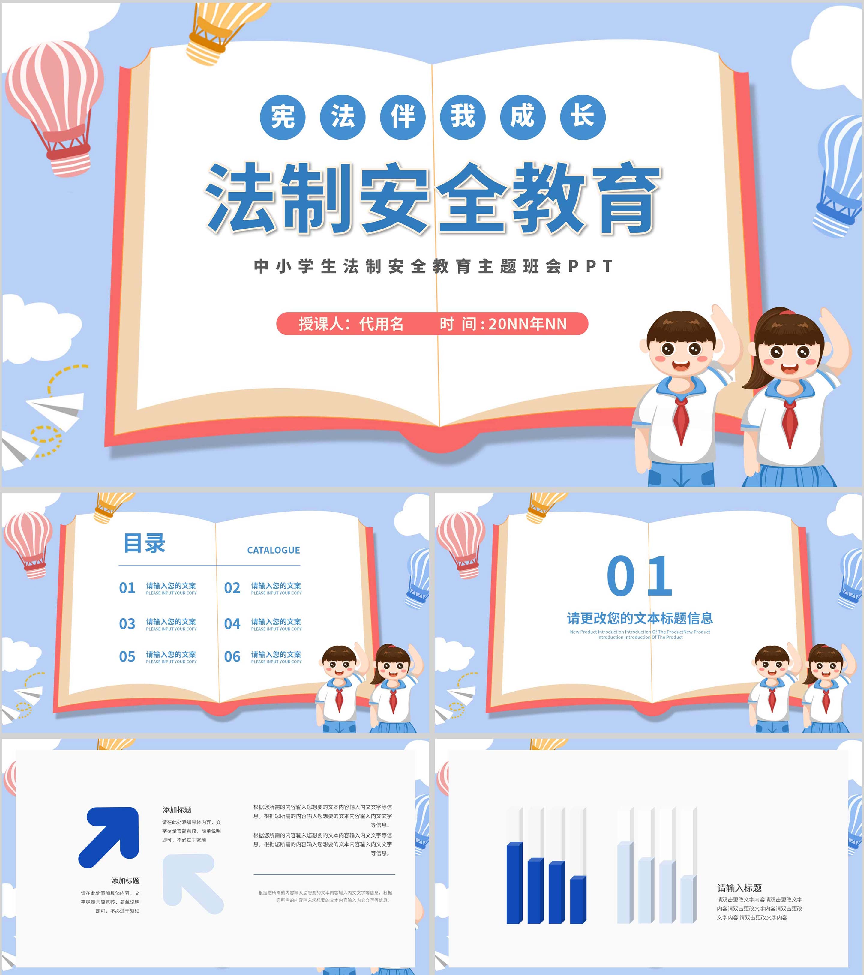 卡通风热气球中小学生法制安全教育班会PPT模板