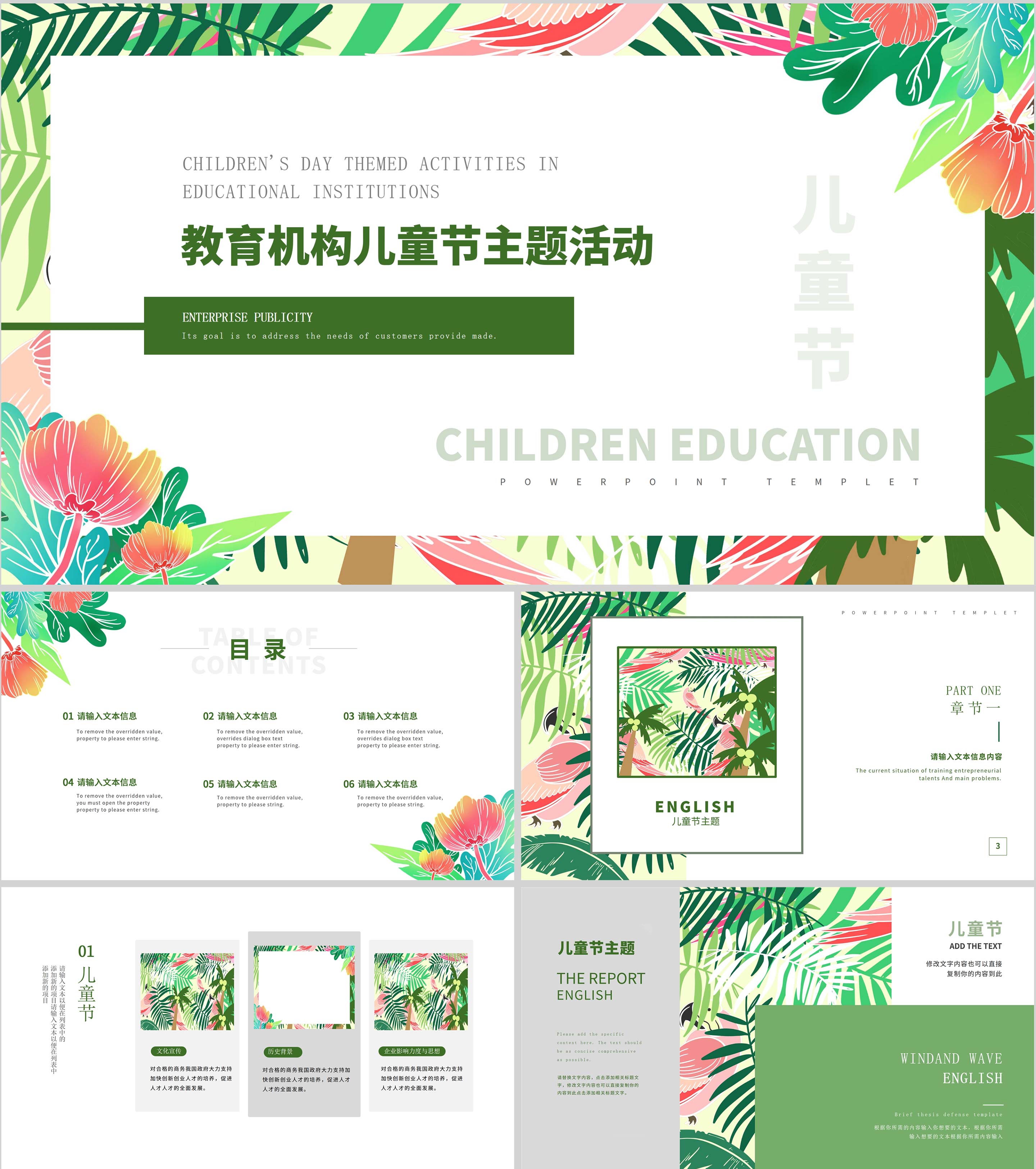 绿色手绘小清新教育机构儿童节主题活动PPT模板