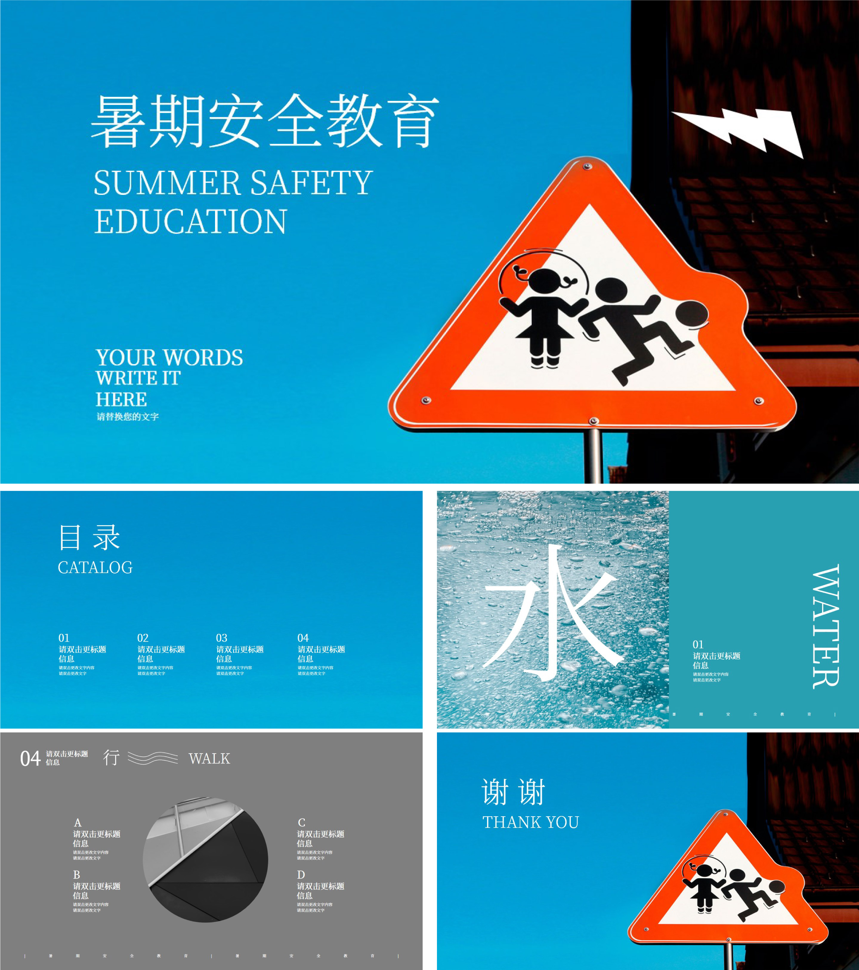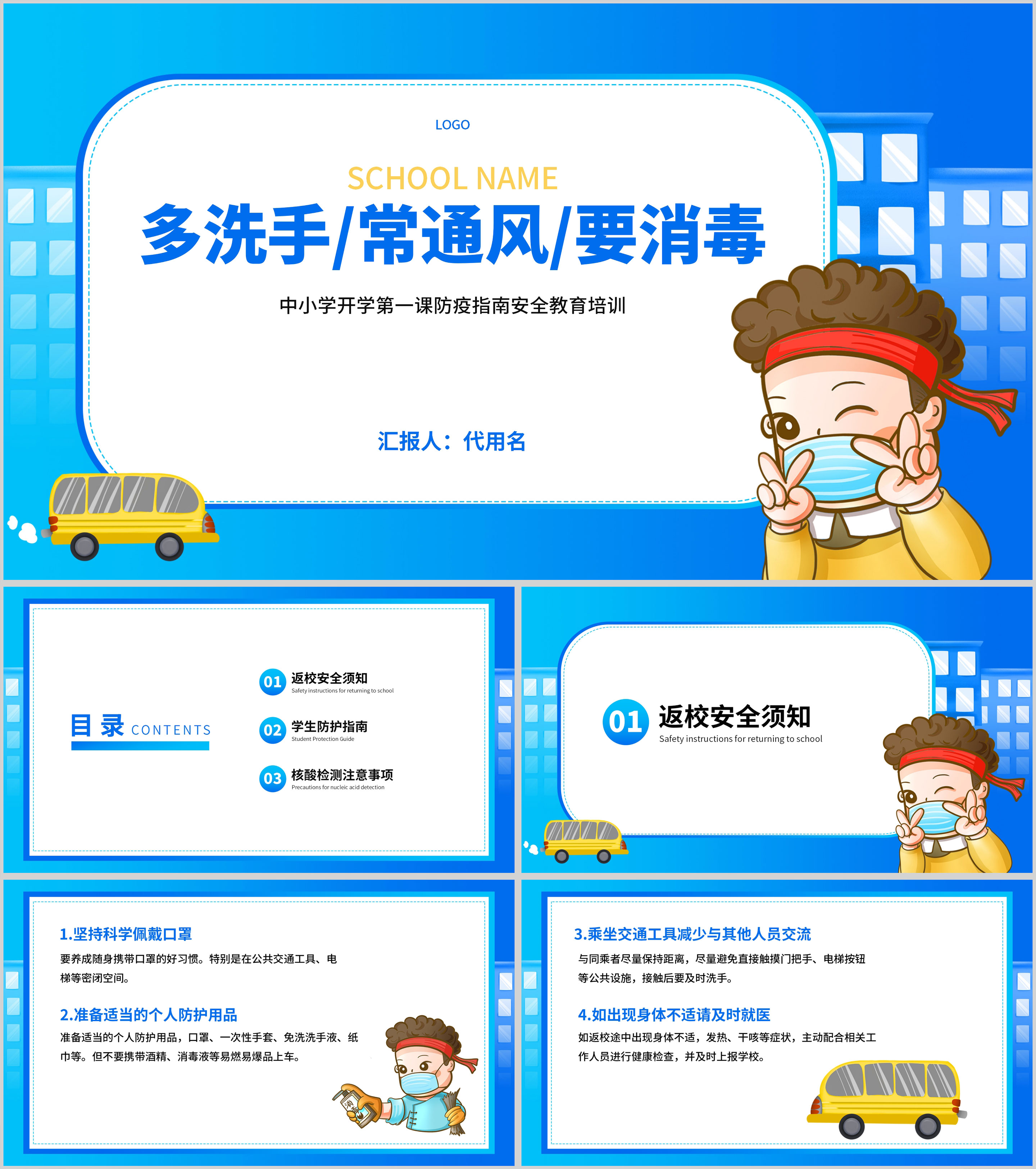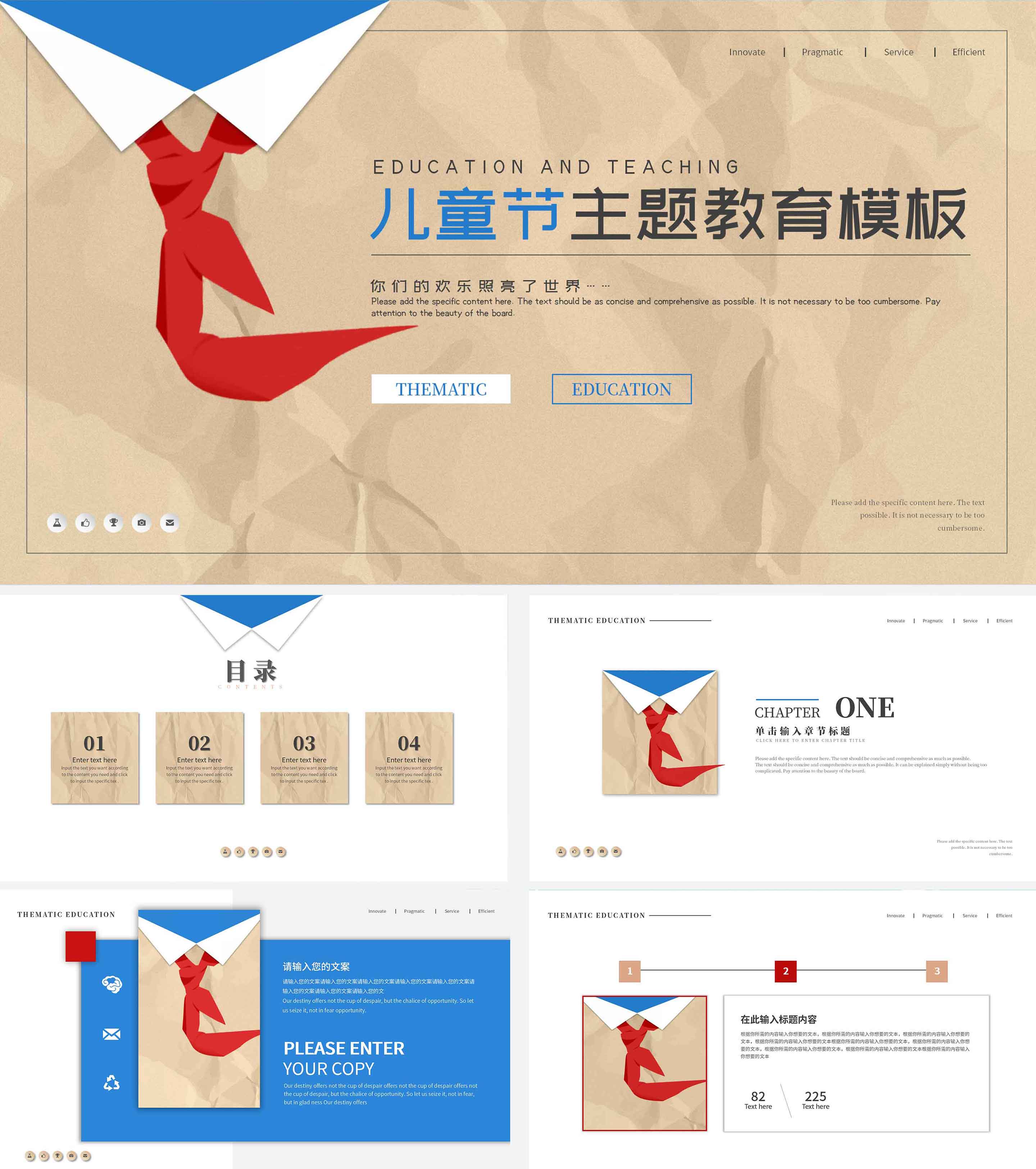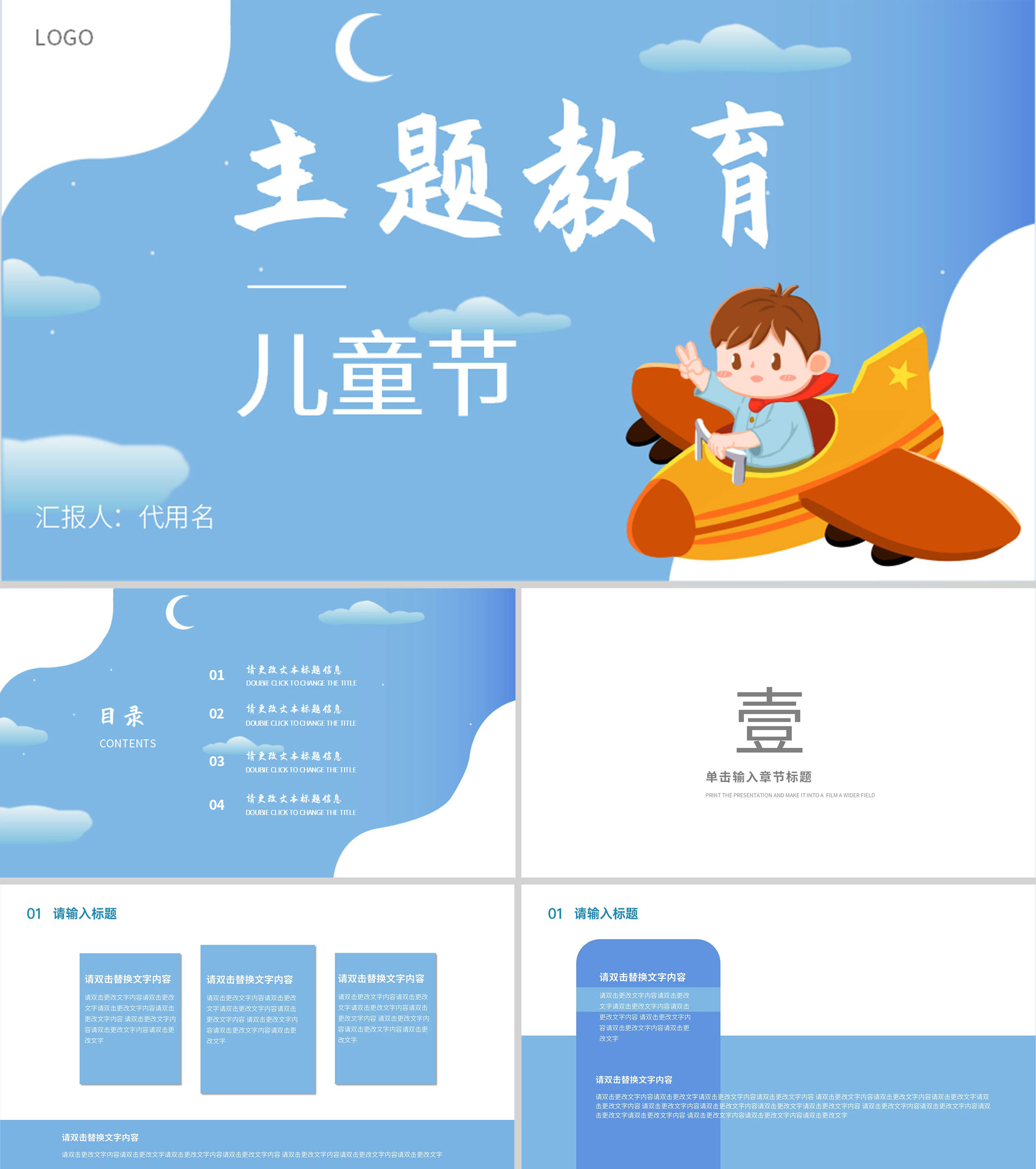 蓝黄拼色卡通风儿童节快乐主题教育PPT模板