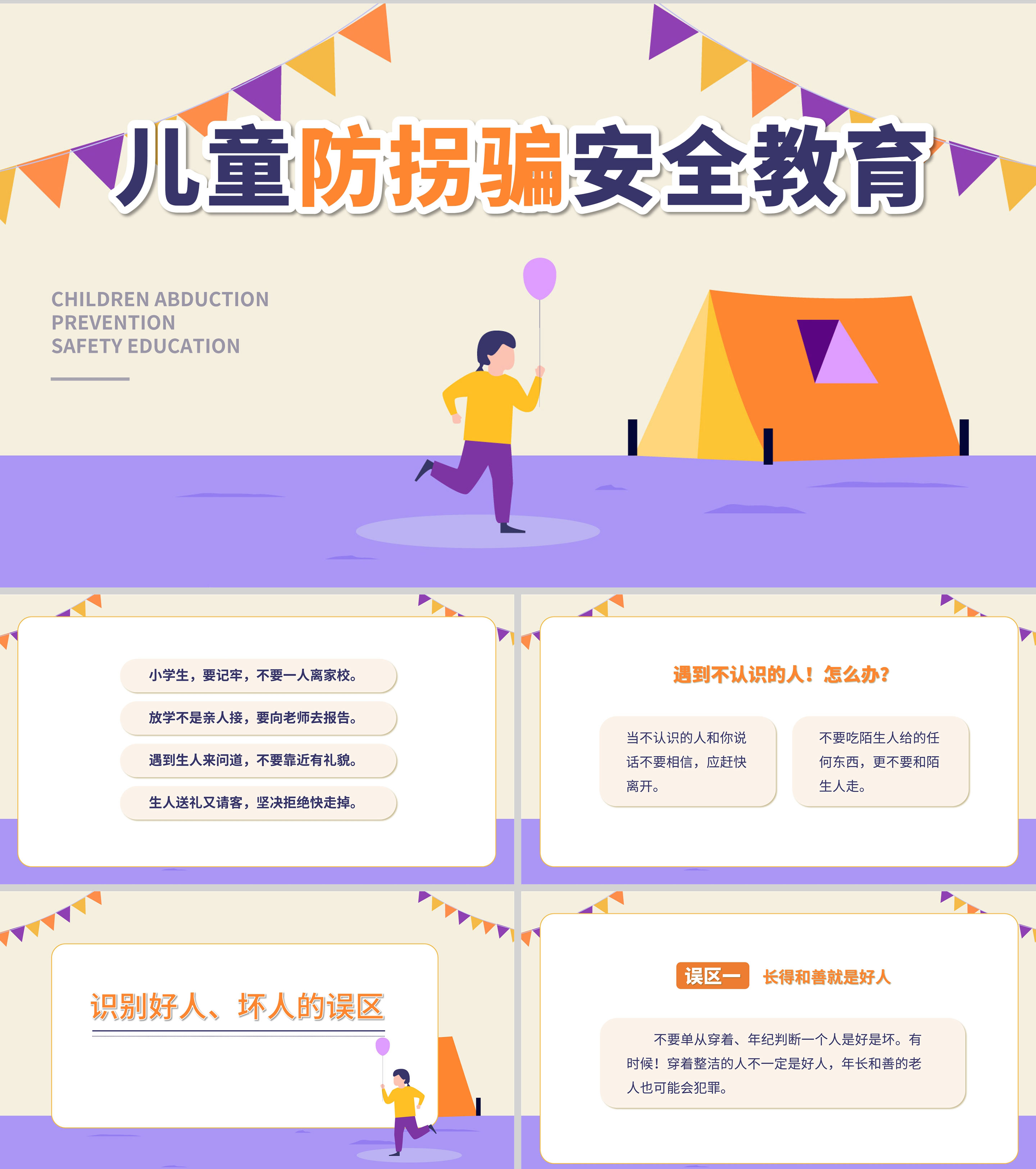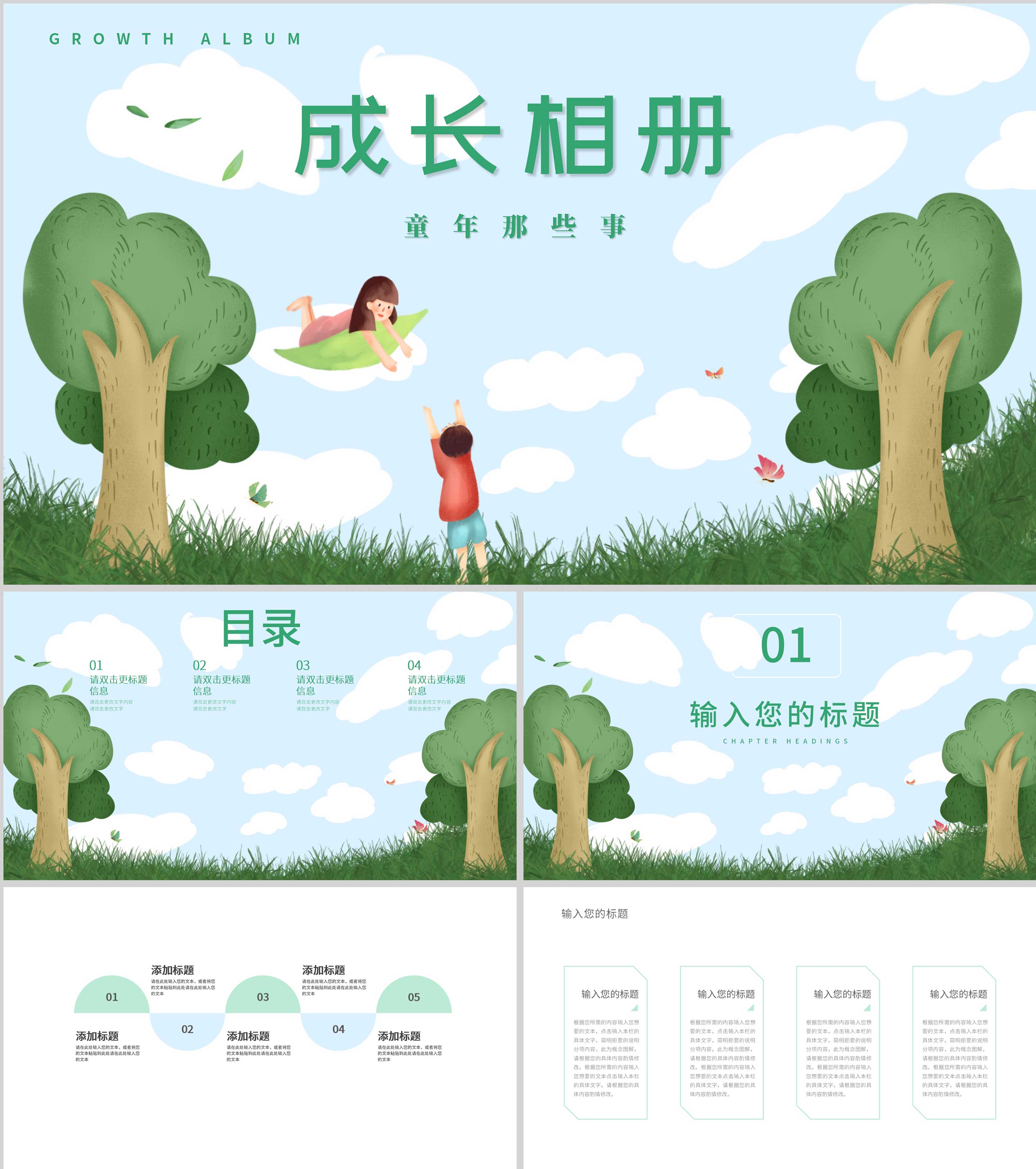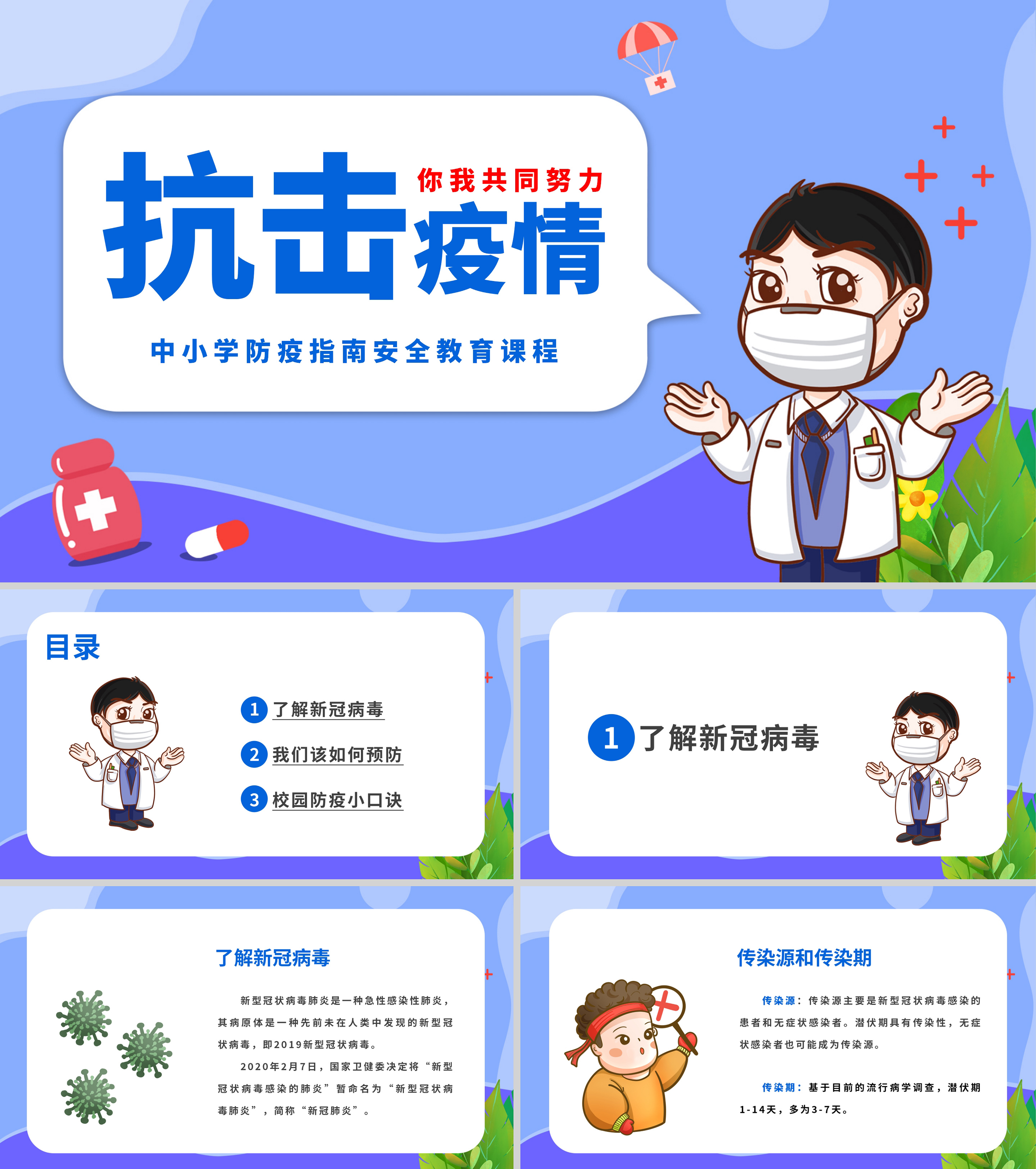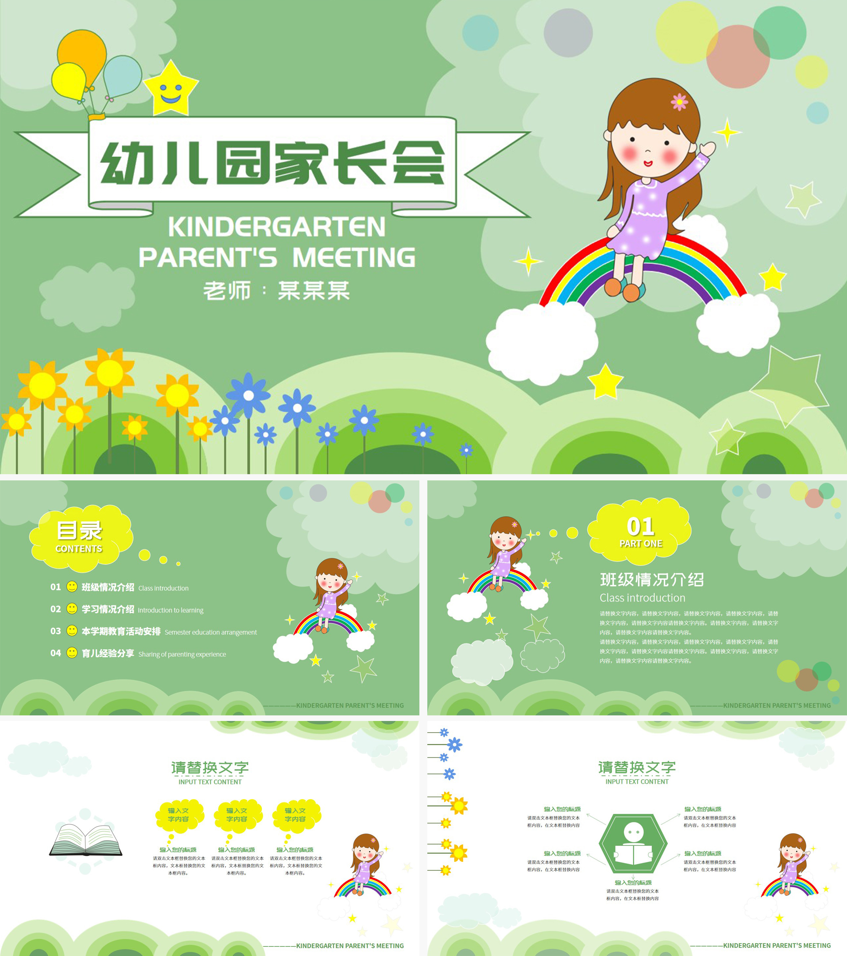 蓝黄拼色卡通风儿童节快乐主题教育PPT模板
