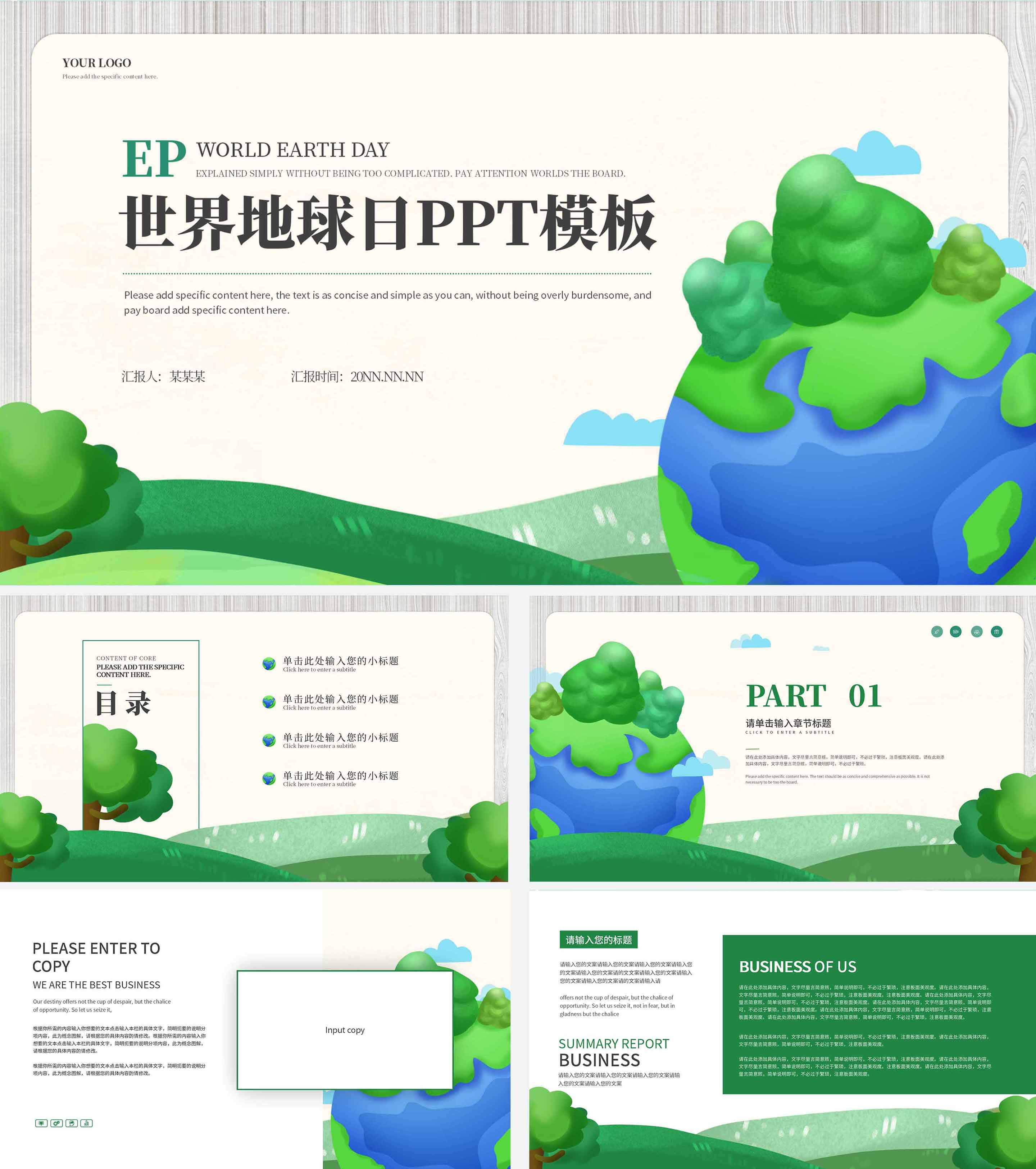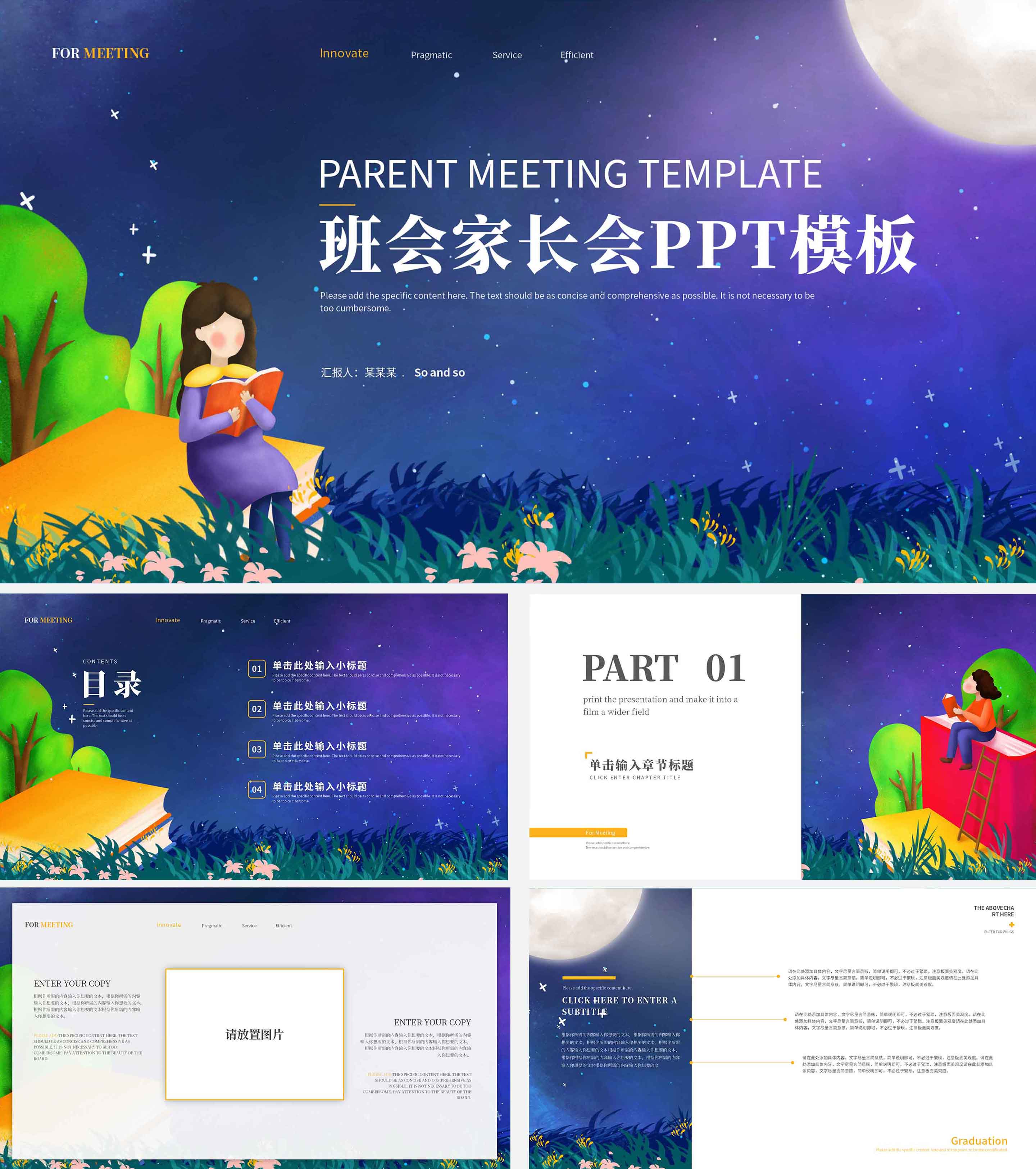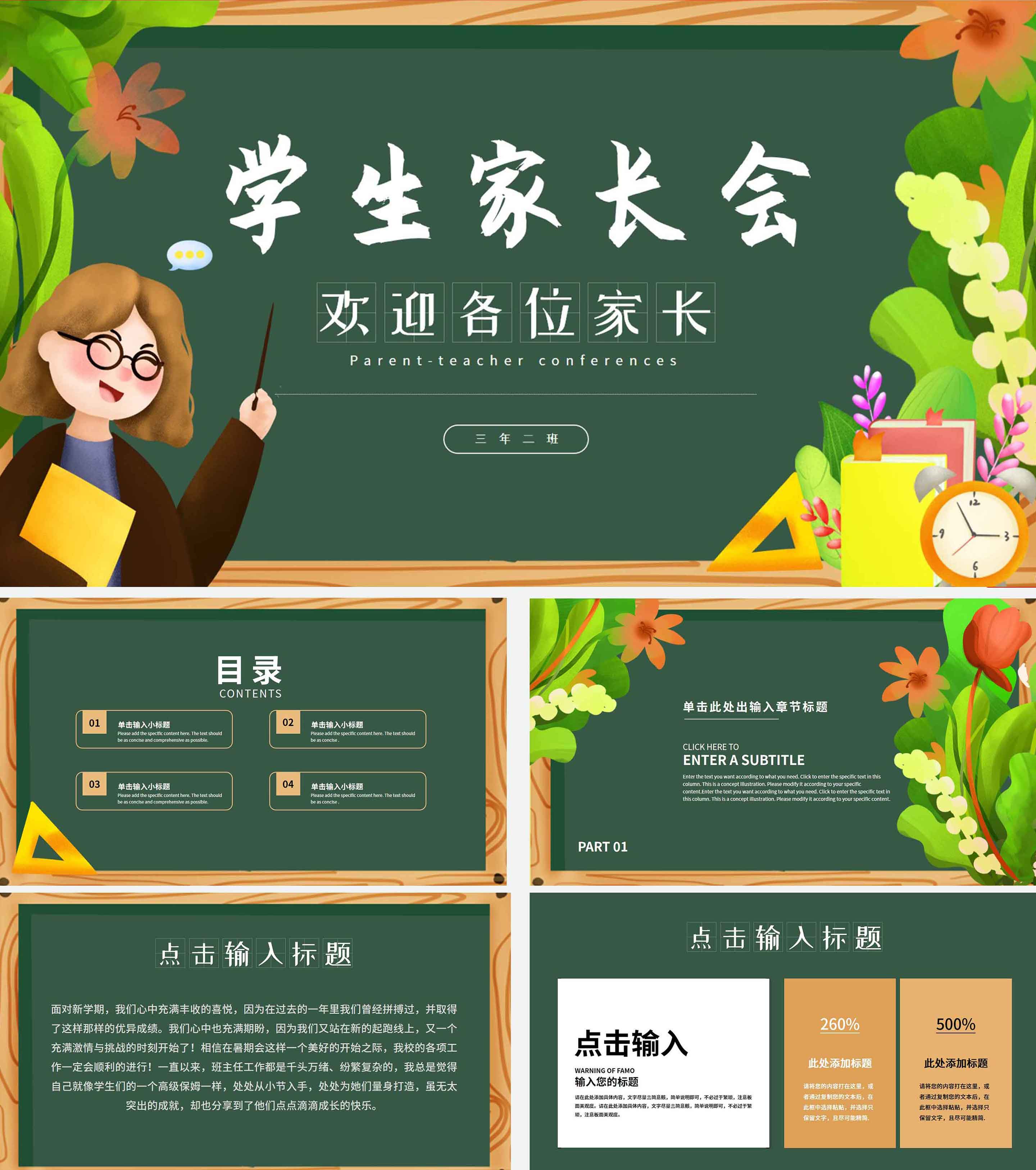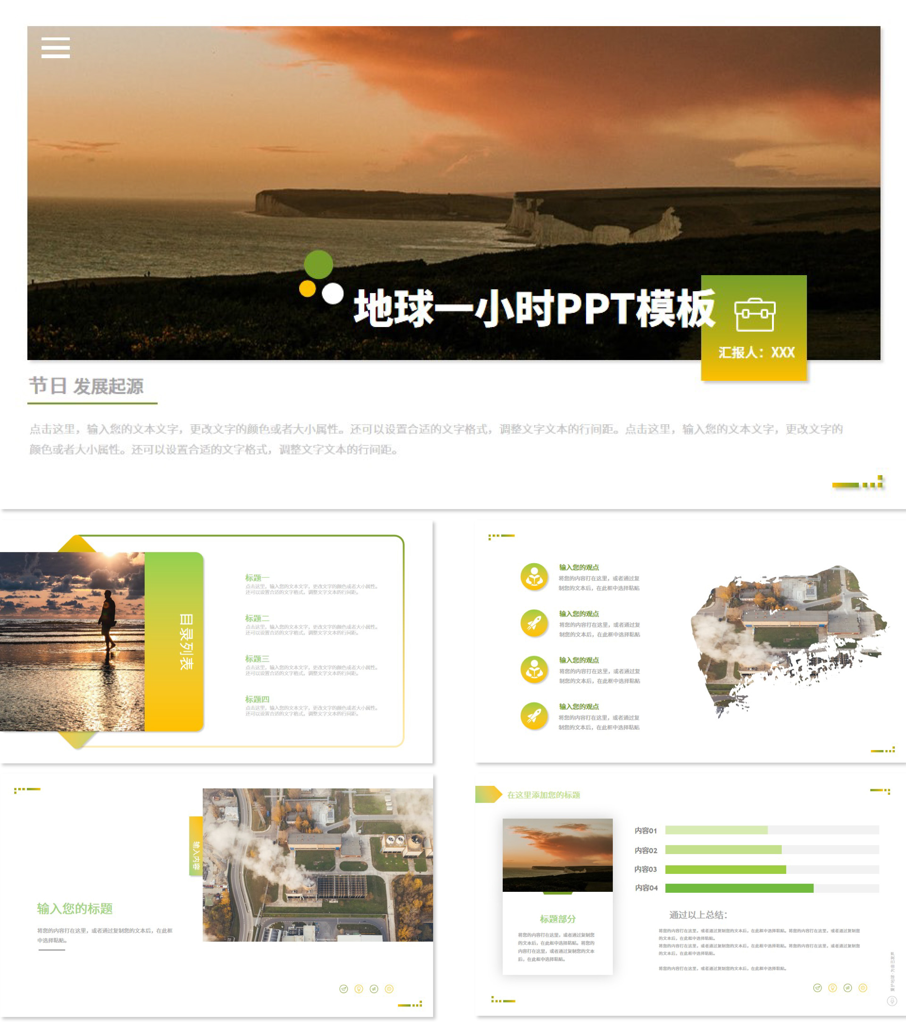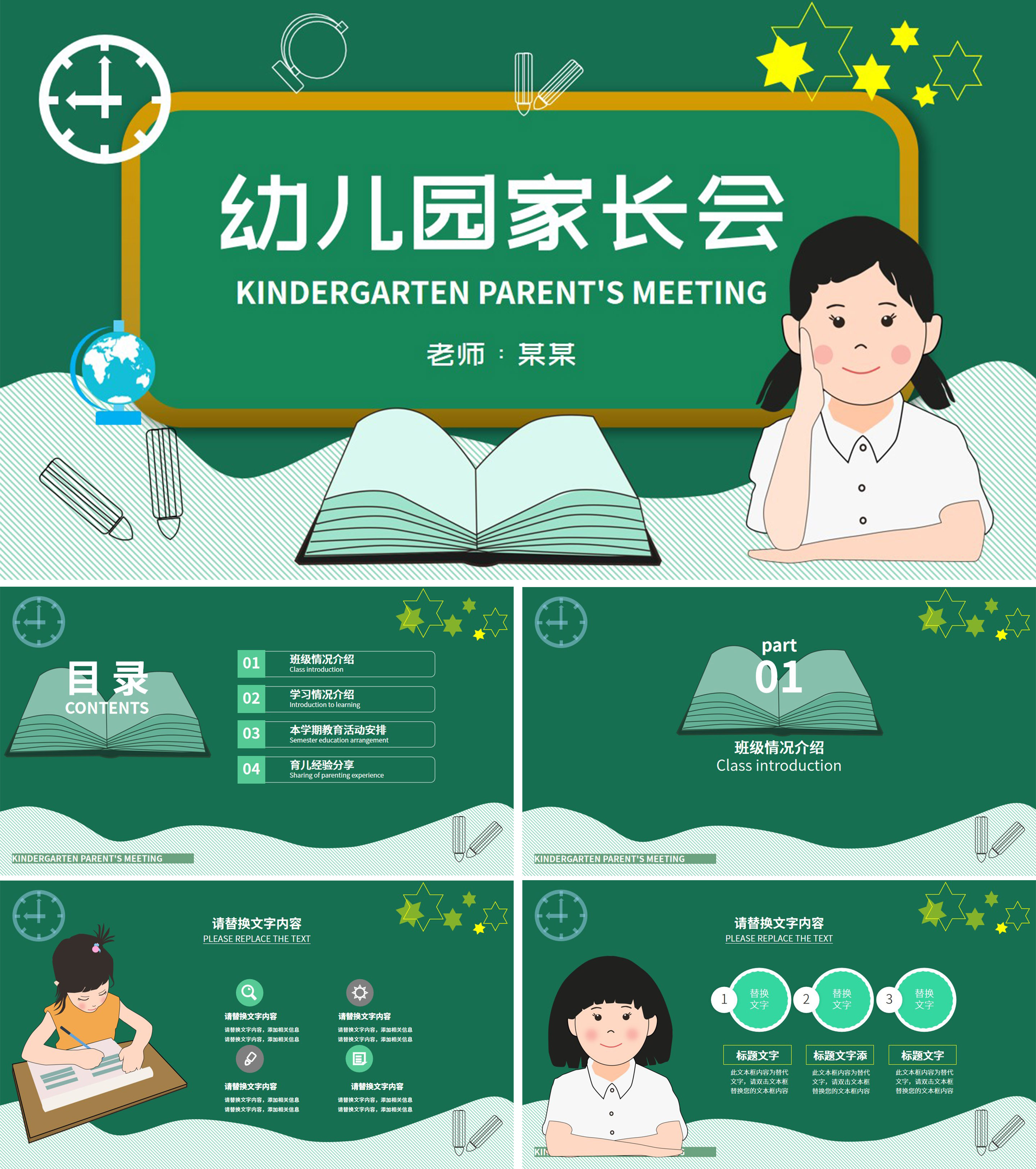 蓝黄拼色卡通风儿童节快乐主题教育PPT模板