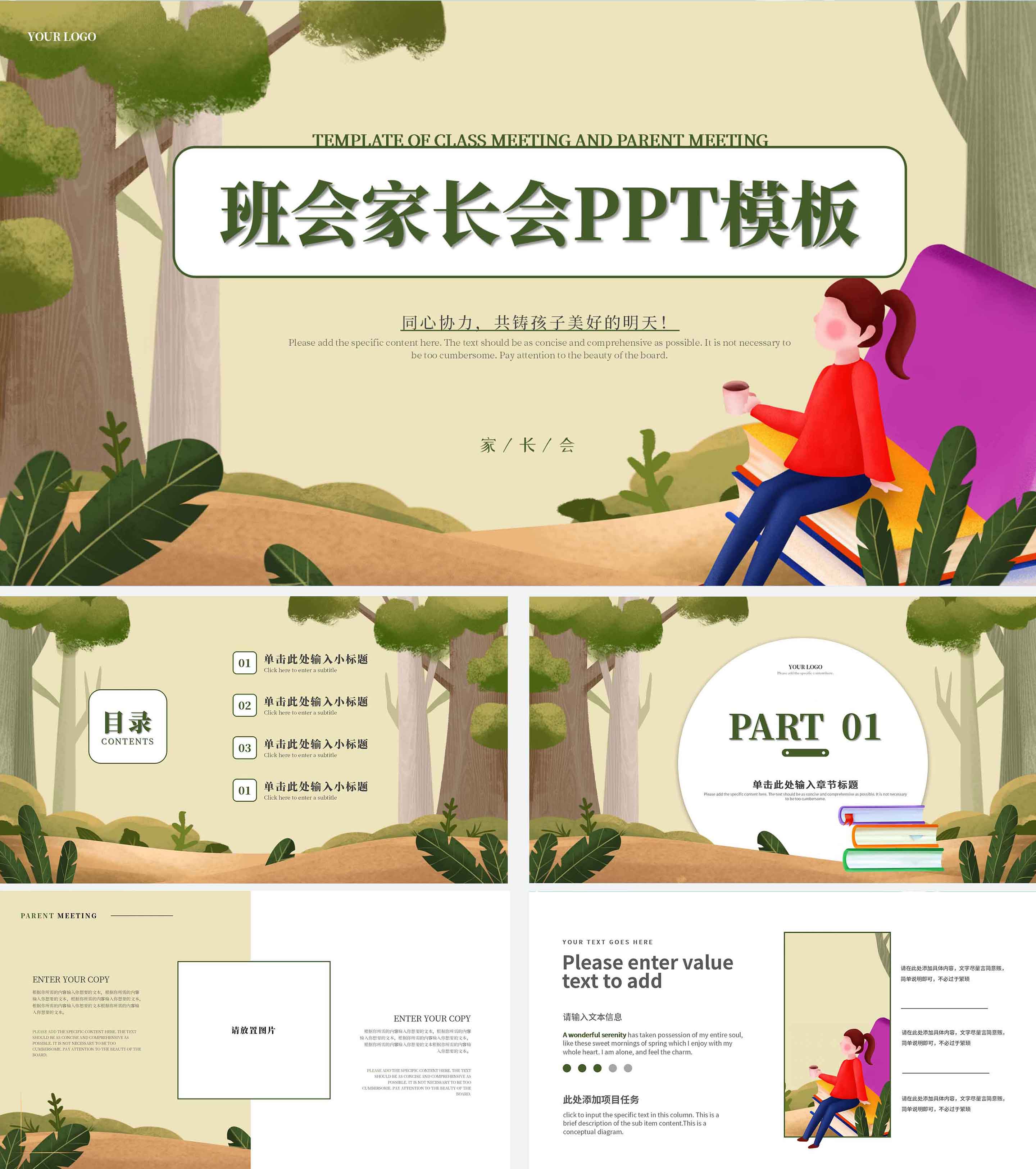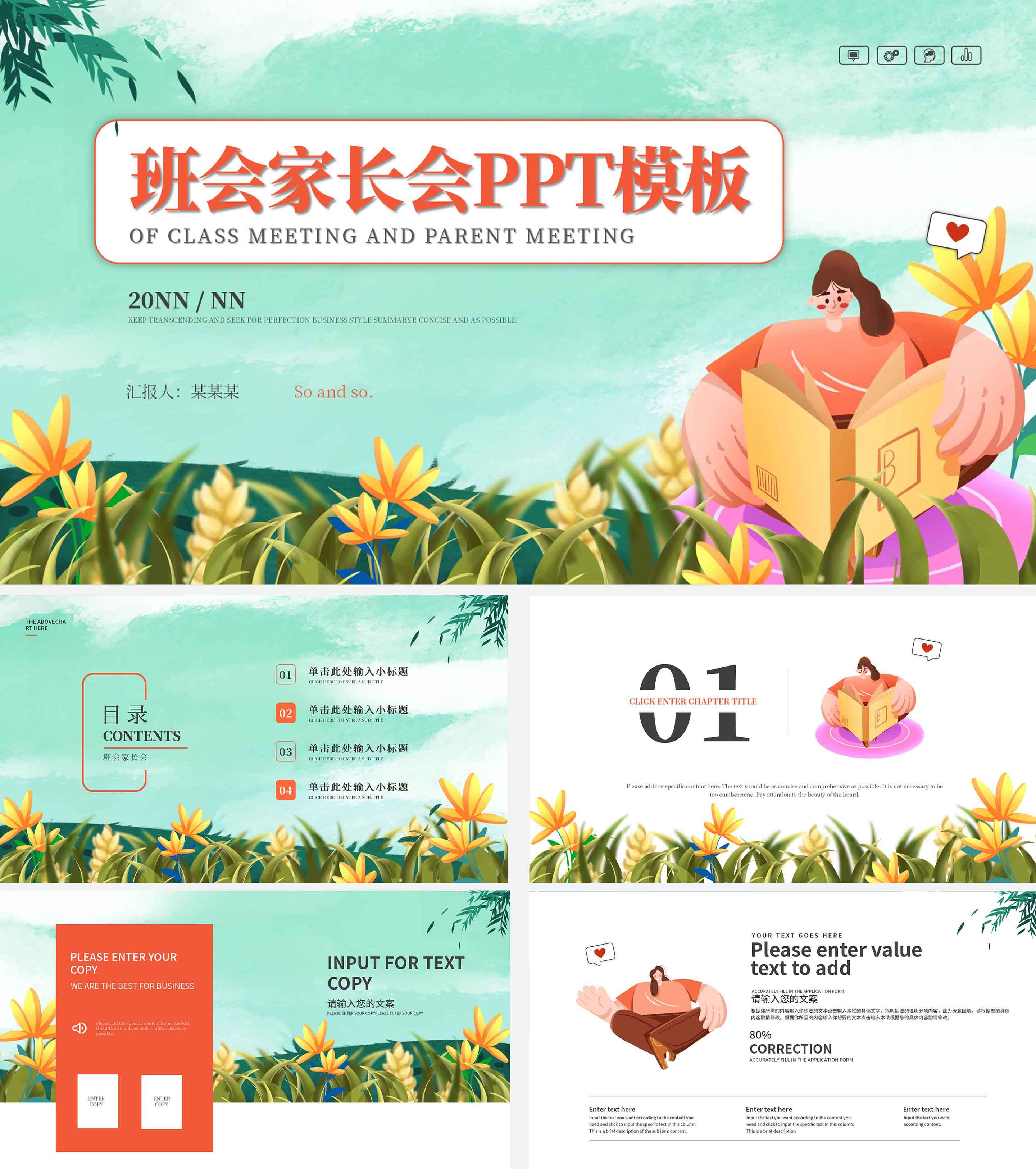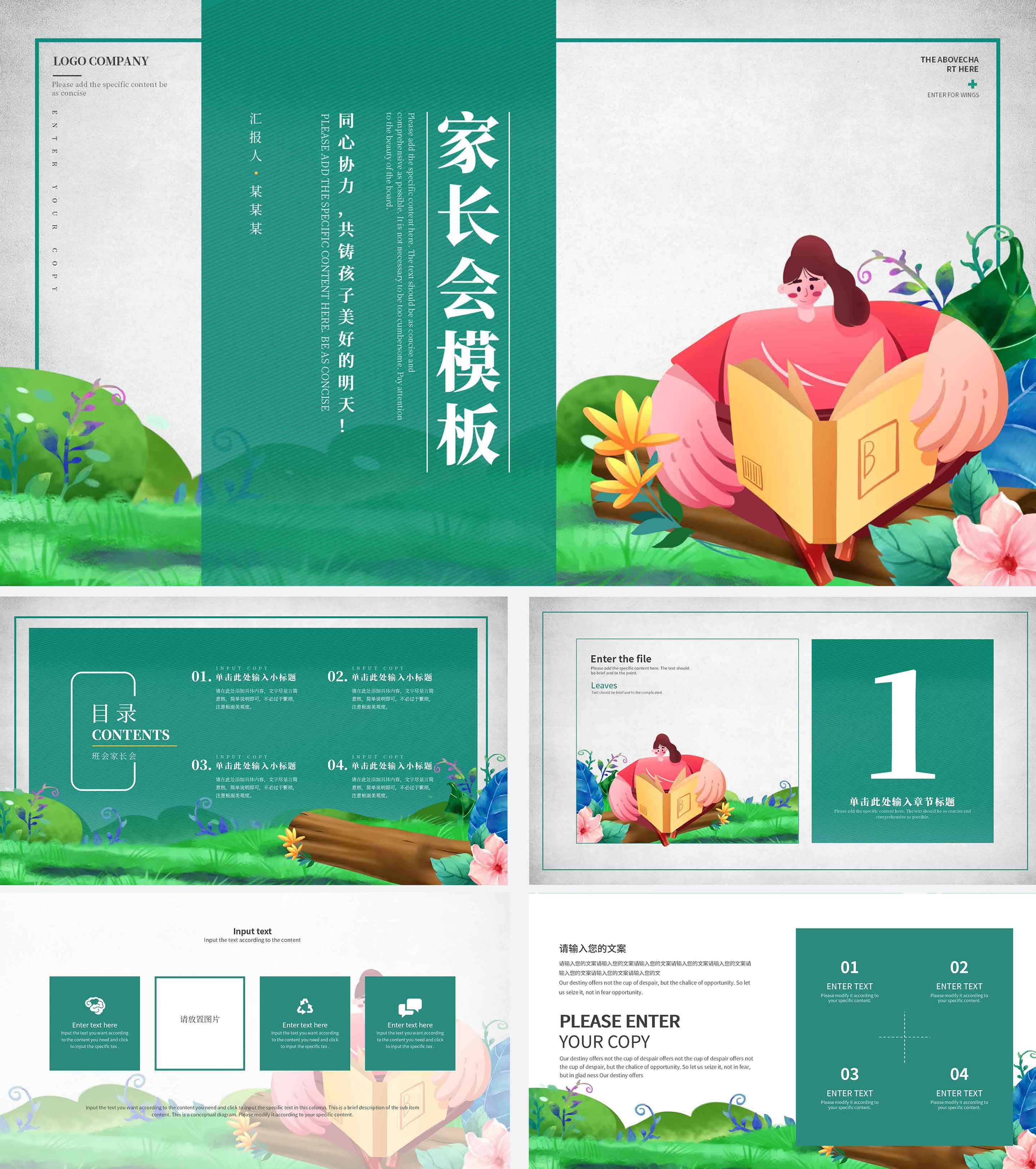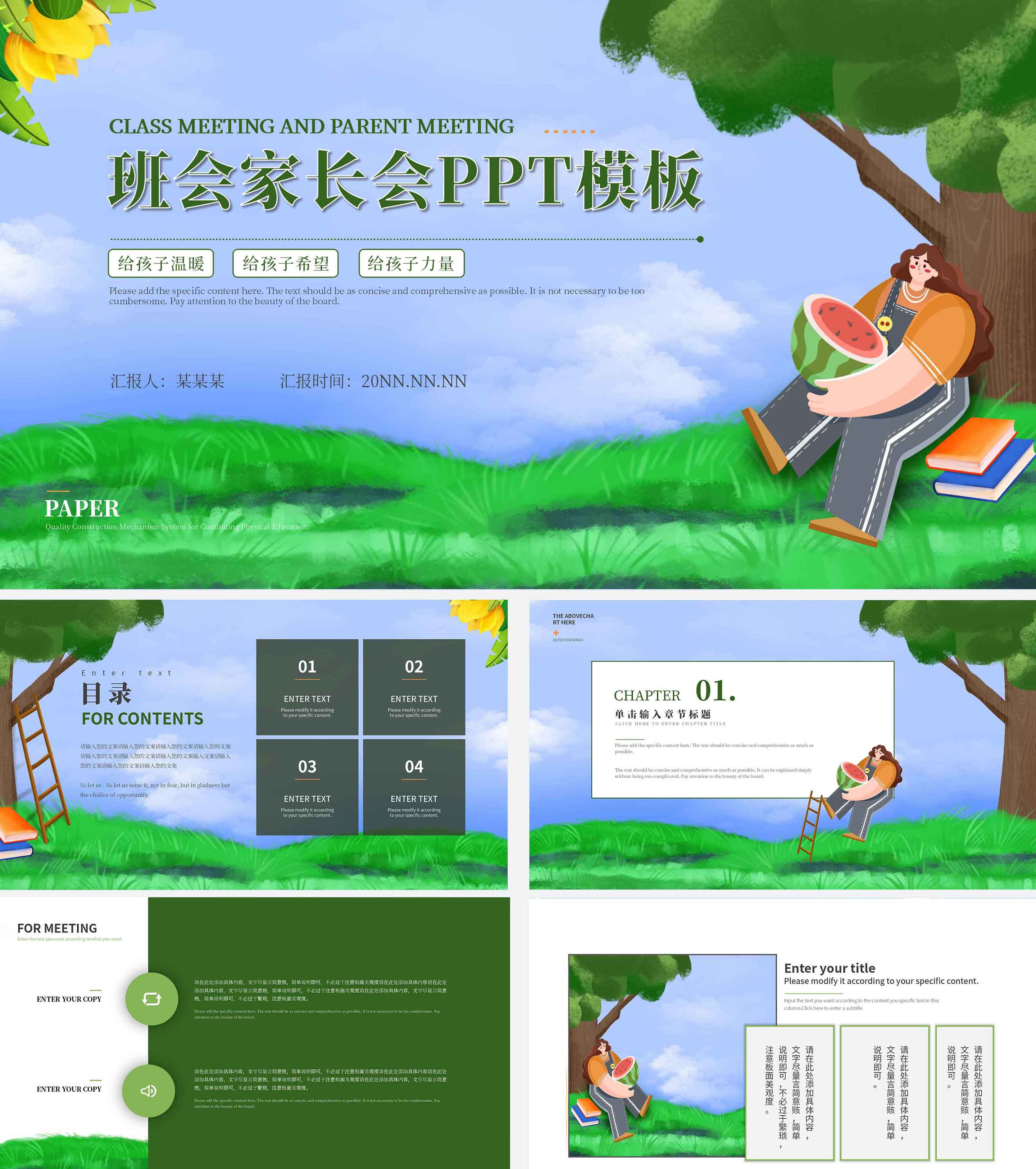 蓝黄拼色卡通风儿童节快乐主题教育PPT模板