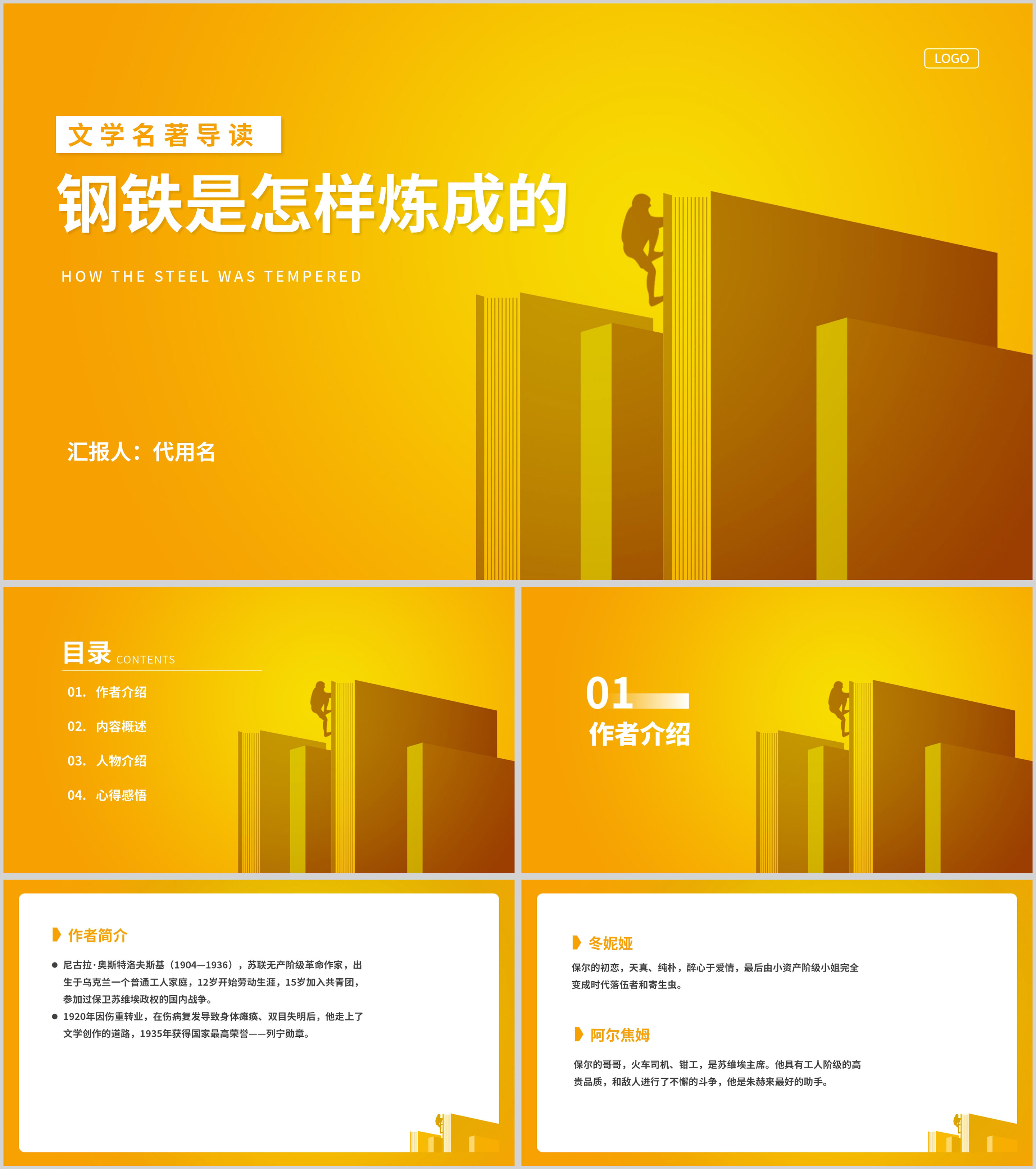 黄色简约风语文钢铁是怎样炼成的PPT模板