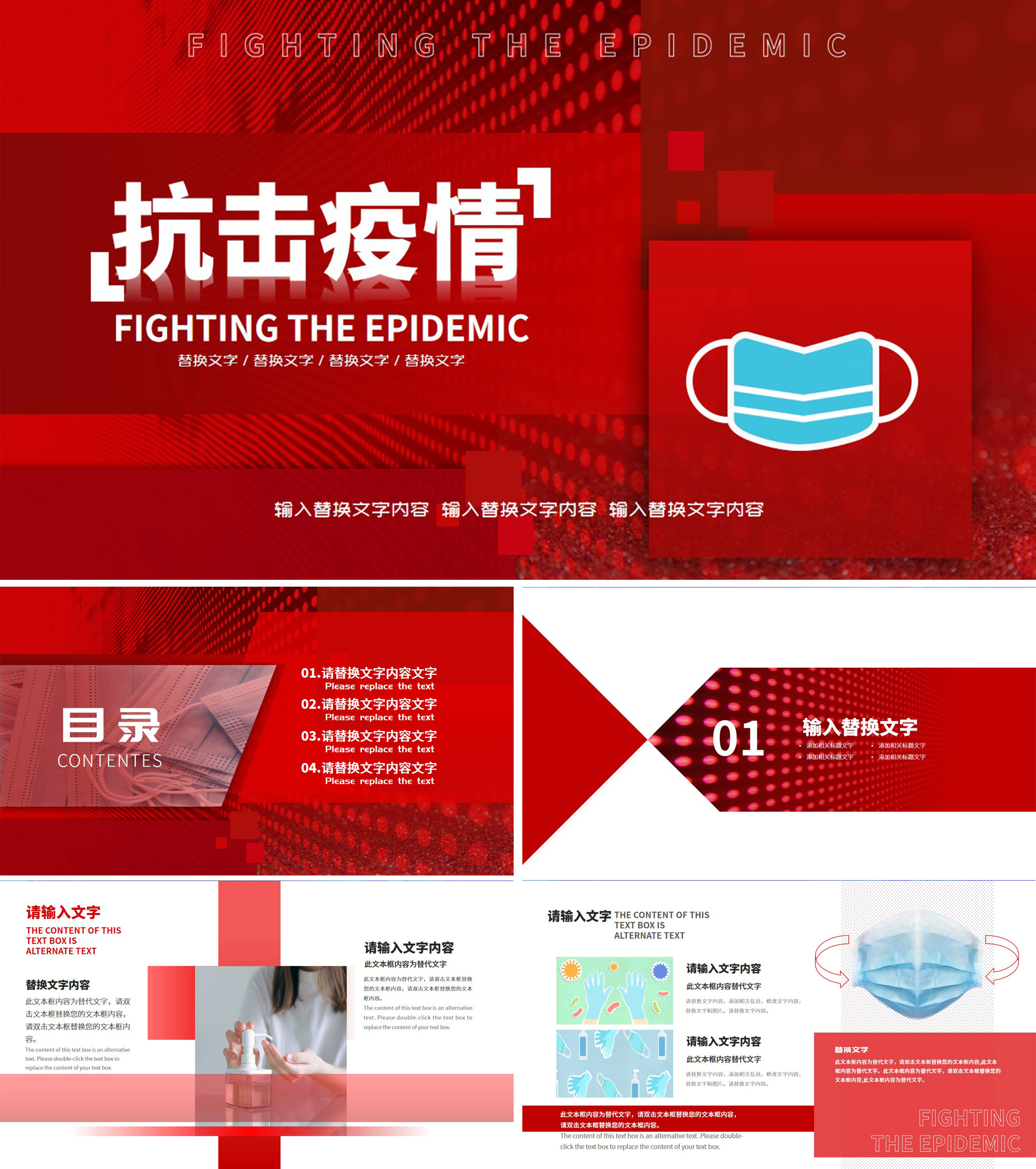 深红色抗击疫情节日PPT模板
