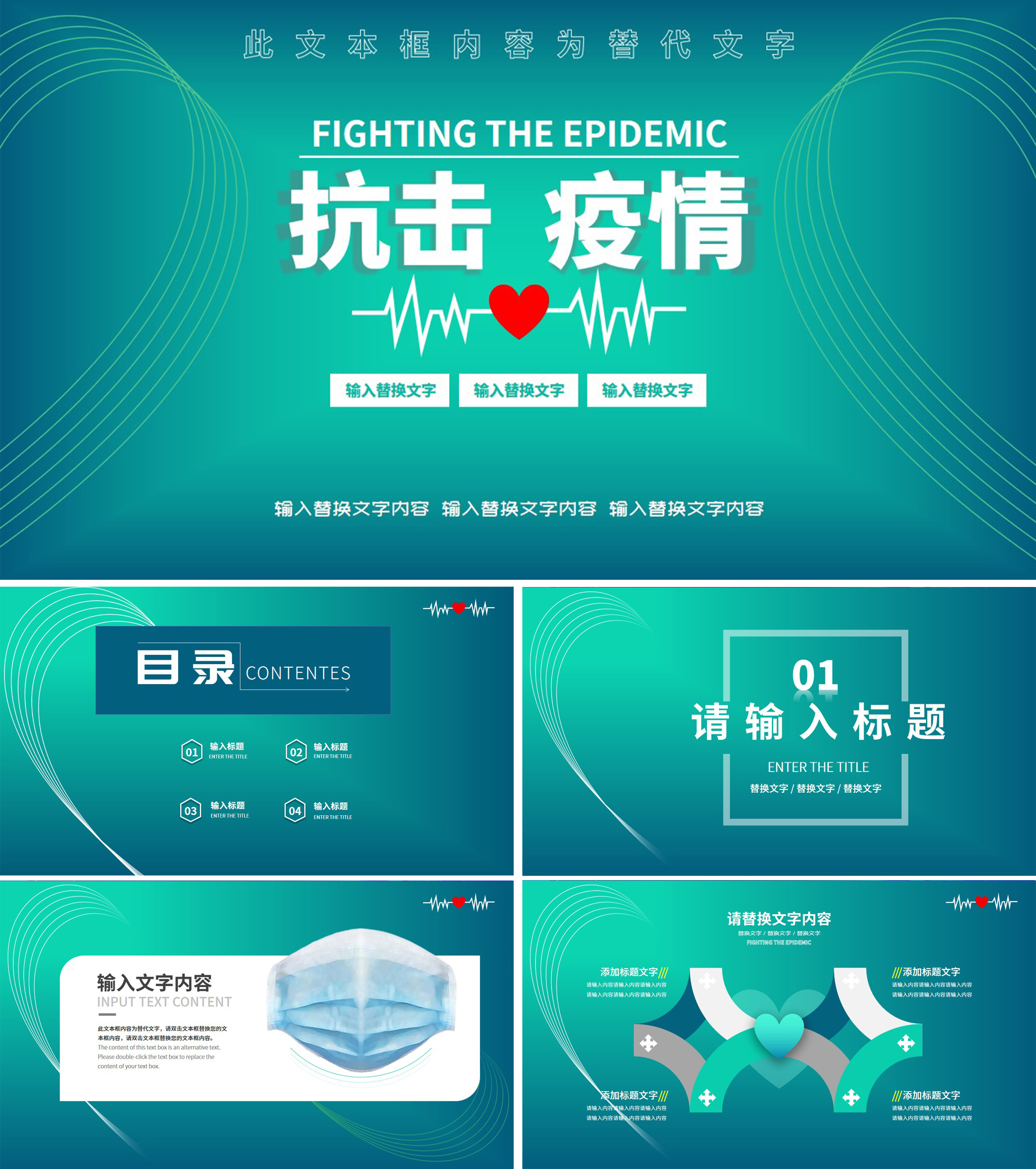 绿色抗击疫情ppt模版