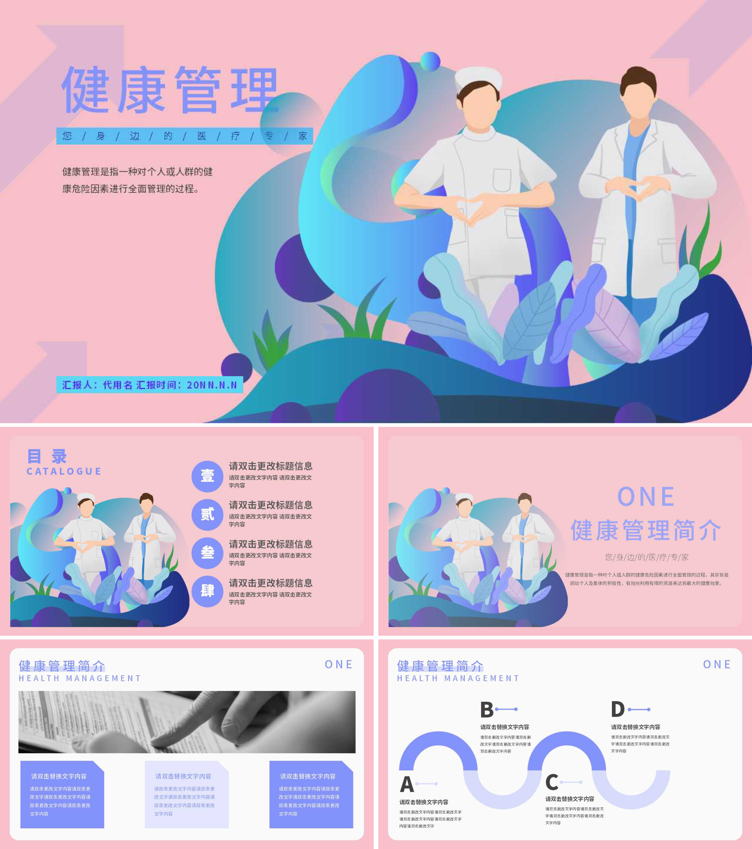 粉色插画风健康管理PPT模板