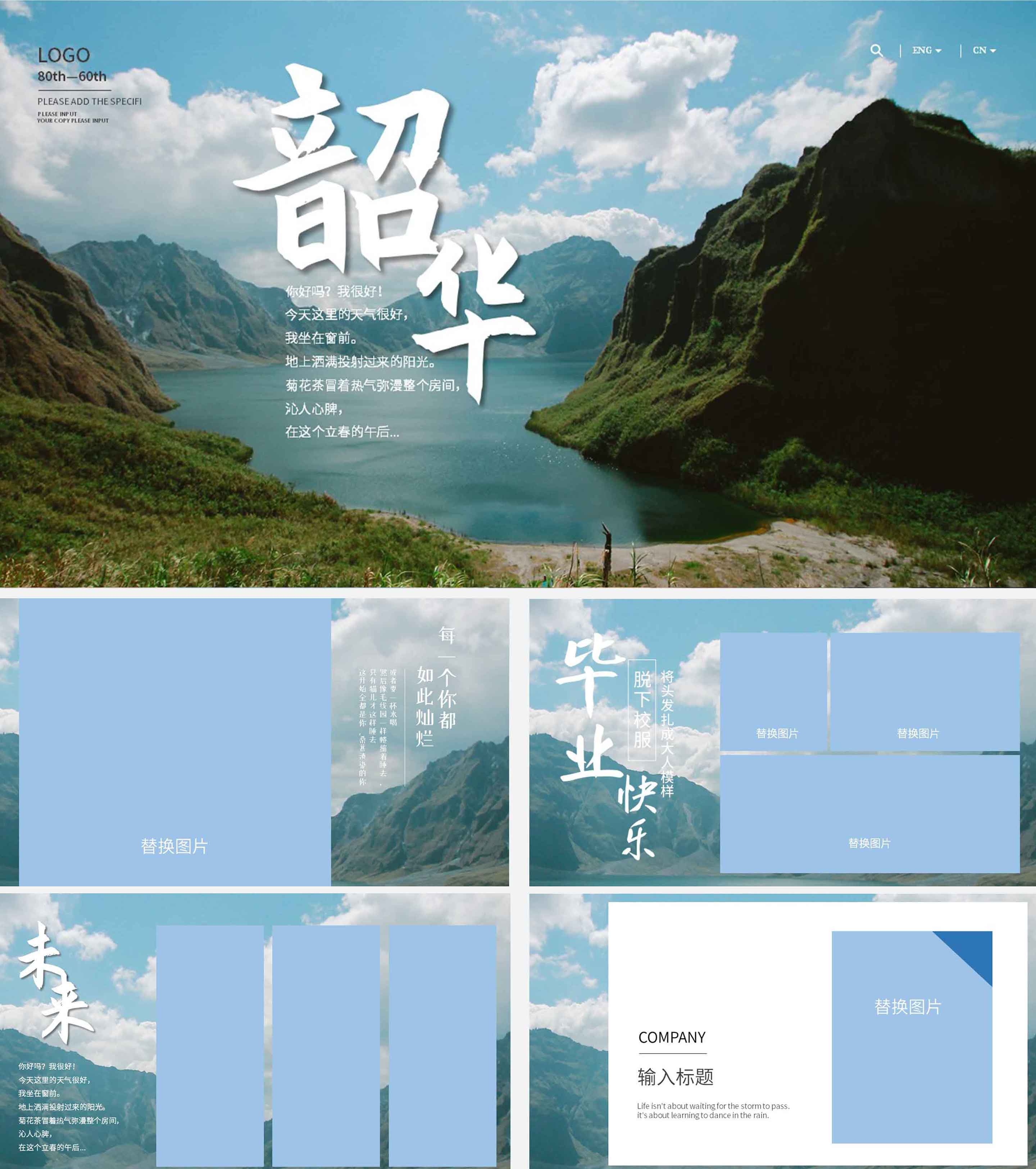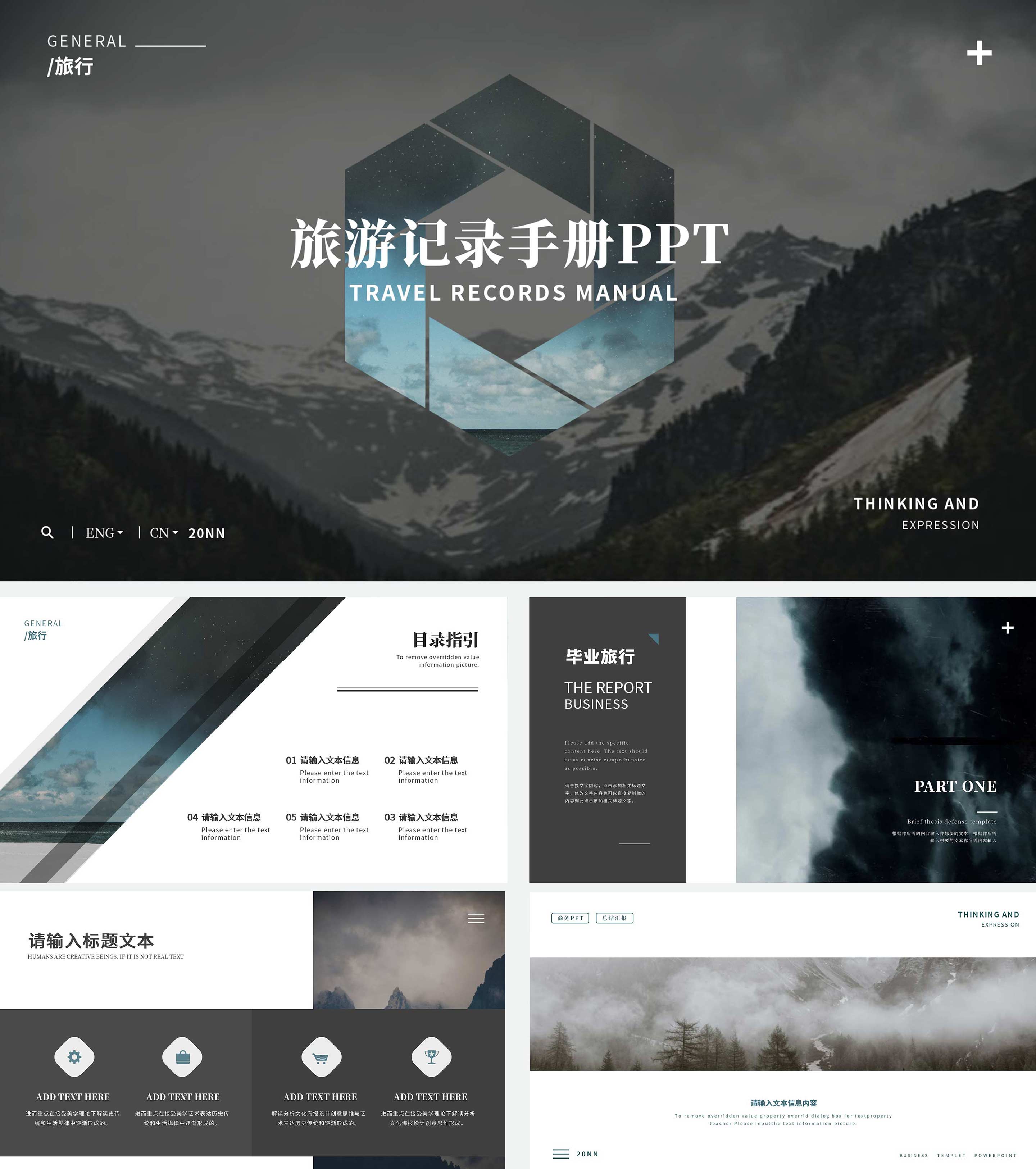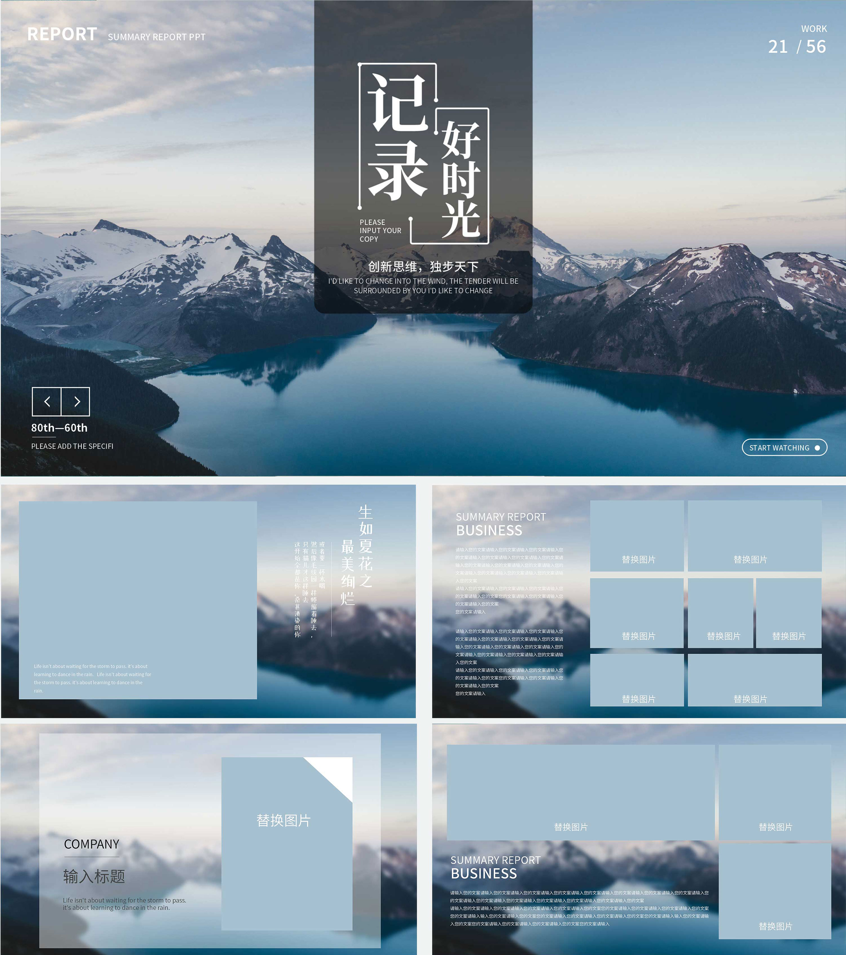 蓝色简约画册风旅行者日记旅行相册PPT模板