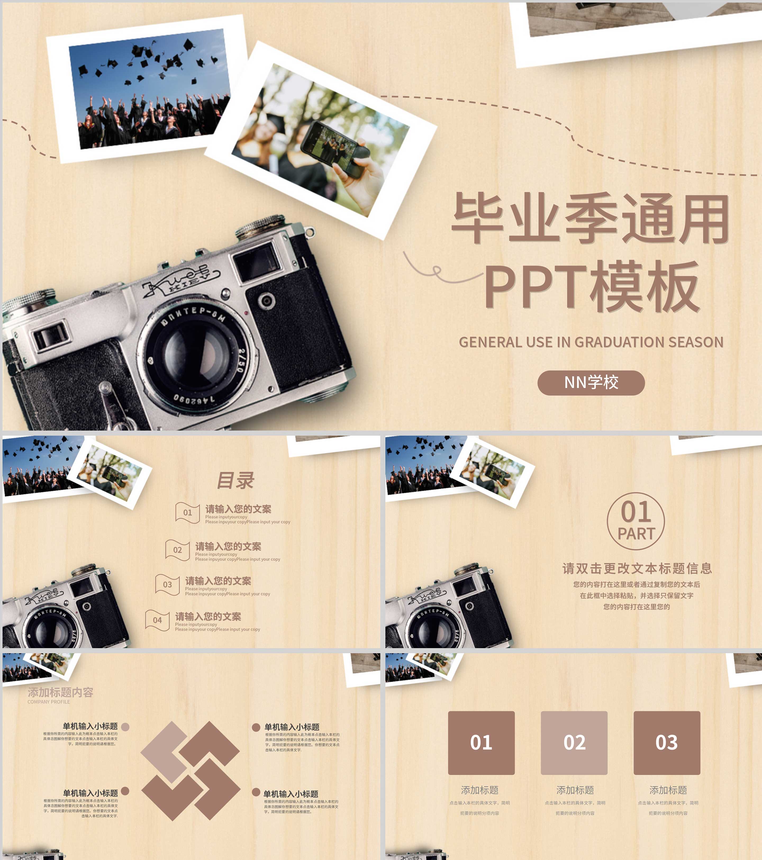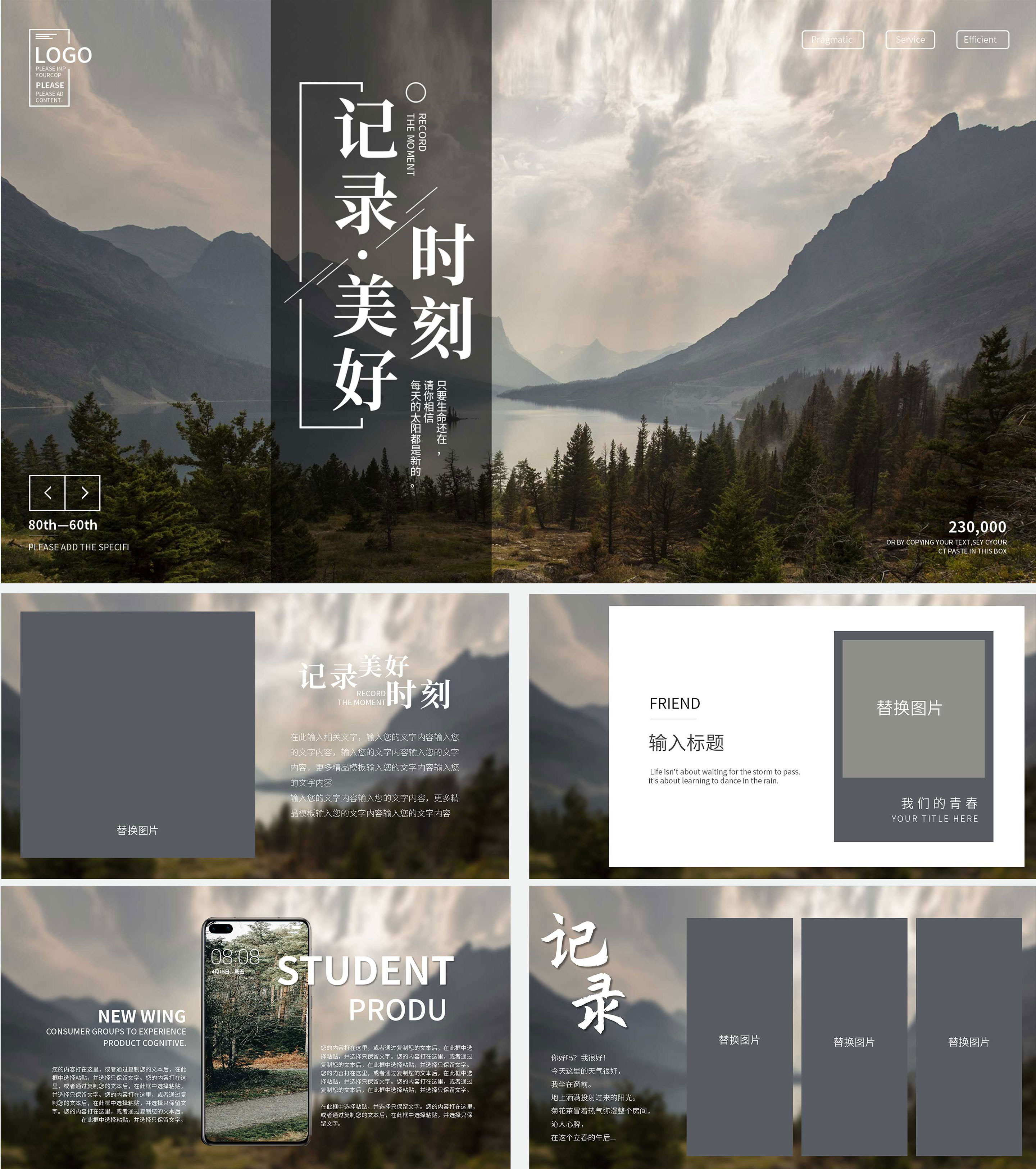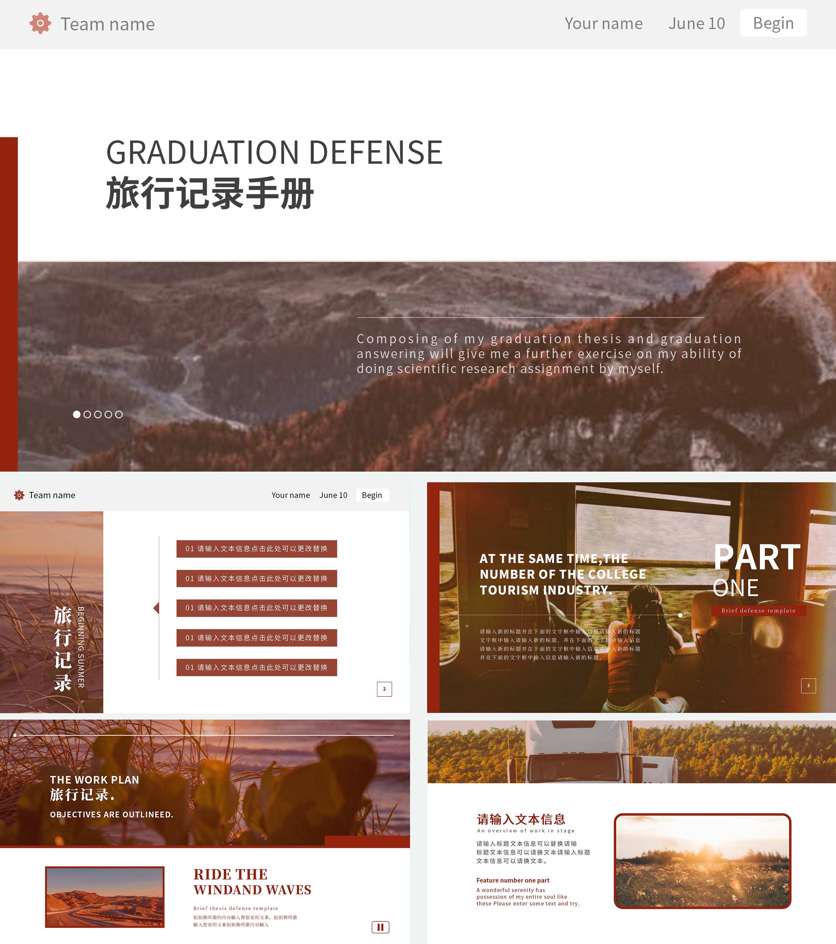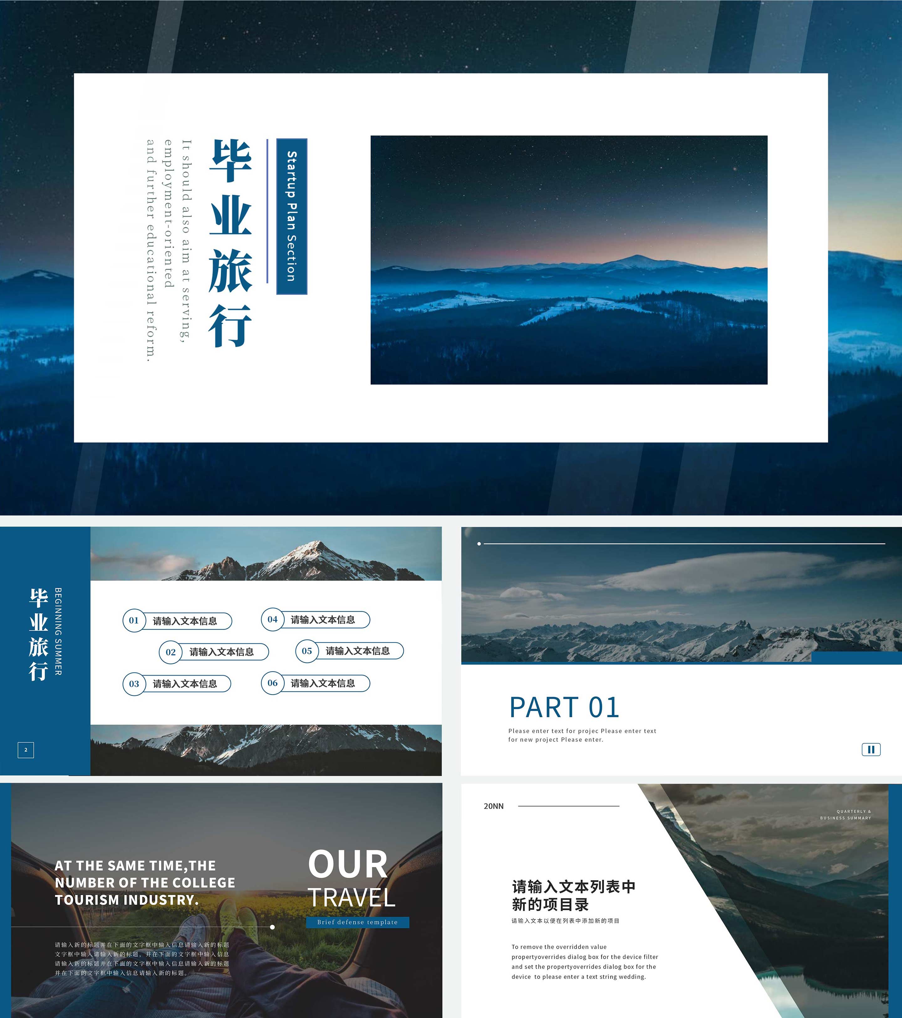 蓝色简约画册风旅行者日记旅行相册PPT模板
